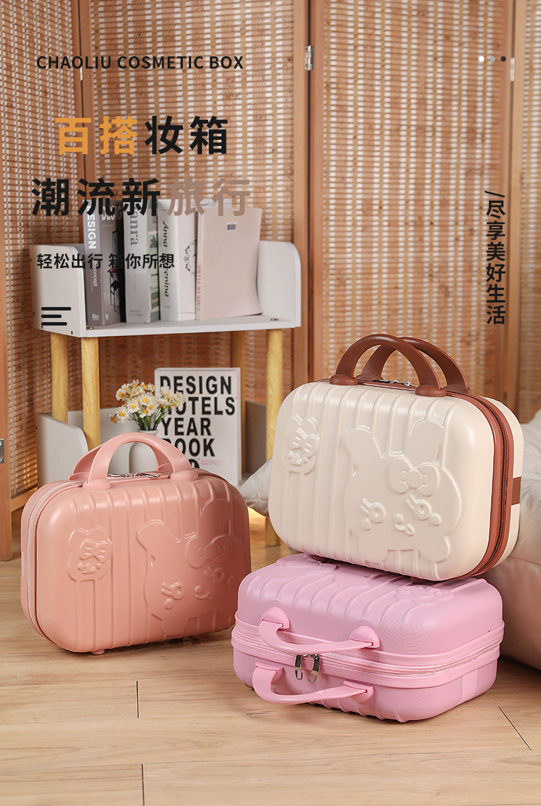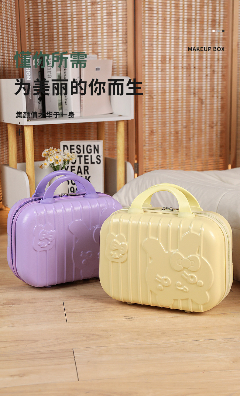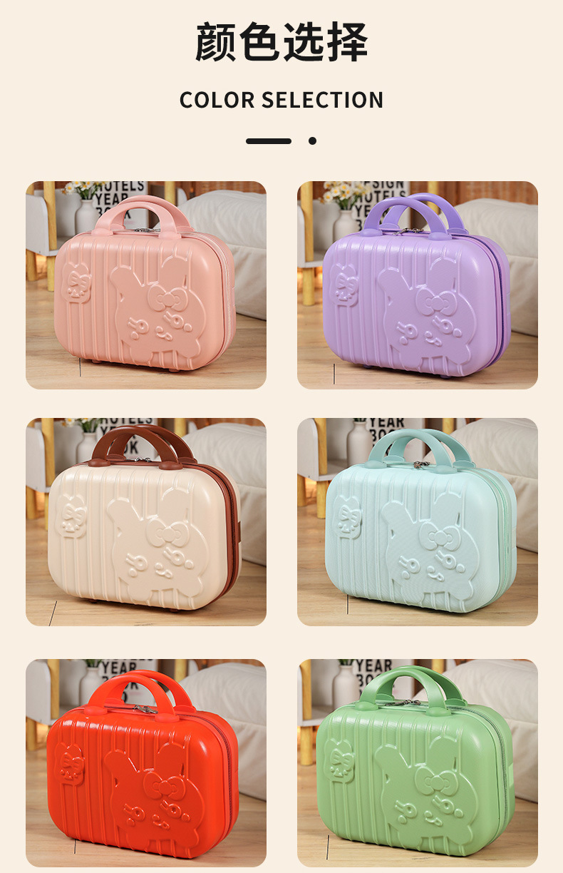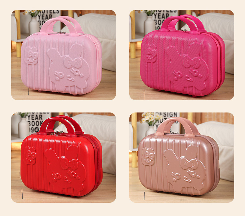Maleta de conejito lindo de dibujos animados 3D 14 pulgadas color caramelo bolsa de cosméticos rojo mano equipaje portátil