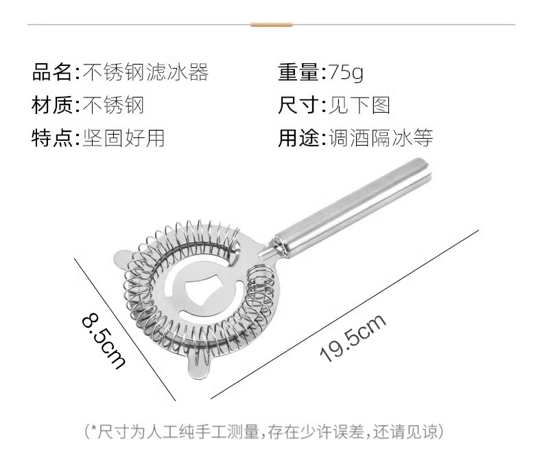 Barman de acero inoxidable, filtro de hielo, cóctel, filtro de hielo, filtro, filtro de fugas de hielo, filtro de barra, barman