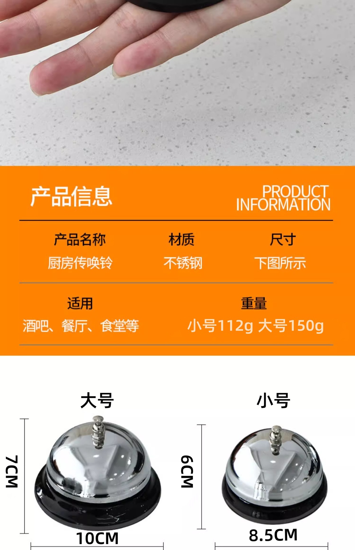 Campana de Chuancai Campana de mesa Campana de Chuancai llamada Campana de una sola campana Cocina de acero inoxidable llamada Campana de comedor Campana de barra de campana