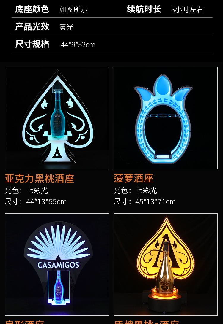 | color | Portavino Ace of Spades de malla de hierro mejorado luz amarilla,Portavino con patrón de diamantes plateados, luz amarilla pequeña,Portavino con patrón de diamante negro, pequeño, colorido,Portavino con patrón de diamantes dorados, pequeño, colorido,Portavino grande con patrón de diamantes negros - luz amarilla,Portavinos grande con diseño de diamantes dorados - colorido,Portavino con patrón de diamantes plateados, grande, colorido,Portavino redondo cristal luz blanca,Portavinos redondo de cristal con luz de colores.,X asiento de vino luz colorida,Portavino cuadros negro luz amarilla,Asiento de vino con patrón de hielo luz amarilla,Asiento de vino de abismo luminoso de borde redondo luz amarilla,Portavino cuadrado plateado cepillado (luz colorida),Portavino cuadrado negro (luz de colores),Portavino cuadrado de oro cepillado (luz colorida),Asiento de vino en cascada redondo azul hielo claro,Portavino hueco negro luz amarilla,Asiento de vino ondulado ondulado luz amarilla,Asiento de vino carámbano luz amarilla,Portavino de espadas de ás de acrílico mejorado luz amarilla,Asiento para vino Round Abyss estilo C luz amarilla,Portavino individual Champagne King luz amarilla,Asiento para vino Ring Abyss mejorado con luz sinfónica,Asiento de vino Abyss Ace of Spades mejorado, luz amarilla,Portavino Frozen Ace of Spades mejorado, luz azul hielo,Portavinos inclinado de tres piezas luz amarilla,Portavino de diamantes con luz colorida.,Soporte para vino Scallop Abyss Laser (luz amarilla + cuatro cabezas verdes gruesas),12+2 asientos para vino-Ice Blue Light,Botella individual de champán rey vino titular-luz verde,Nuevo asiento para vino Champagne King-luz verde,Asiento de vino Jägermeister luz colorida,Asiento de vino de abismo multicapa luz amarilla,Luz de color caqui con asiento de vino láser en forma de panal,Luz de color amarillo jengibre-asiento de vino láser hexagonal,Luz colorida del asiento del vino del arco,Asiento de vino de ala roja con luces de colores.,Asiento de vino hexagonal luz blanca,Asiento de vino Orange-XO con luz de colores,Nuevo asiento para vino Phoenix luz blanca,Soporte para vino Bevel Champagne King Luz colorida,Asiento de vino redondo Abyss Luz colorida,Portavino redondo carámbano luz amarilla,Portavino de una sola bala de cañón, luz azul hielo,Escalera As de espadas Asiento para vino Luz amarilla,Asiento de vino dorado luz amarilla |