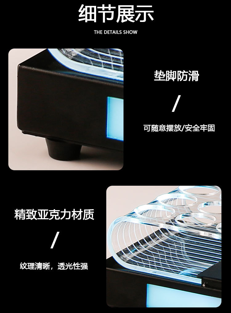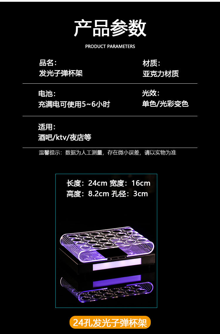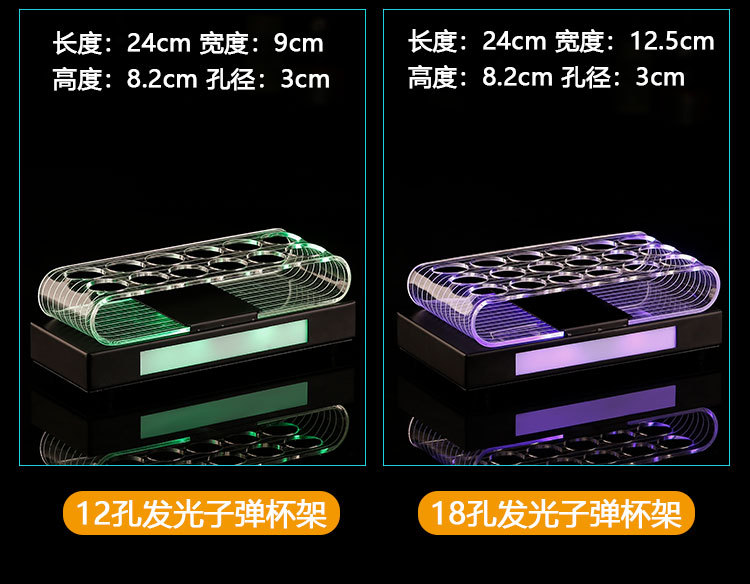 | Color | El tamaño del agujero colorido del estante de la taza luminosa de 12 agujeros es de 3 cm, el tamaño del agujero colorido del estante de la taza luminosa de 18 agujeros es de 3 cm, y el tamaño del agujero colorido del estante de la taza luminosa de 24 agujeros es de 3 cm. |