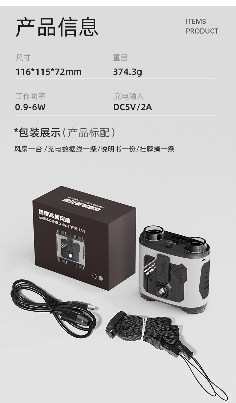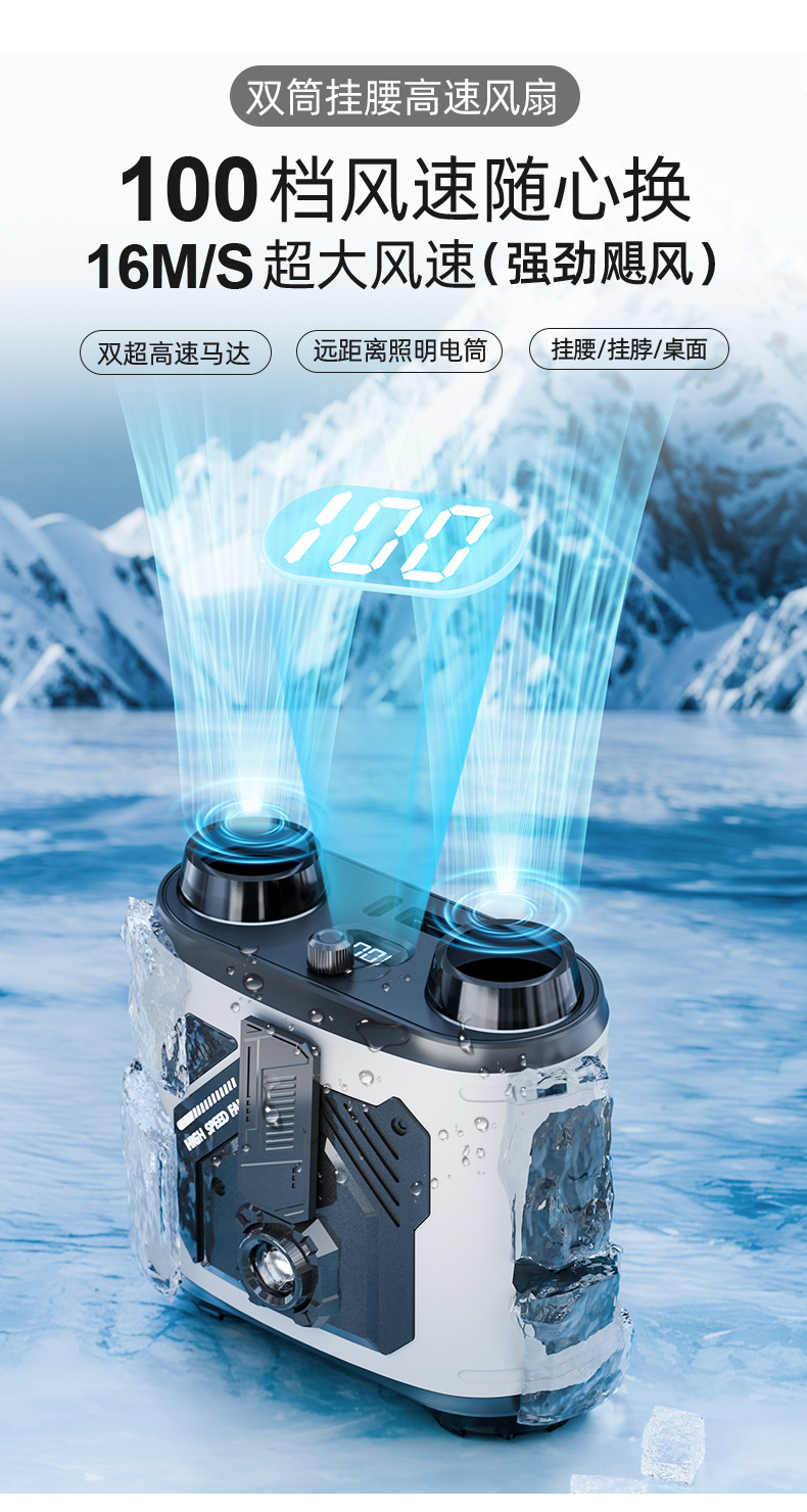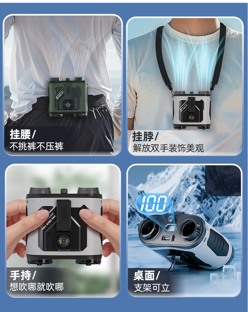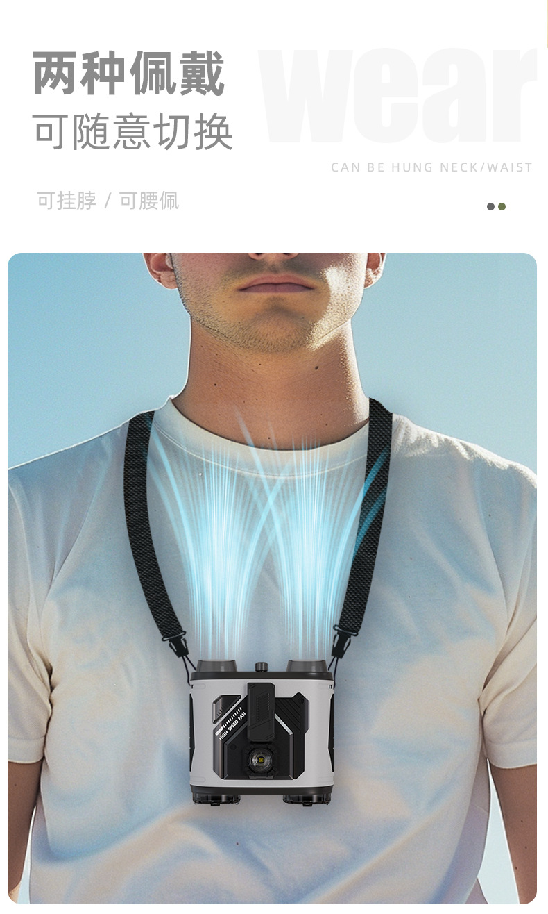 25 nuevo ventilador de cintura colgante, batería de larga duración, ventilador de campamento al aire libre, mini ventilador de cintura colgante portátil
