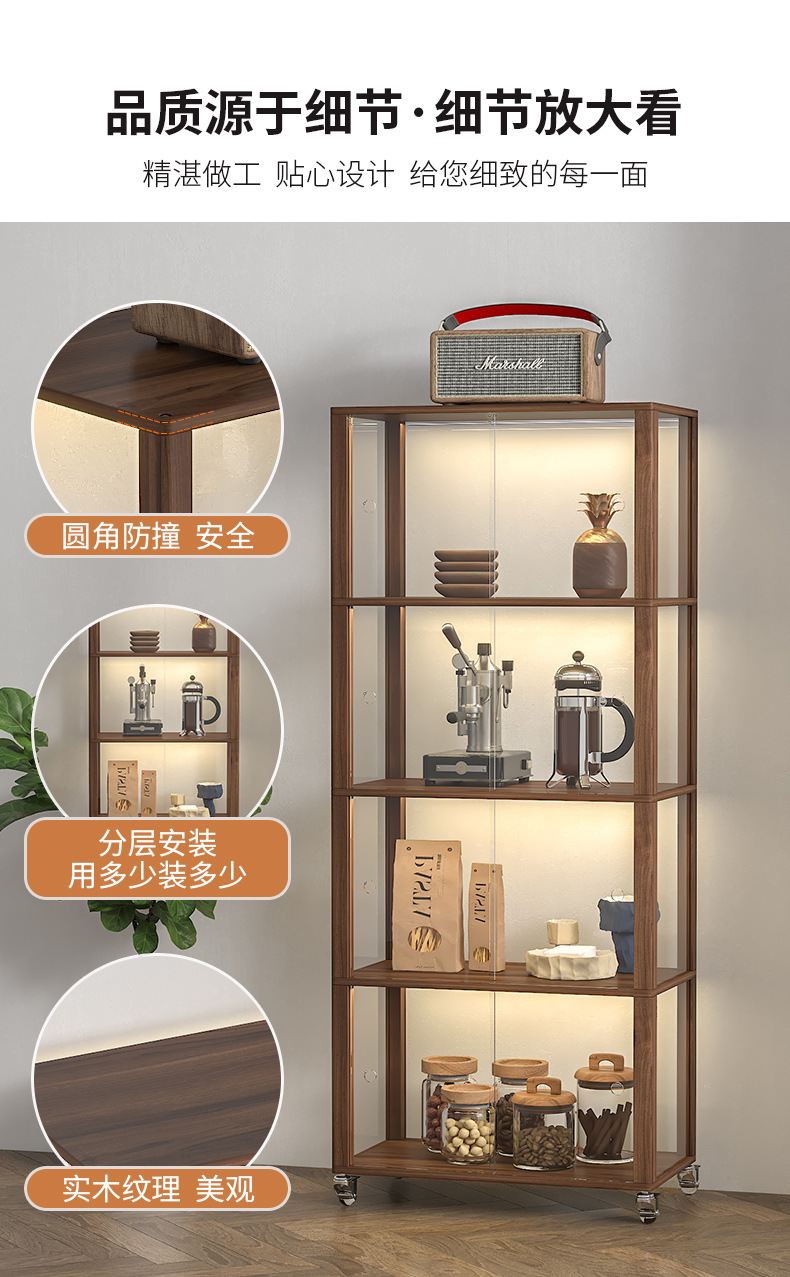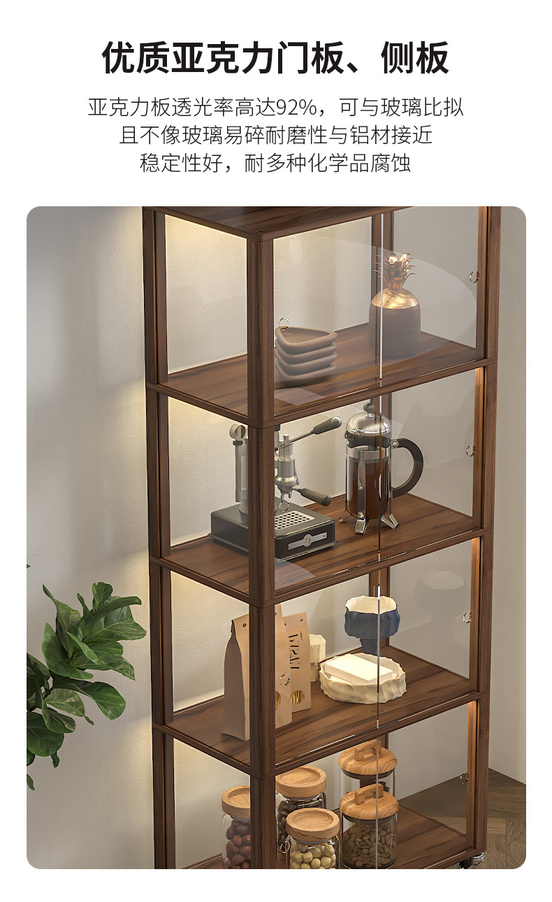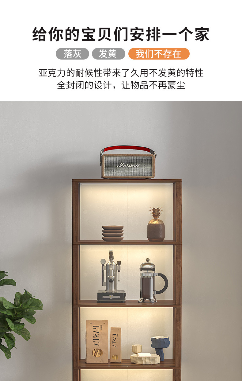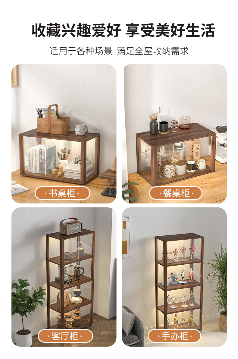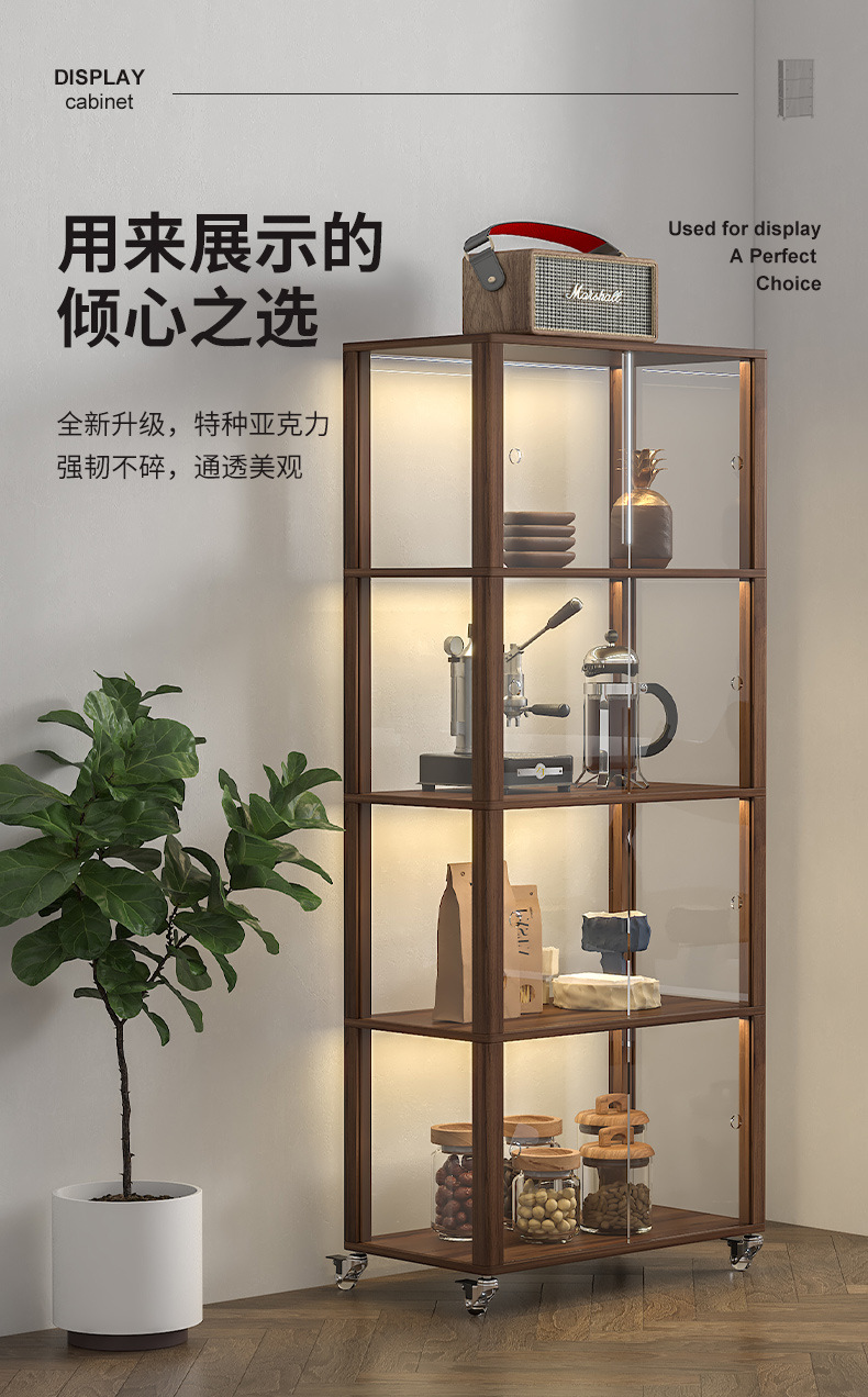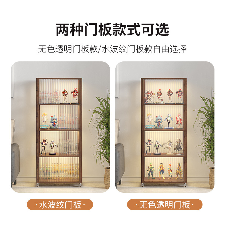 Original estante de almacenamiento de madera maciza hogar moderno a prueba de polvo móvil piso soporte estudio acrílico multi-capa de almacenamiento rack con puerta