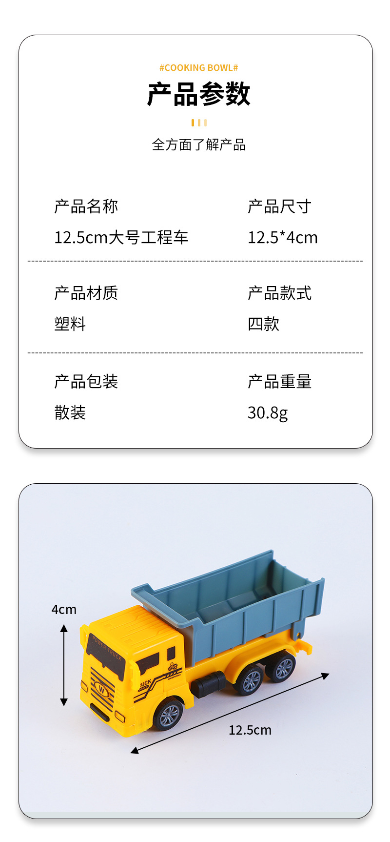 12.5cm gran camión de ingeniería de retorno 4 niños excavadora modelo de locomotora juguetes de regalo