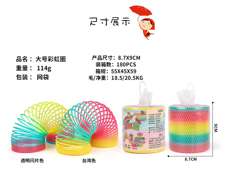 9cm bolsa de malla grande arco iris anillo Niños Primavera anillo mágico puesto Venta caliente juguetes al por mayor TikTok modelo de enseñanza