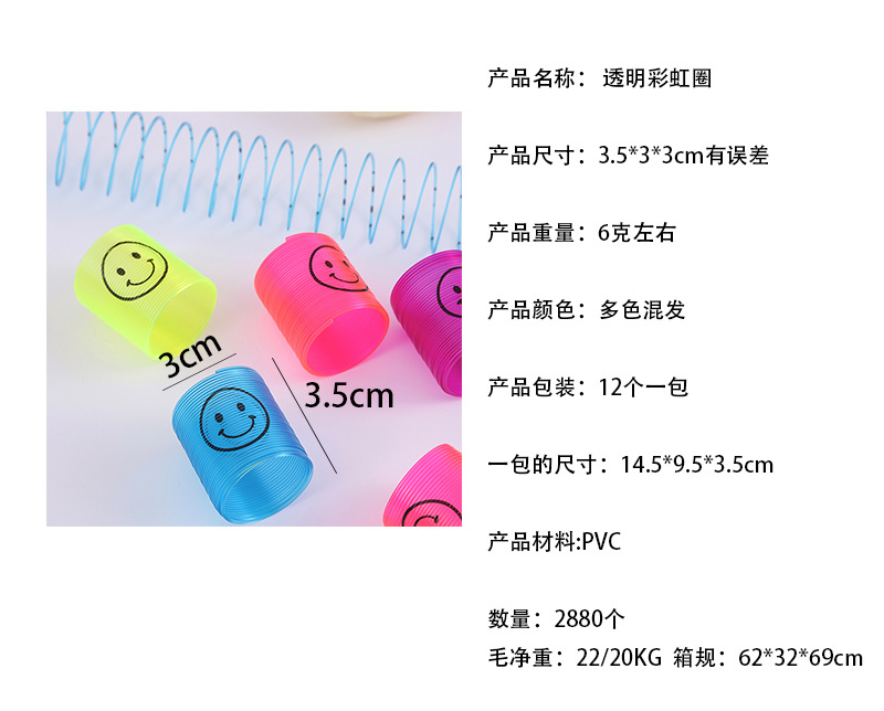 Nuevo 3.2 * 3.5cm sonriente transparente pequeño arco iris bobina de plástico para niños juguetes plegables
