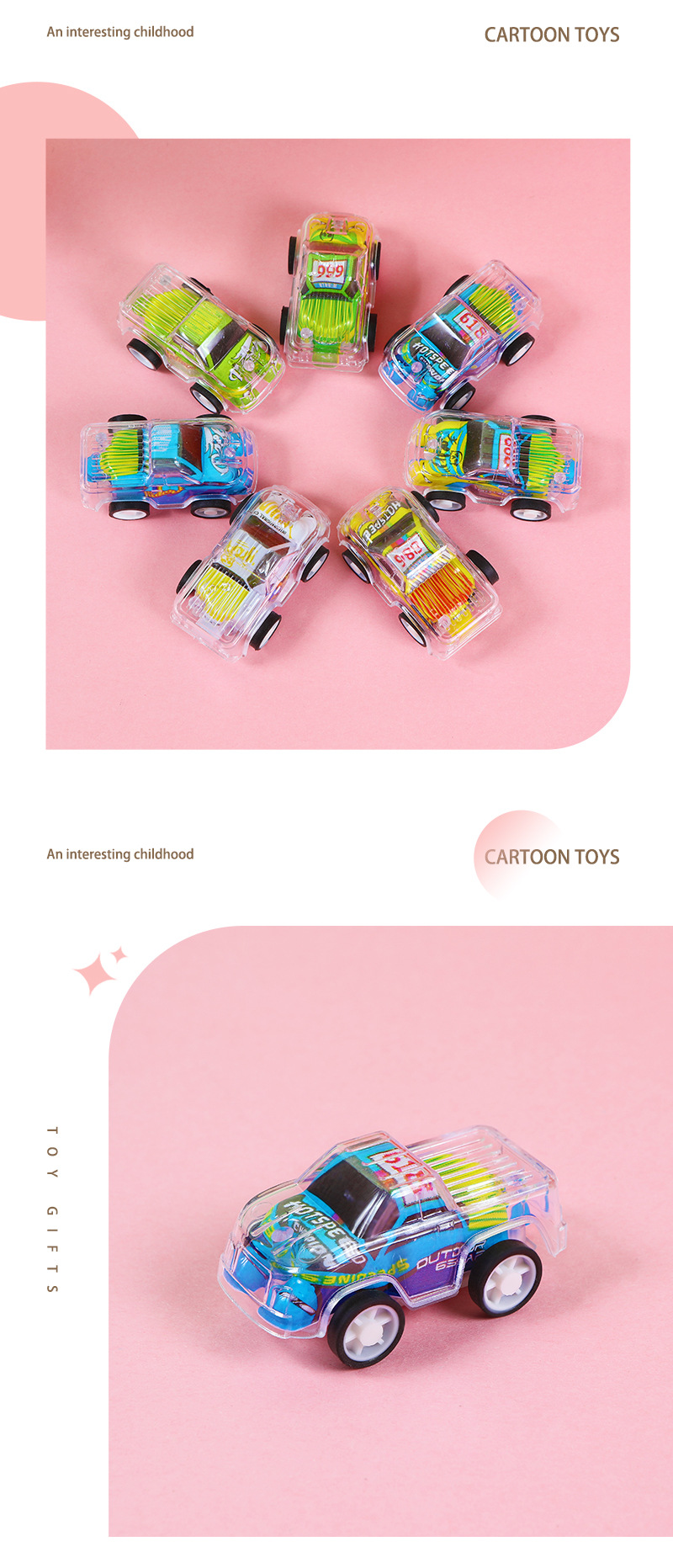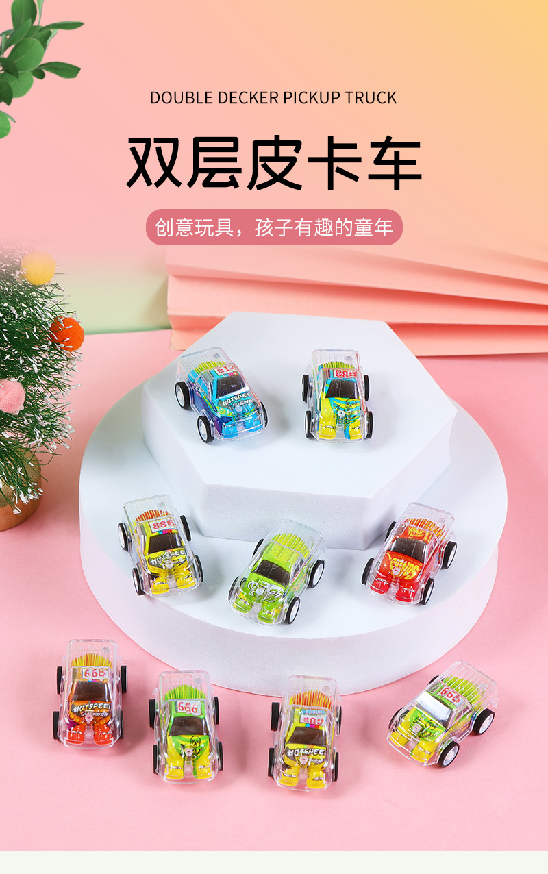 Juguetes de retroceso de doble capa de dibujos animados Juguetes de retroceso de inercia de jardín de infantes Juguetes de niños cruzados