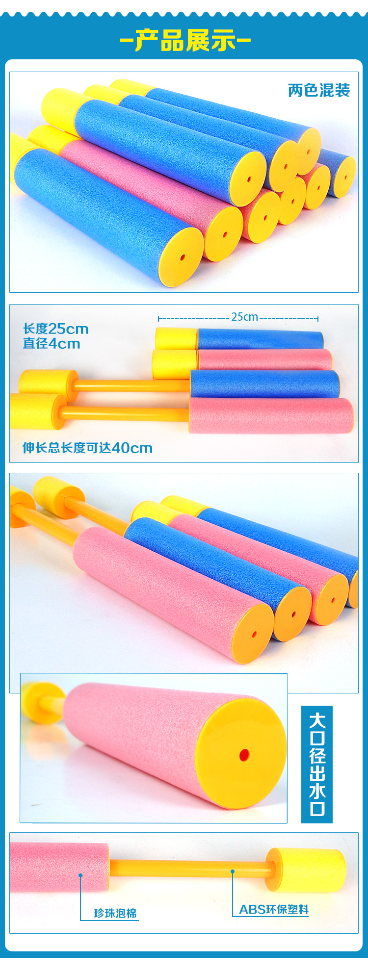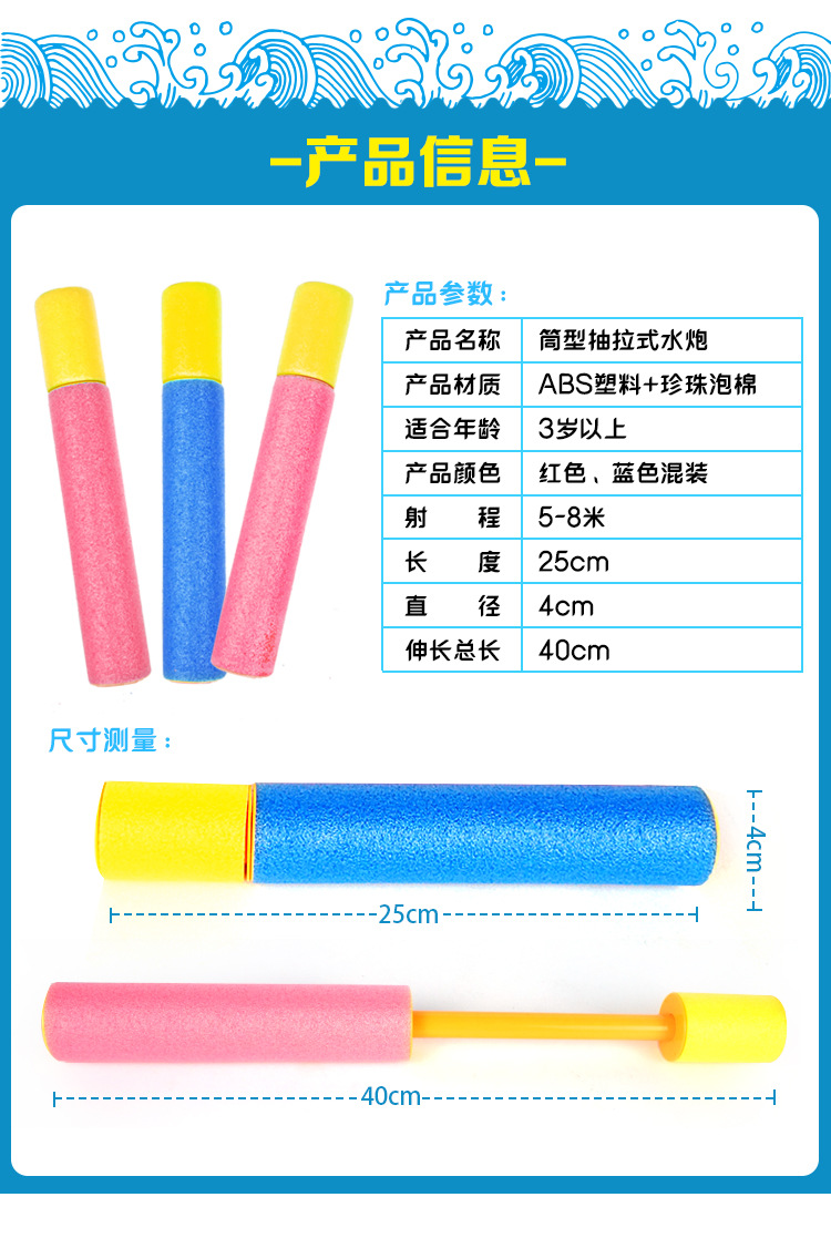 Perla algodón niños Eva barril pull-out pistola de agua juguete deriva agua jugando largo alcance 4*25cm