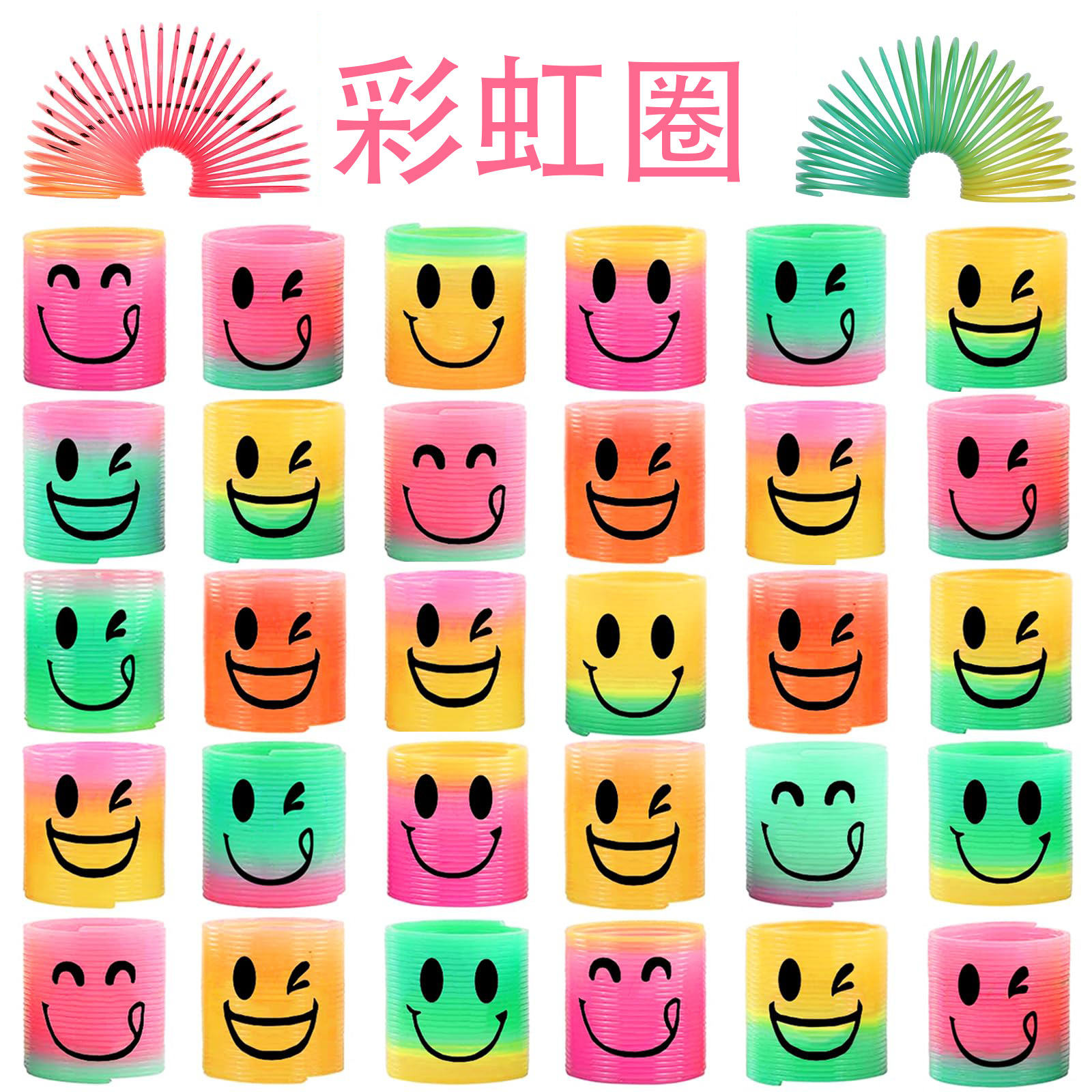 Anillo de primavera colorido para niños Mini cara sonriente anillo de arco iris anillo colorido anillo elástico puesto premio Juguete suministro transfronterizo