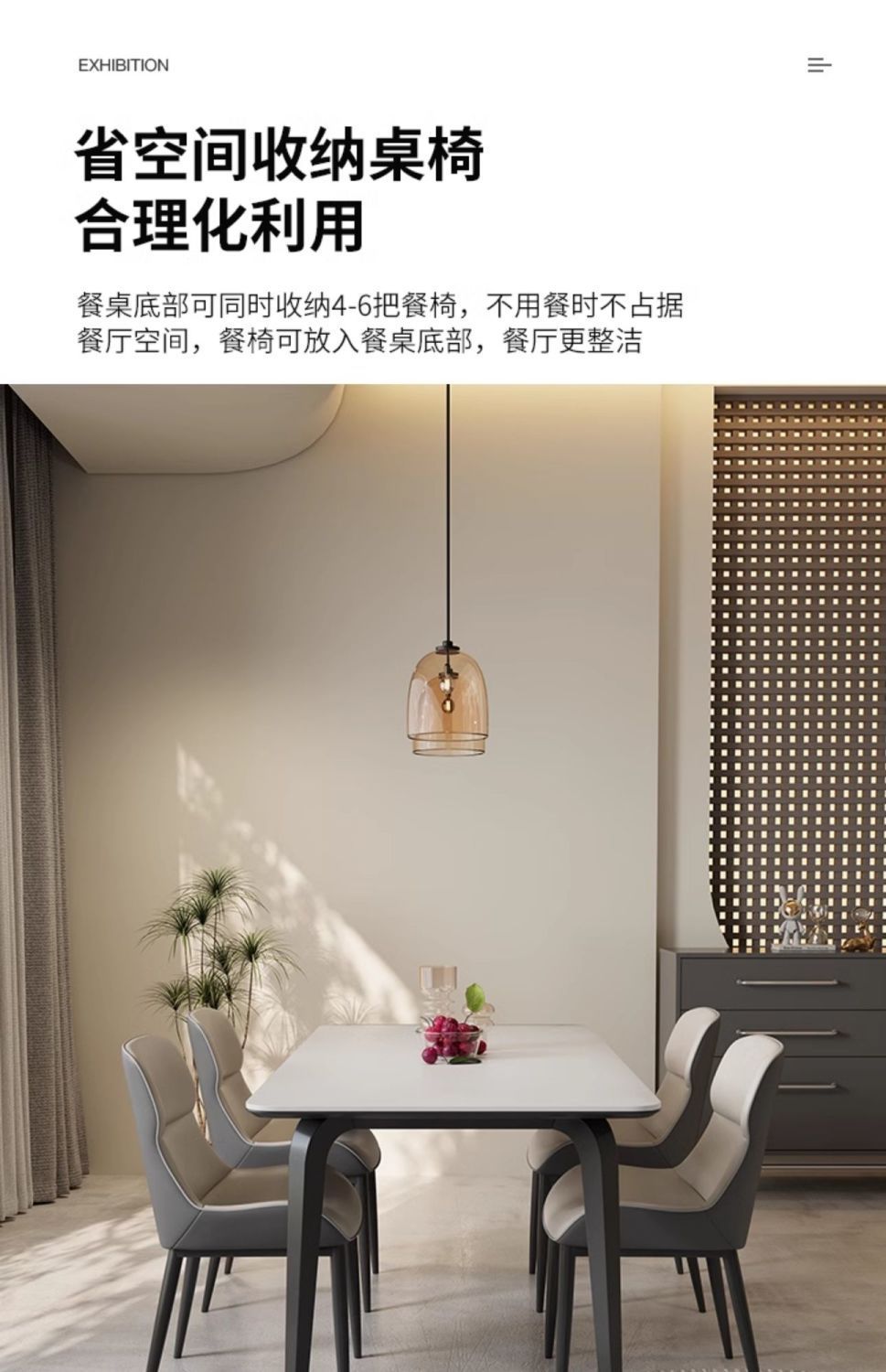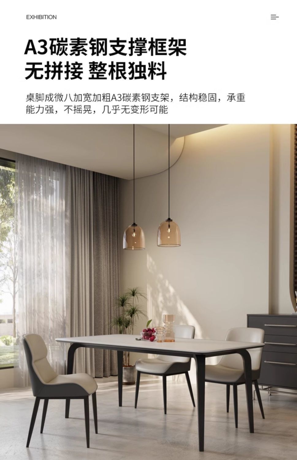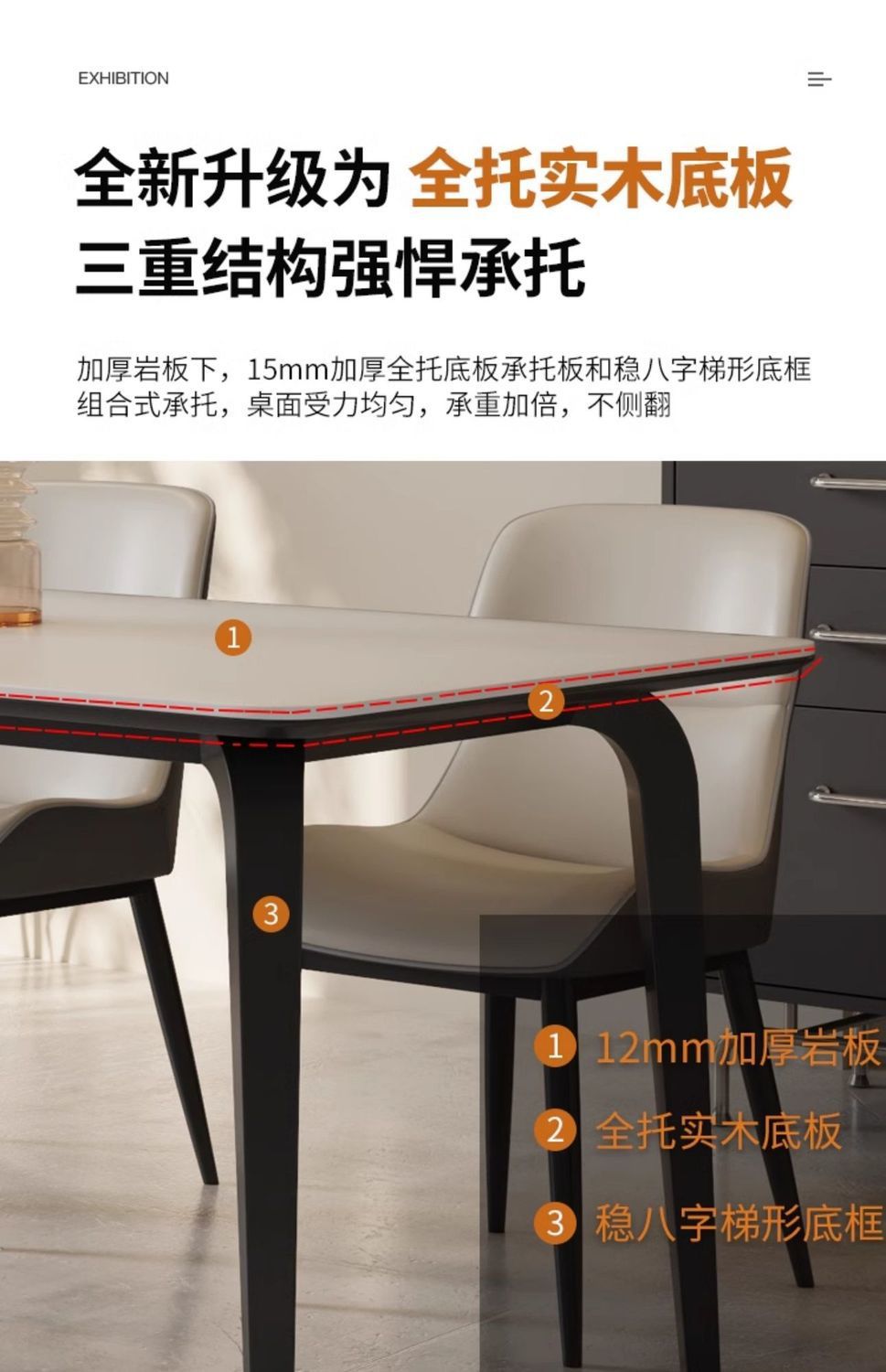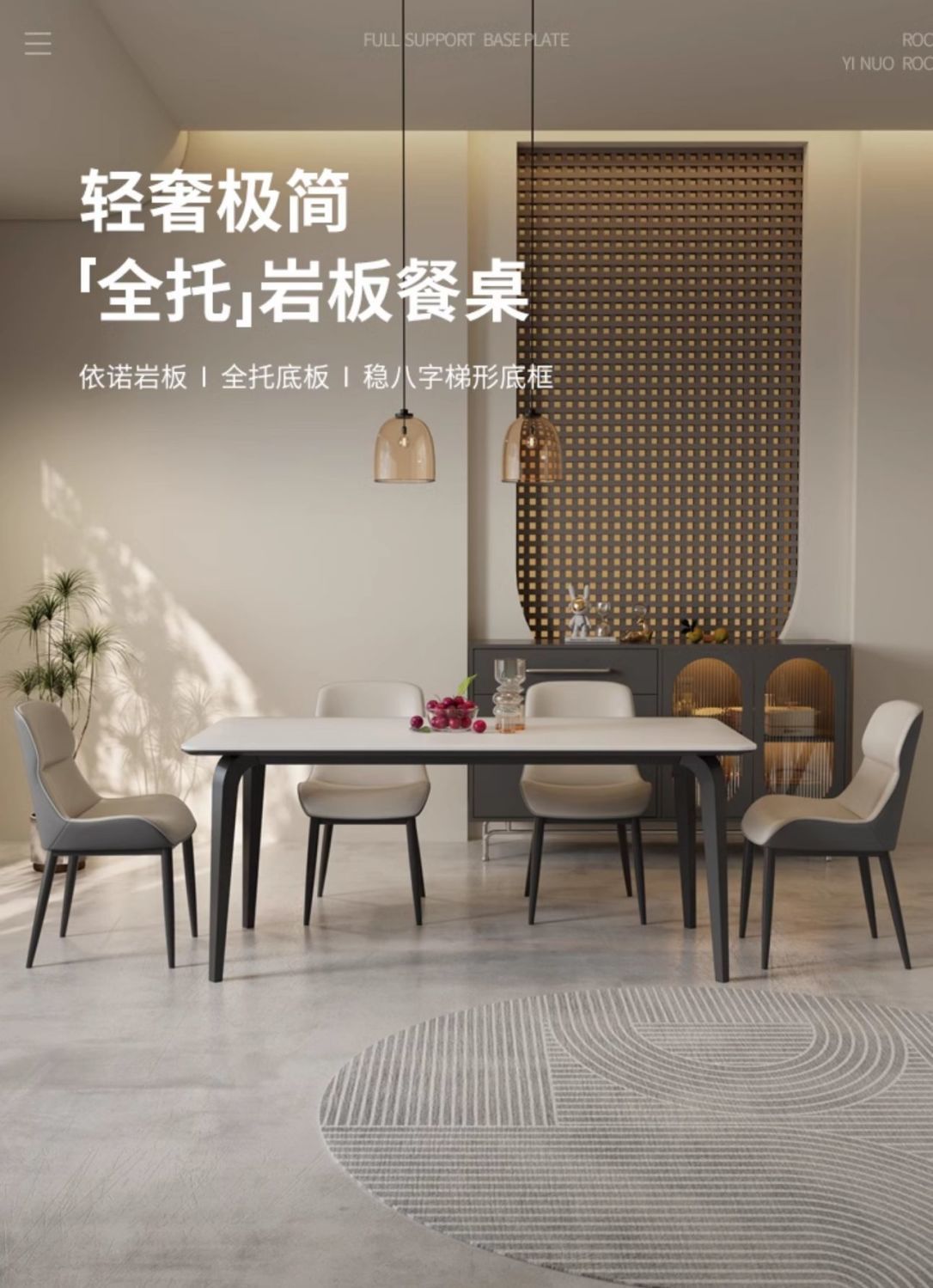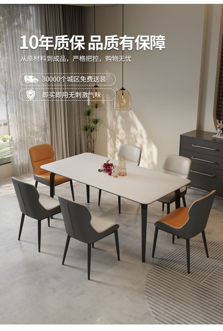 Tabla de comedor de placa de roca Einoc y silla combinada con tabla de comedor rectangular moderna y simple.