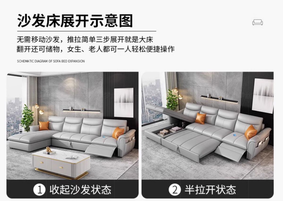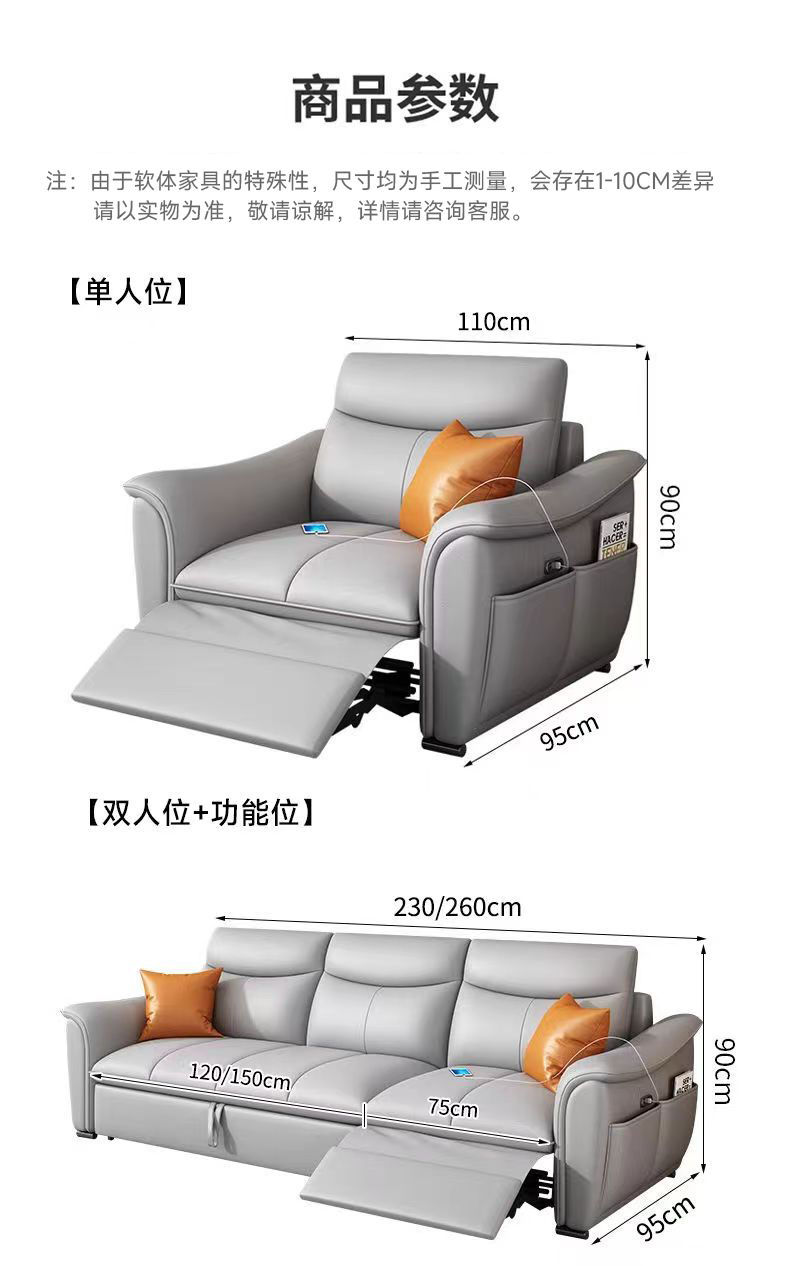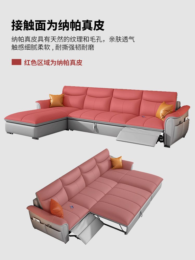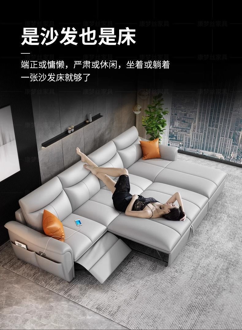 Sofá cama de cuero de primera clase italiano 2025 nuevo sofá eléctrico multifuncional de la sala de estar cama variable