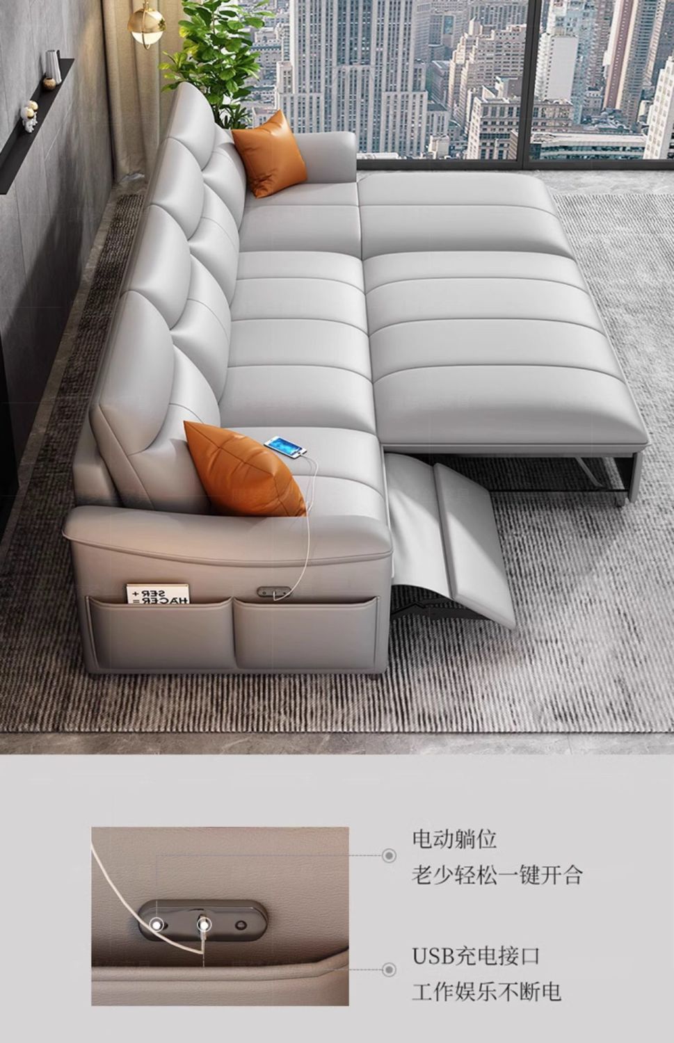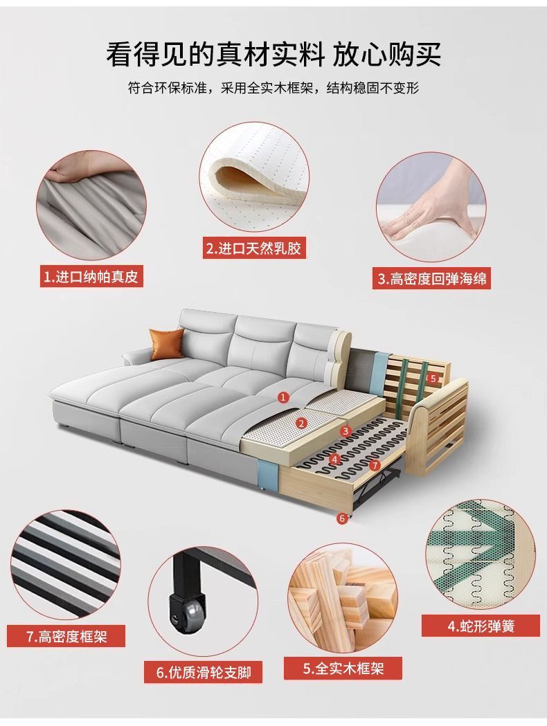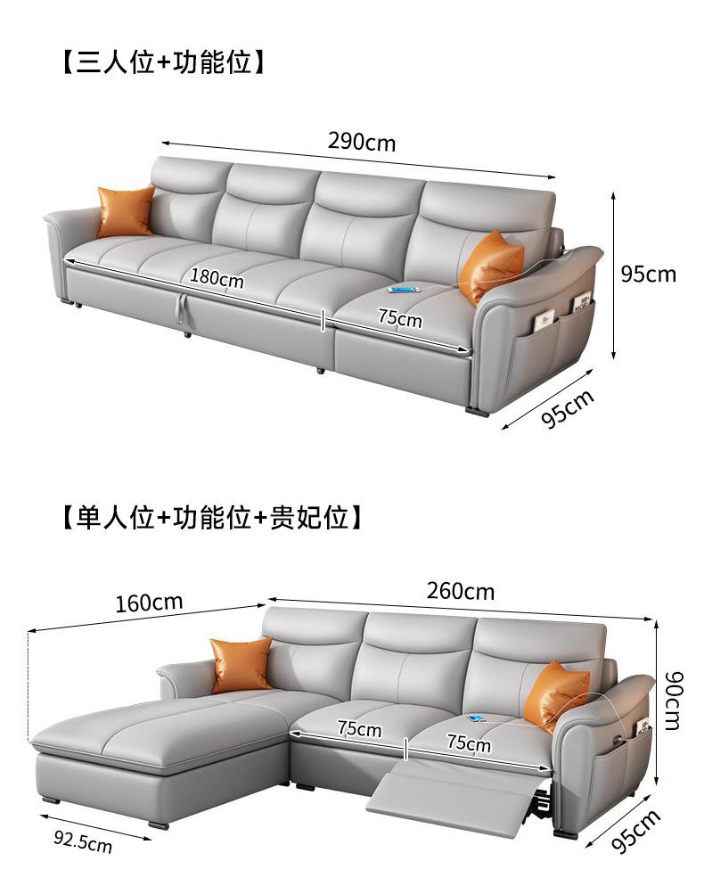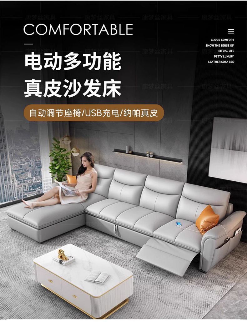 Sofá cama de cuero de primera clase italiano 2025 nuevo sofá eléctrico multifuncional de la sala de estar cama variable