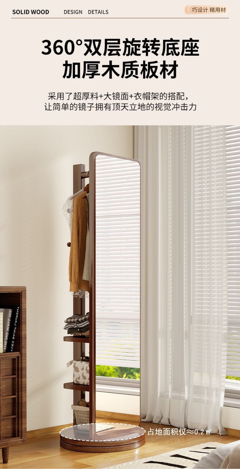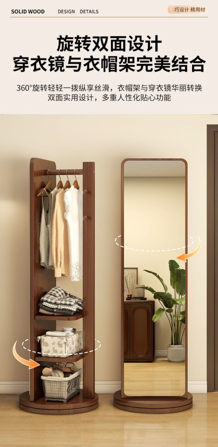Espejo de armario, espejo de vestir, espejo giratorio, percha de ropa, percha de sombrero móvil de dormitorio, nuevo espejo de piso