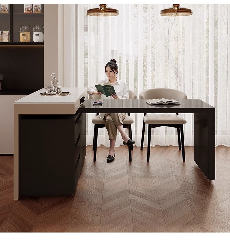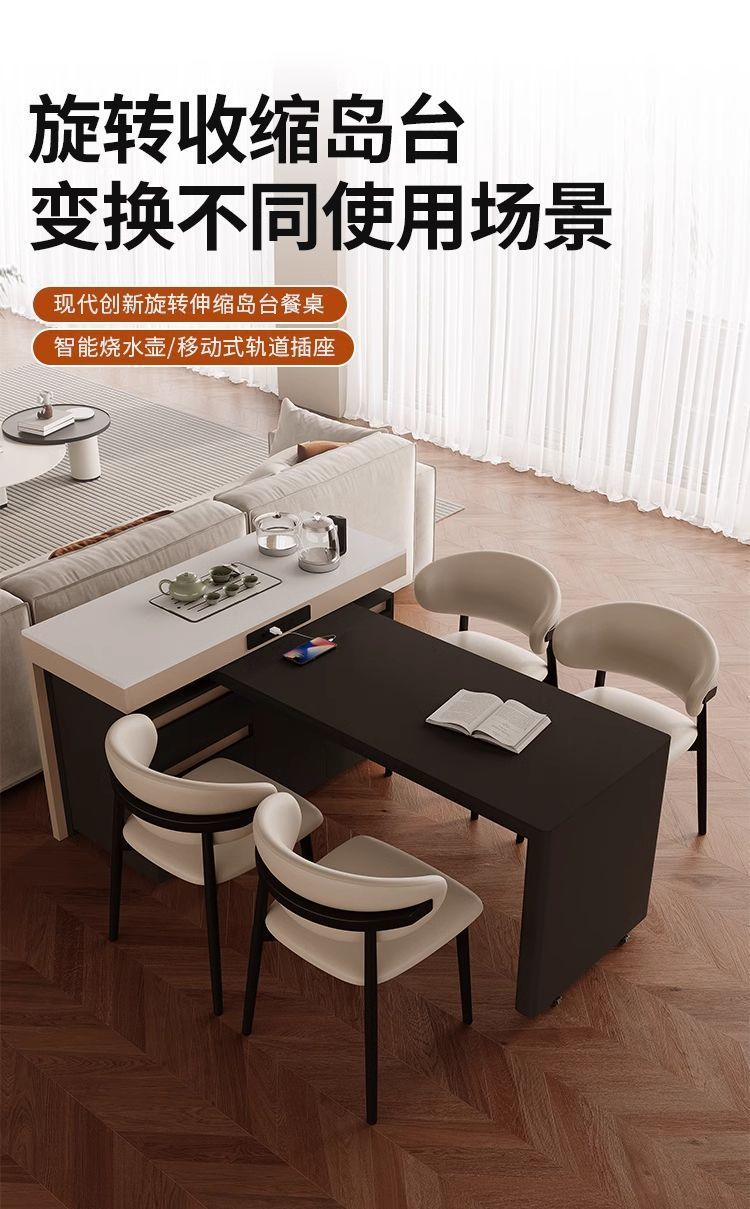 Mesa de comedor de tabla de roca doméstica de alta calidad integrada telescópico multifuncional de tabla de roca pequeña casa tipo madera sólida giratoria