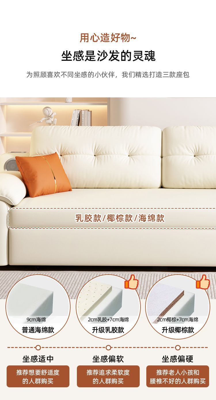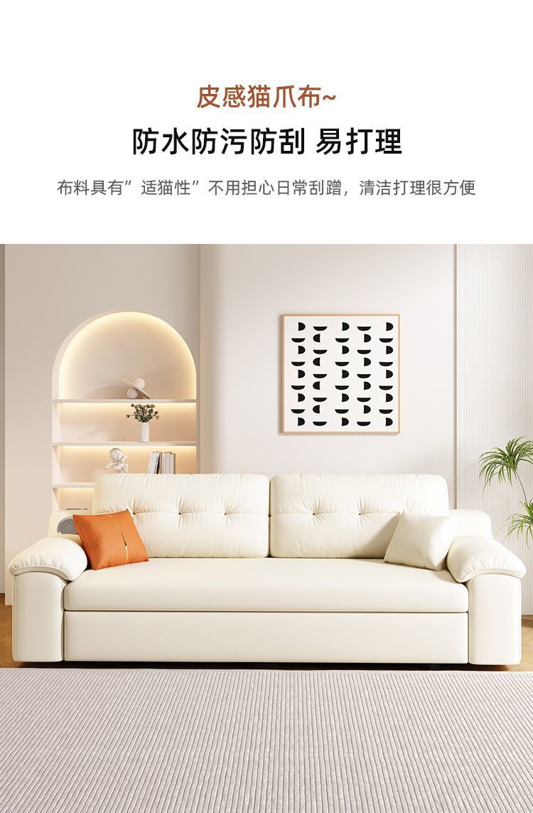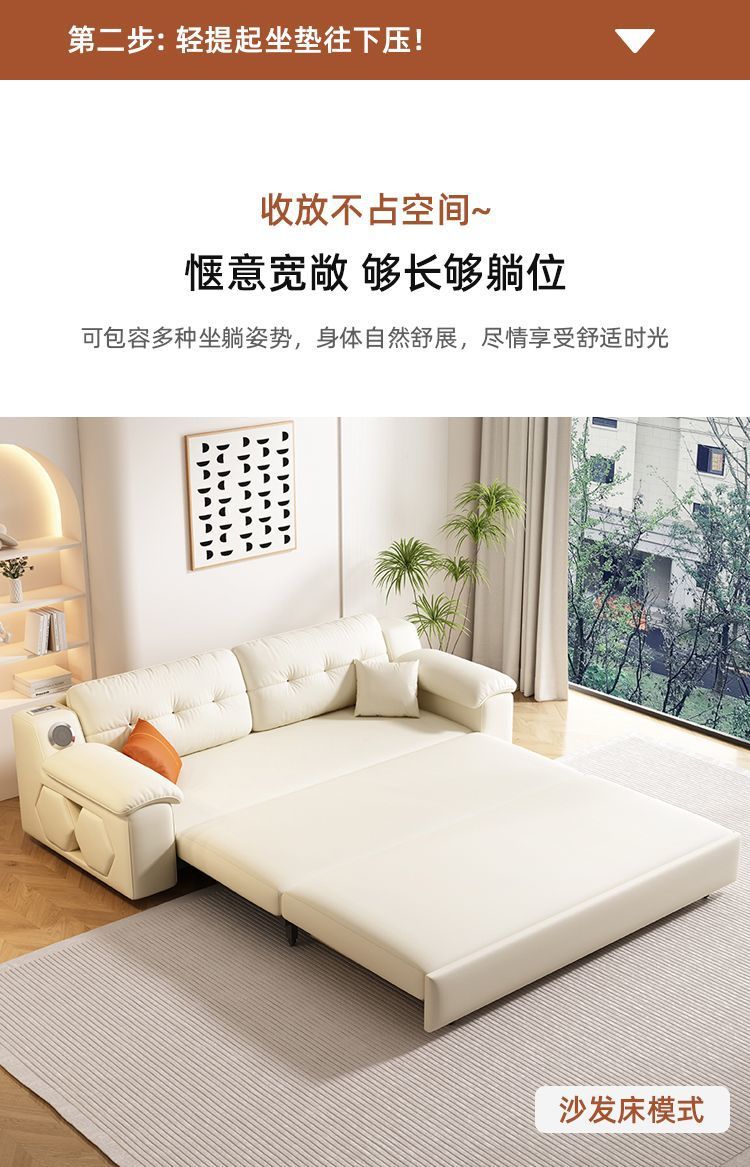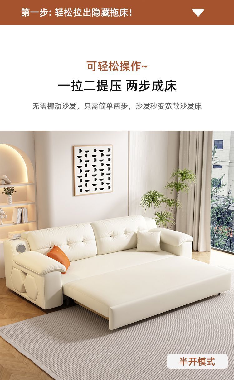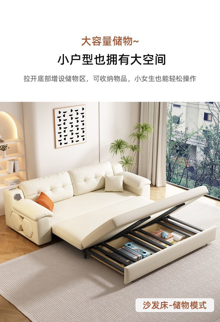 Sofá cama plegable multifuncional, plegable, todo en uno, retráctil de doble uso, sala de estar de apartamento pequeño, cuero de agarre cremoso, altavoz push-tirar