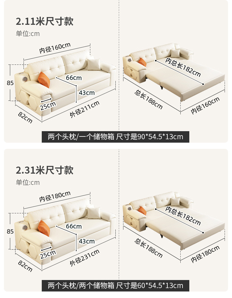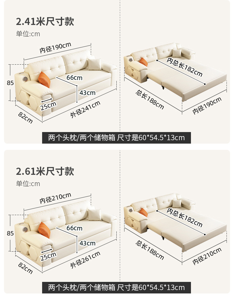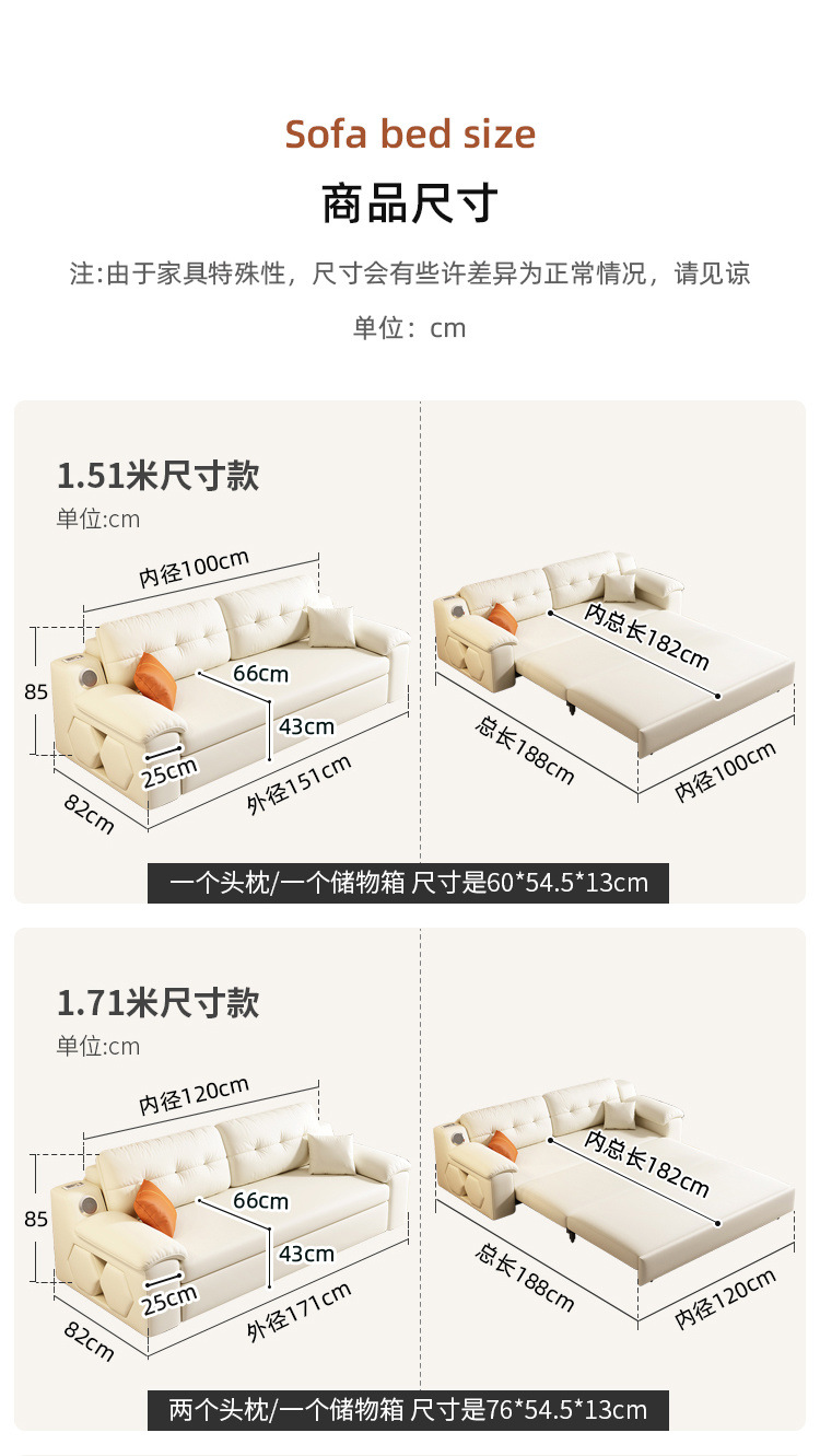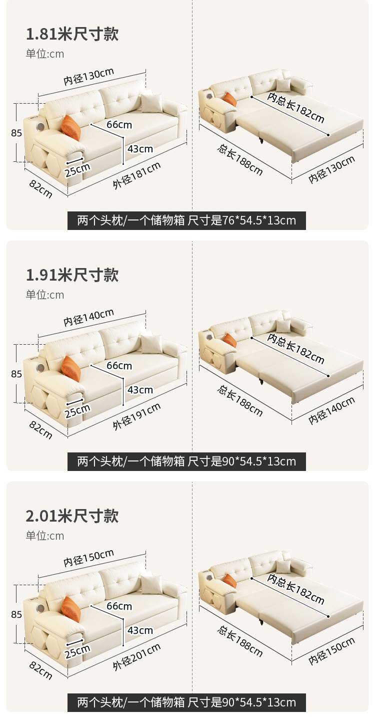 Sofá cama plegable multifuncional, plegable, todo en uno, retráctil de doble uso, sala de estar de apartamento pequeño, cuero de agarre cremoso, altavoz push-tirar