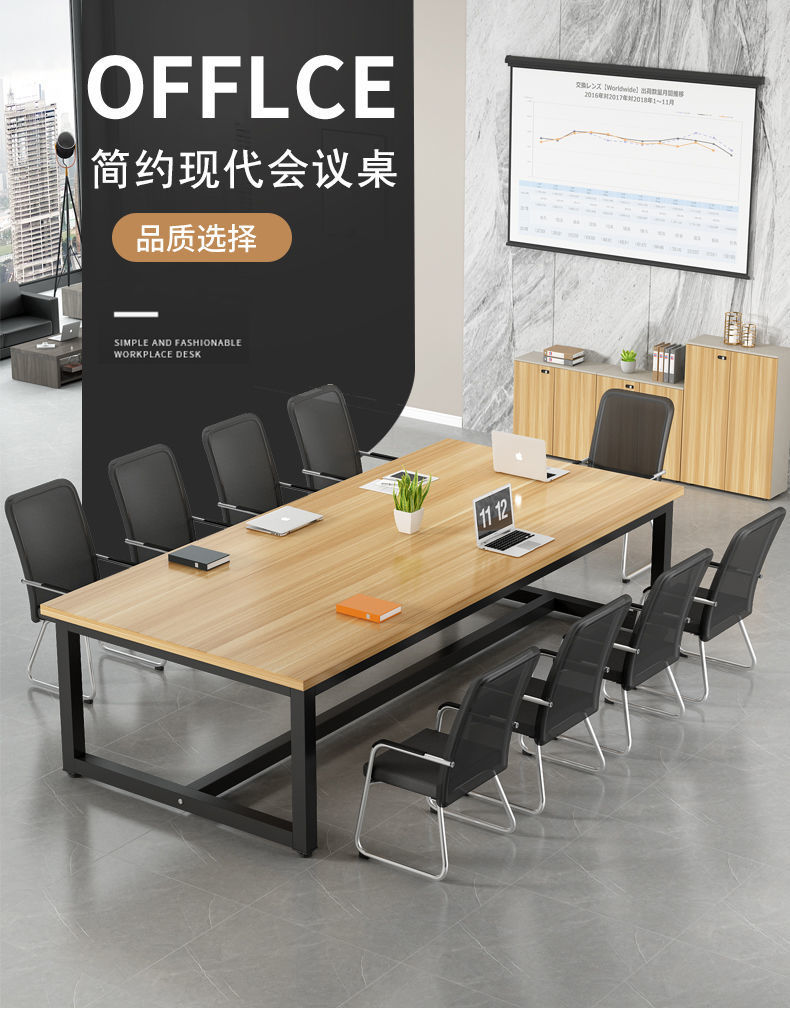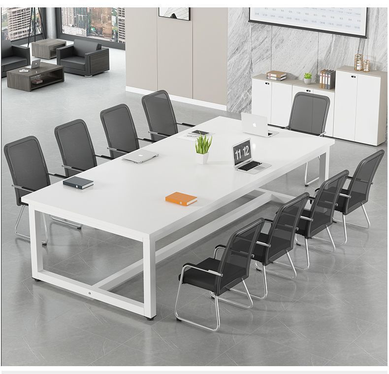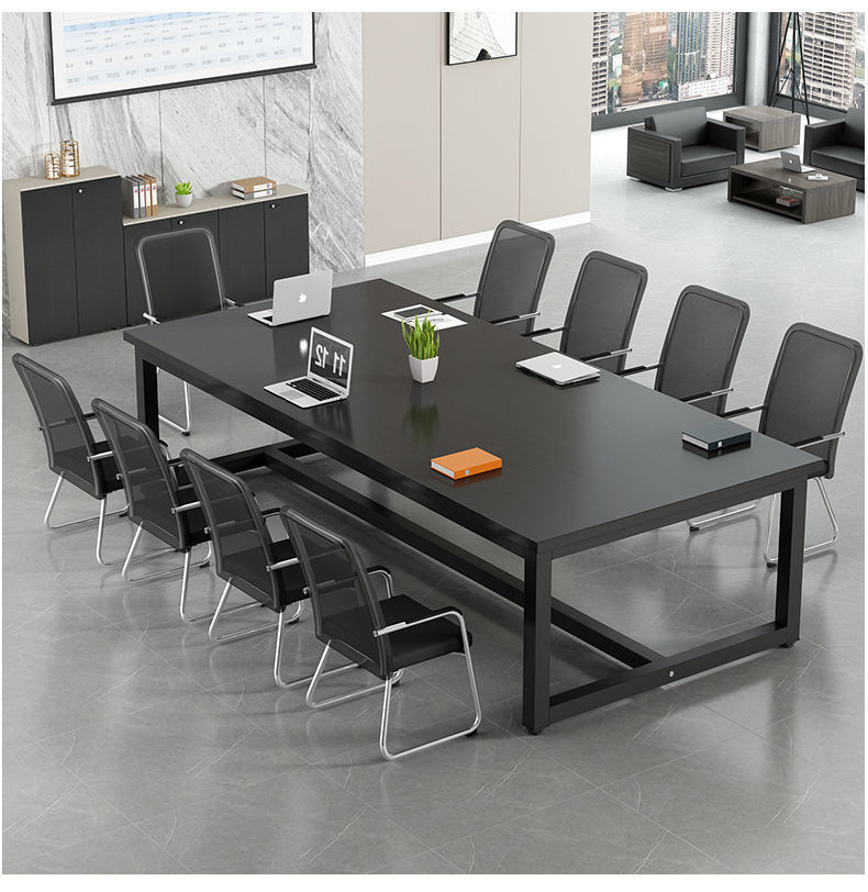 Mesa de conferencias Mesa larga Mesa de trabajo de capacitación para personal Mesa de negociación simple y moderna Mesa y silla Combinación Marco de acero Escritorio para computadora Escritorio
