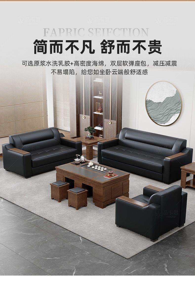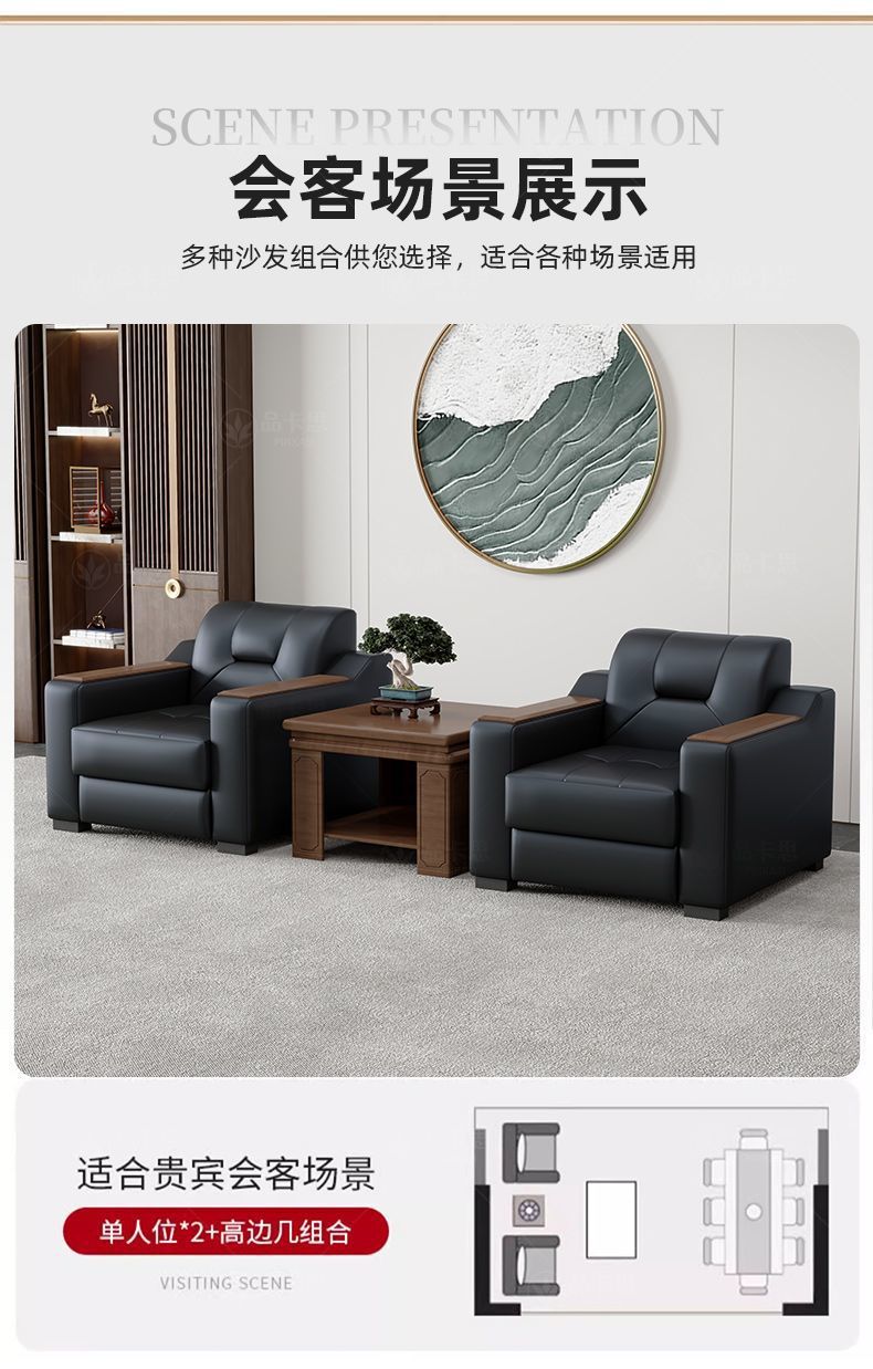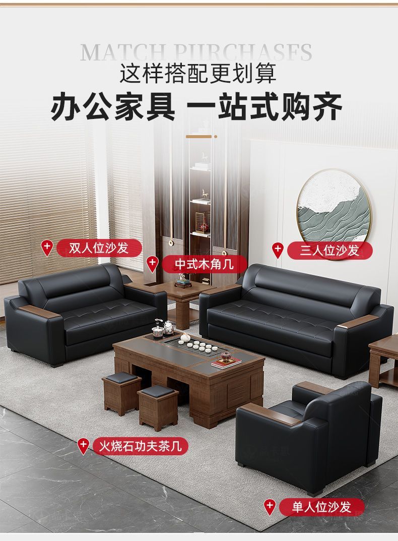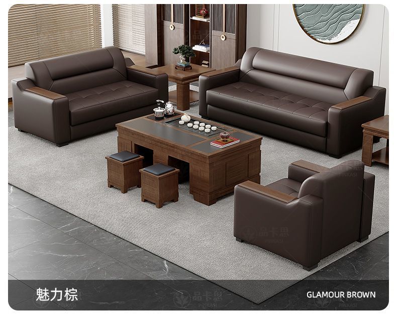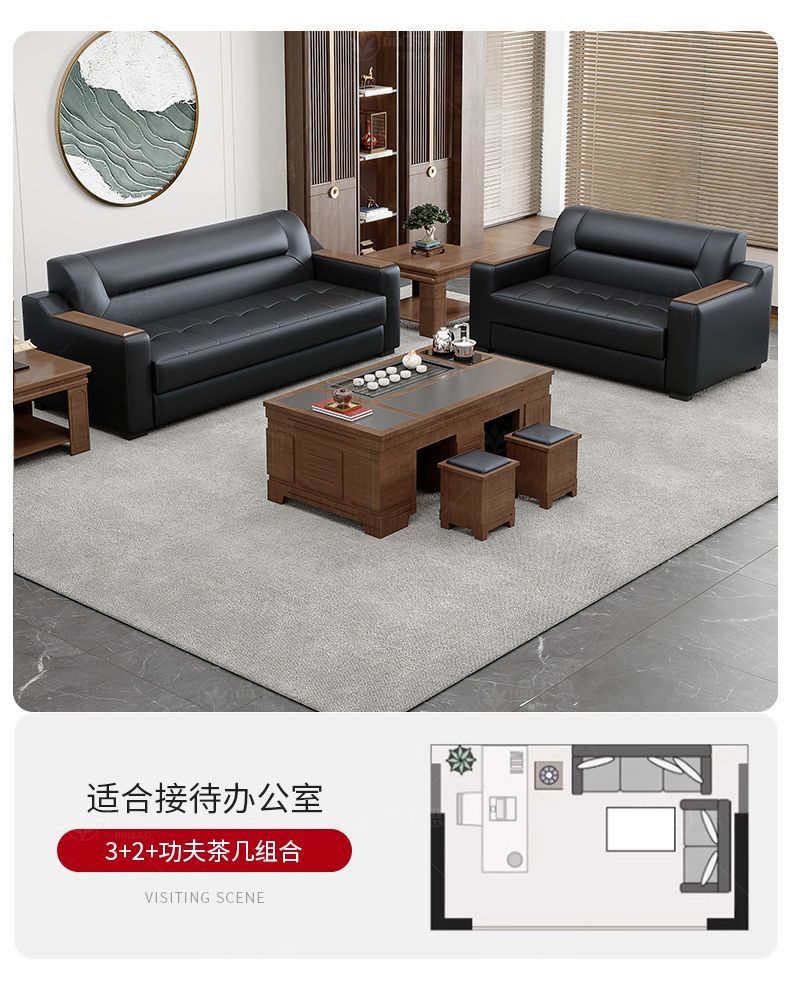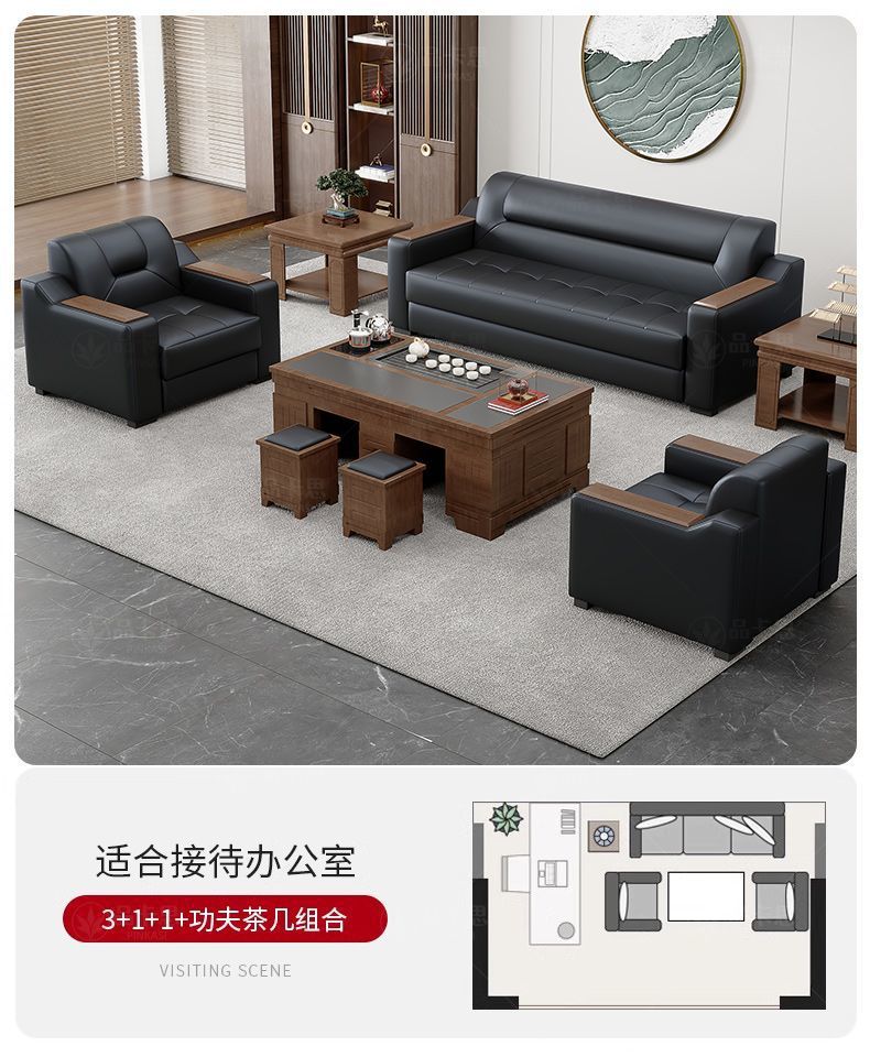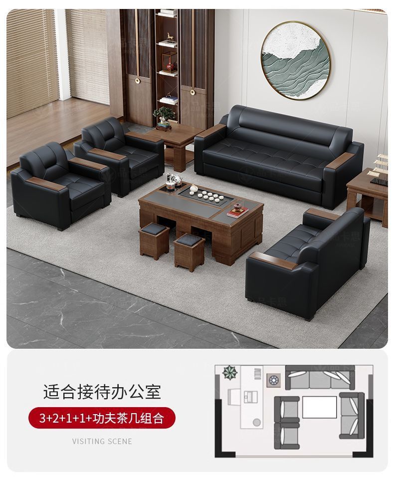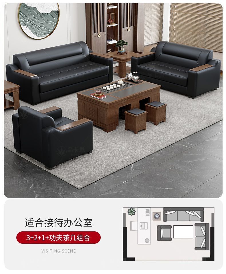 Sofá de oficina de cuero simple moderno de negocios recepción casual de tres mesas de té conjunto de cuero