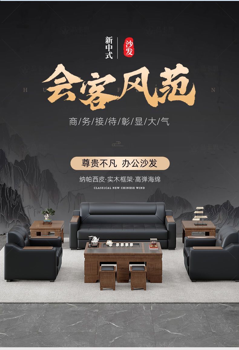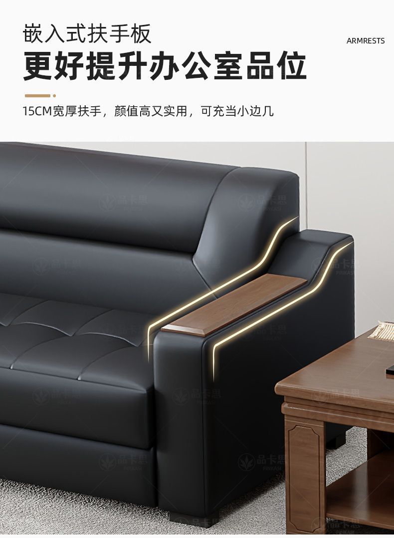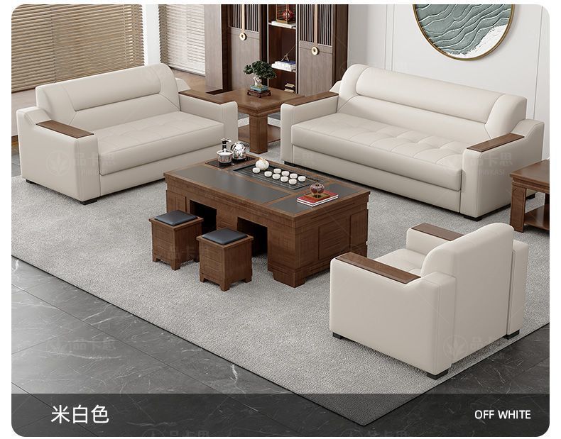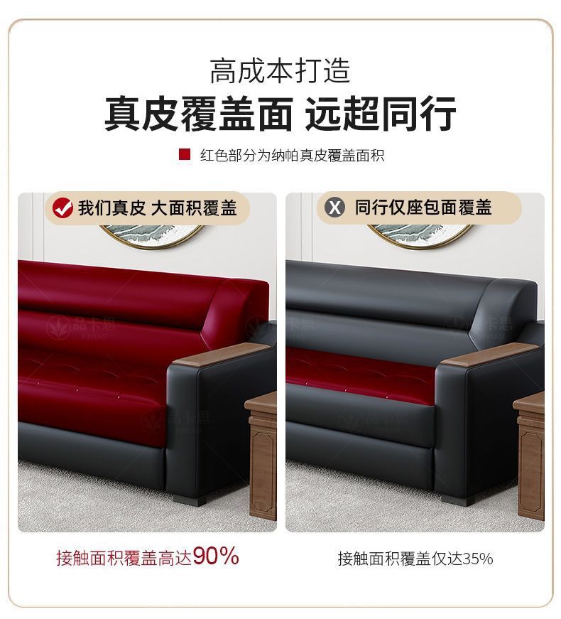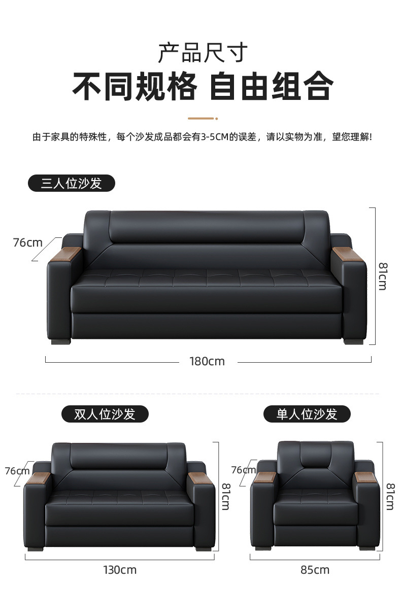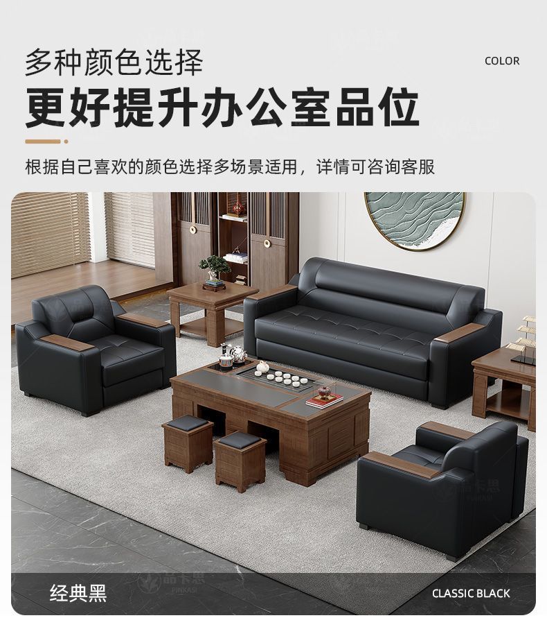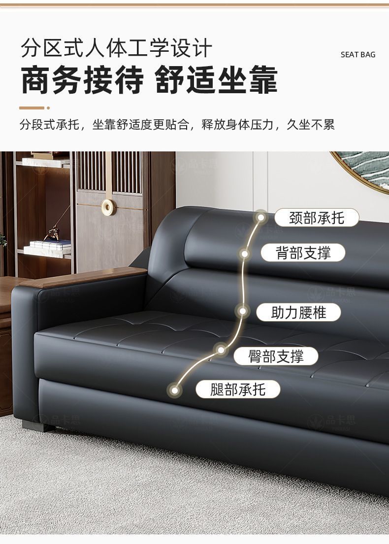 Sofá de oficina de cuero simple moderno de negocios recepción casual de tres mesas de té conjunto de cuero