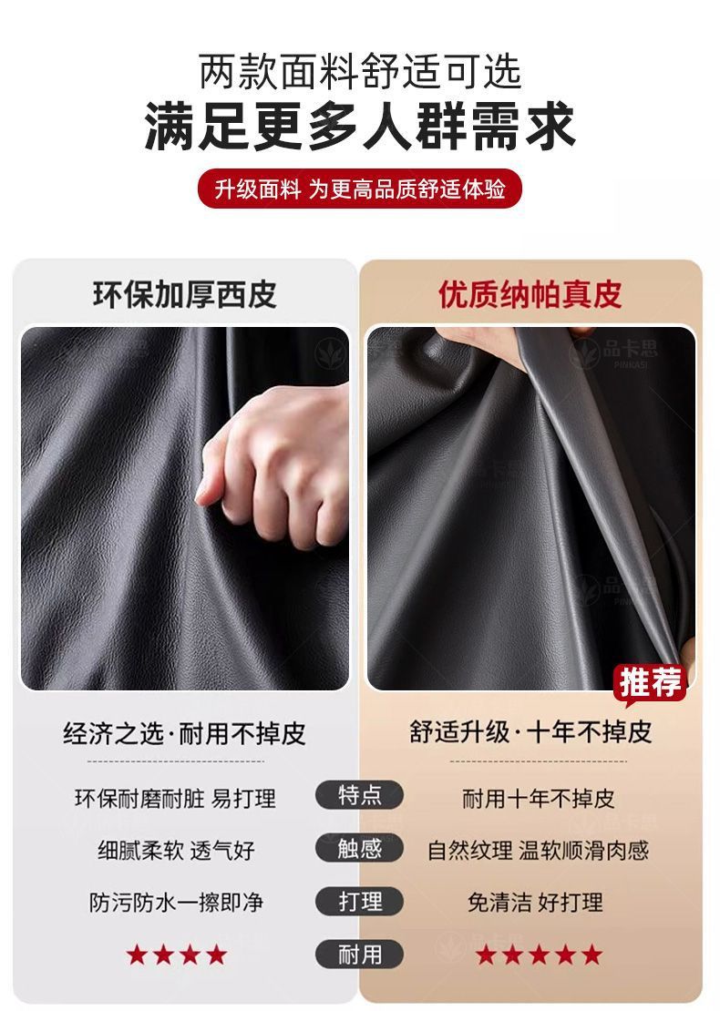 | Color | Piel oeste engrosada y resistente al desgaste [disponible en negro / marrón], piel oeste + bolsa de asiento de látex [disponible en negro / marrón], piel de cuero + bolsa de asiento de látex [negro] |