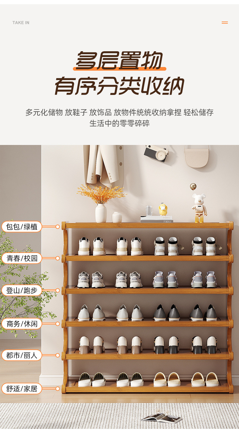Gabinete de zapatos de bambú Nan puerta doméstica estante de zapatos balcón económico multicapa entrada de gran capacidad de almacenamiento de armario