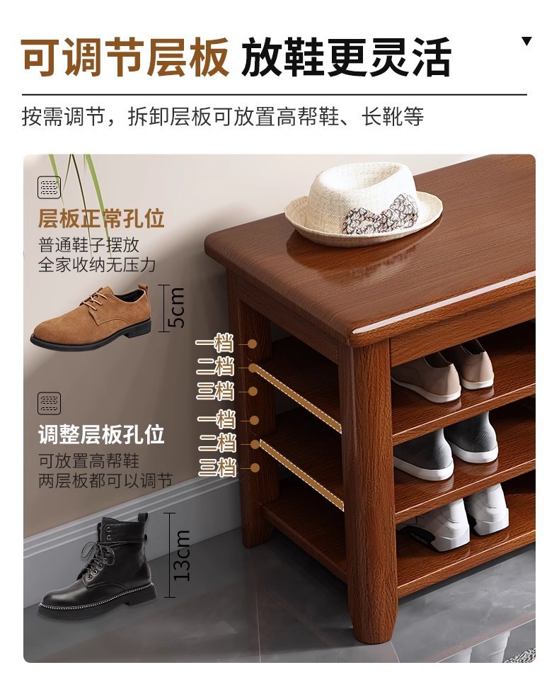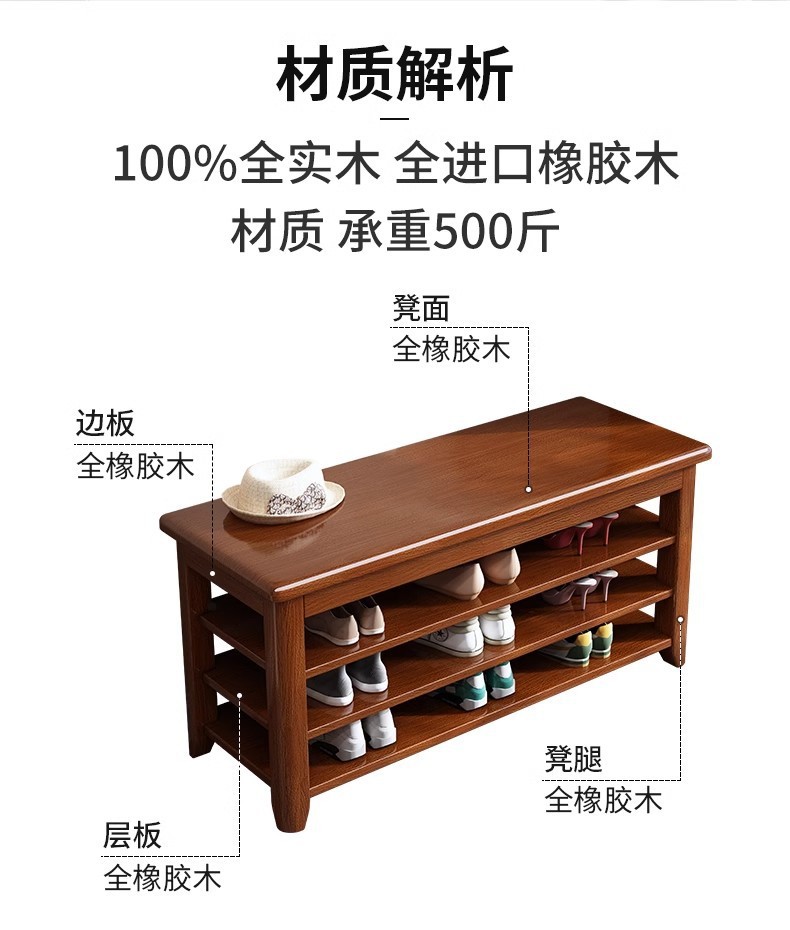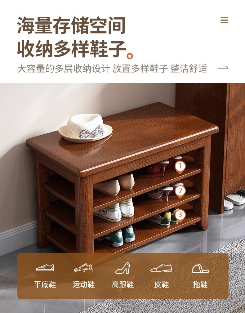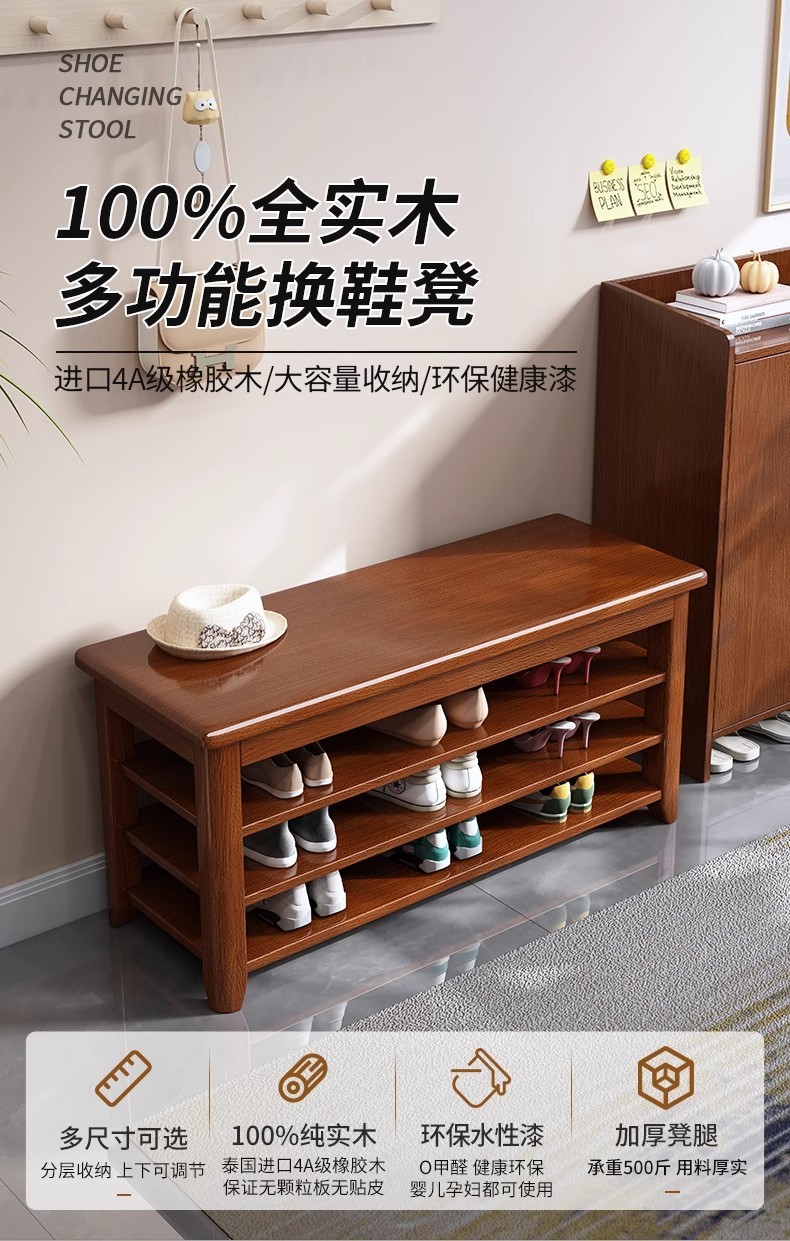 Taburete de cambio de zapatos de madera sólida, taburete de zapatos de puerta de entrada, taburete de asiento integrado para el gabinete de zapatos
