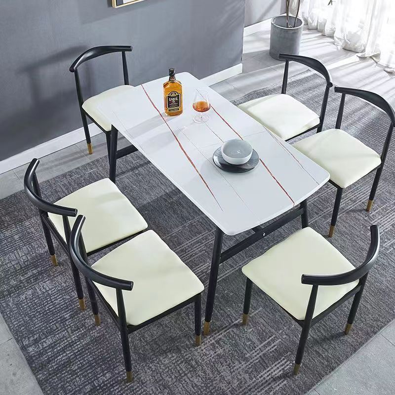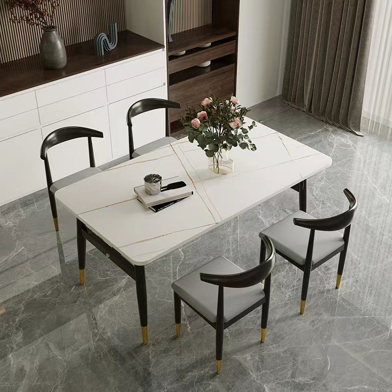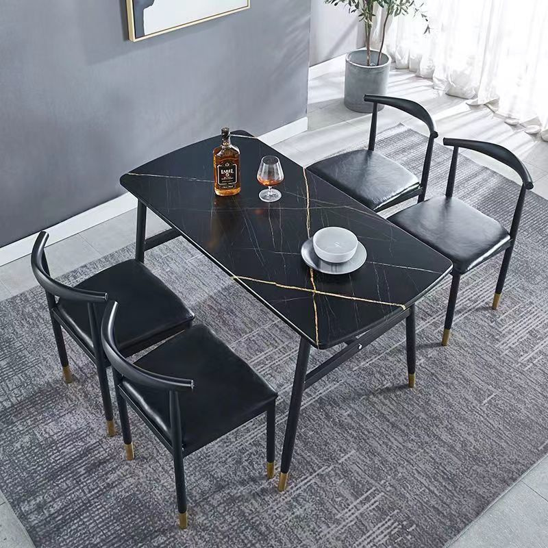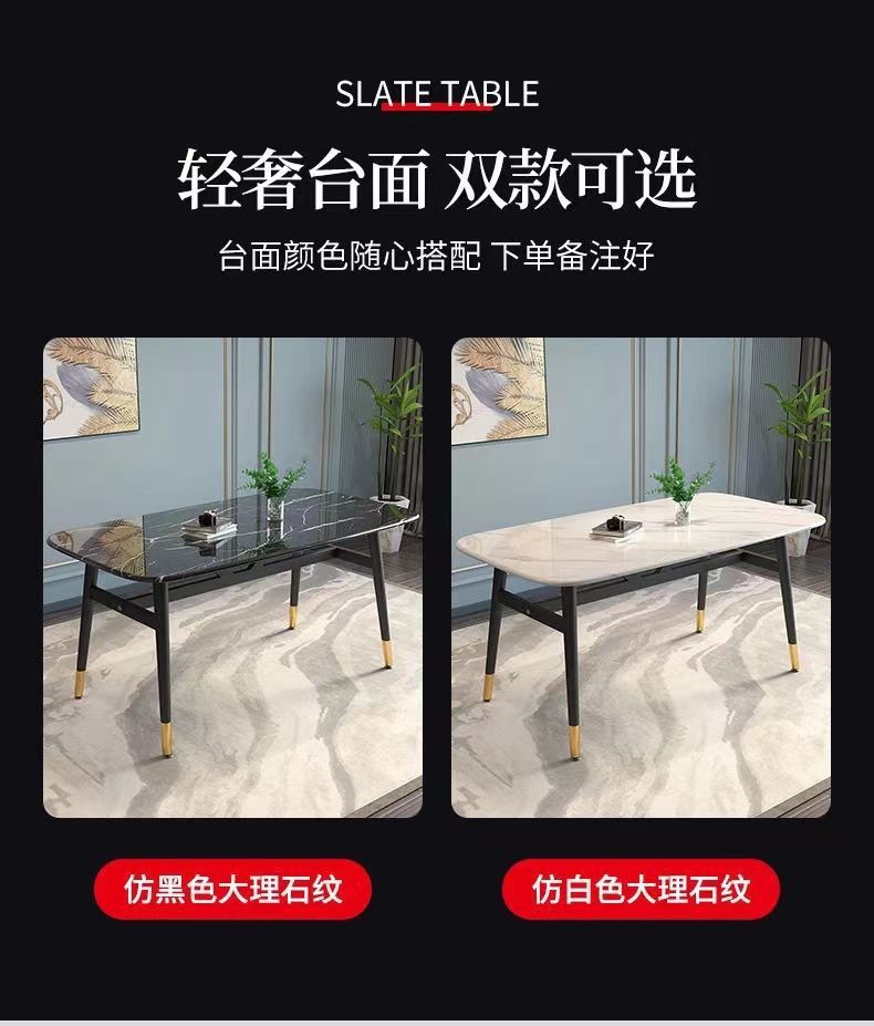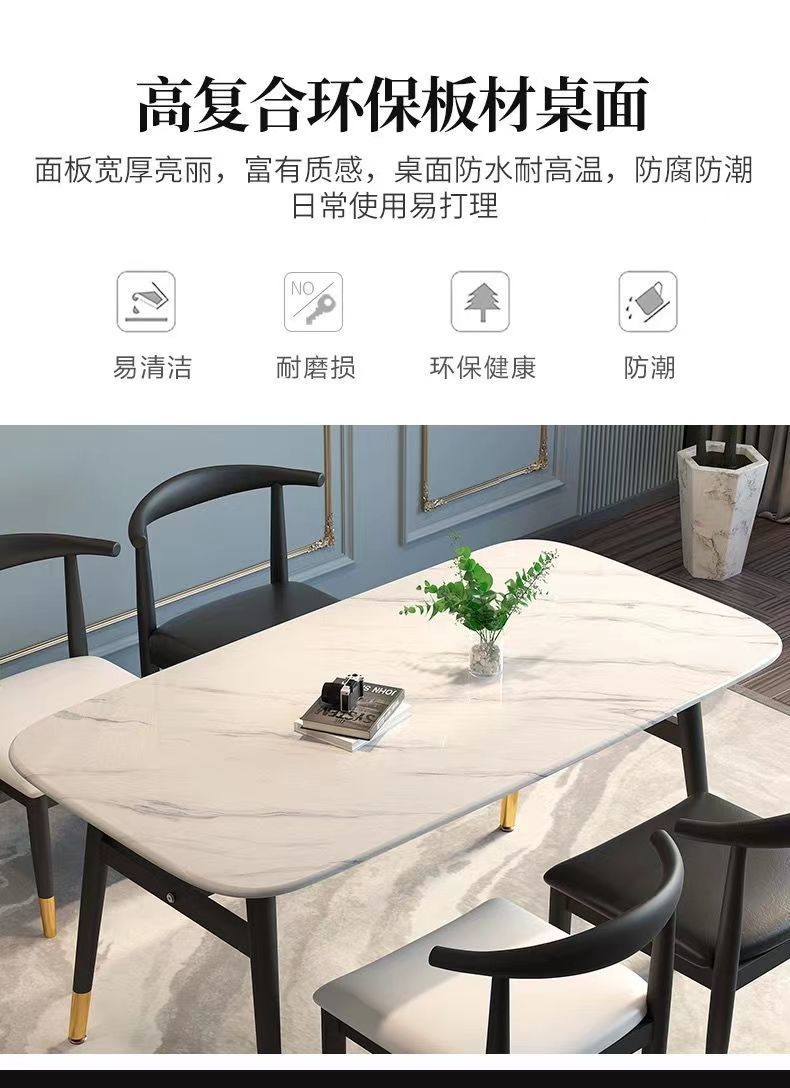 Combinación de mesa y silla de comedor de piedra de imitación de lujo ligero, mesa de comedor para el hogar, mesa de comedor rectangular de restaurante de pequeño apartamento moderno y simple