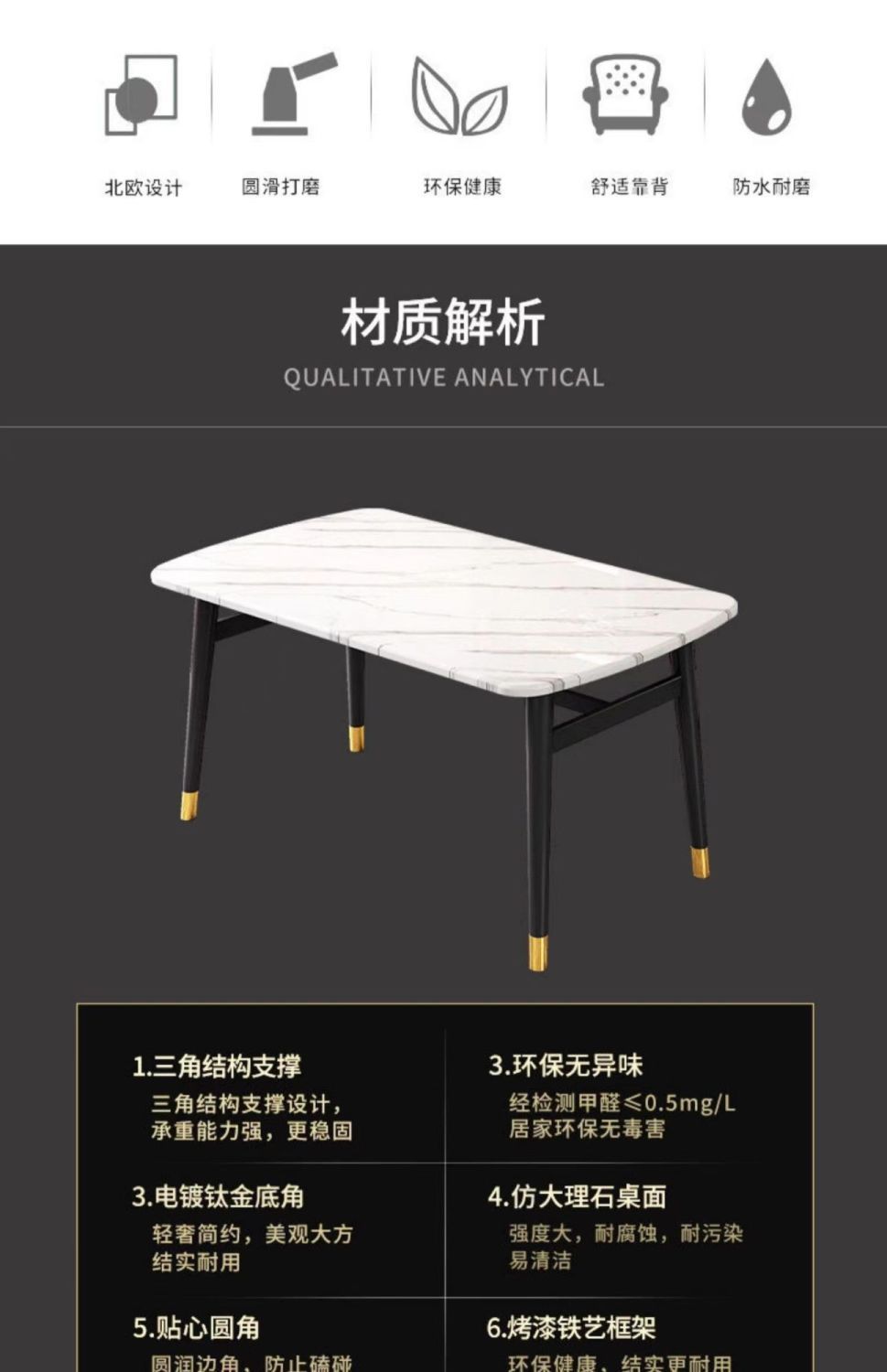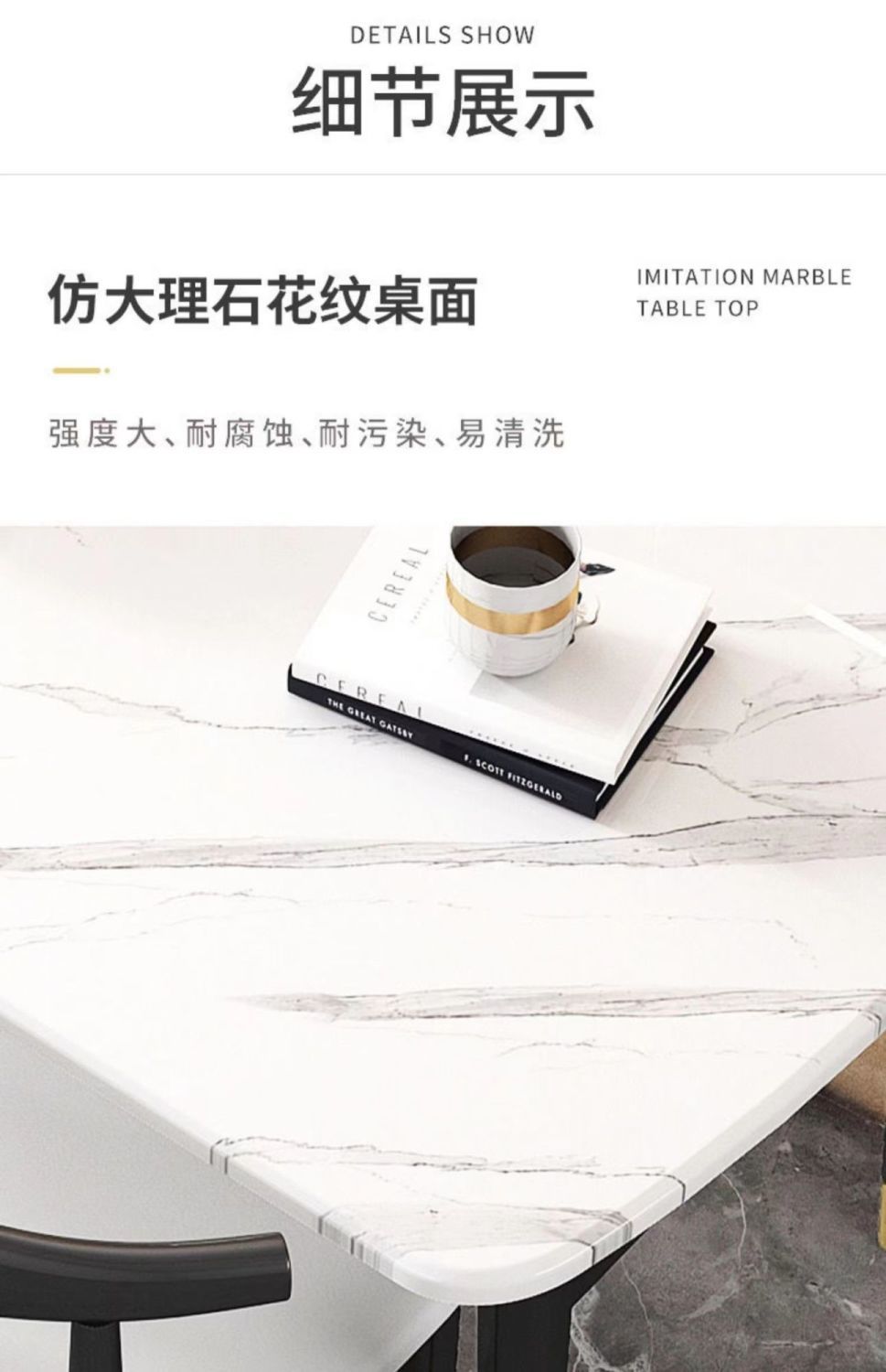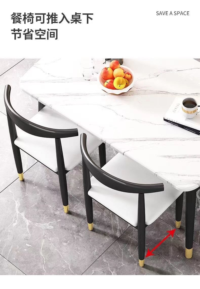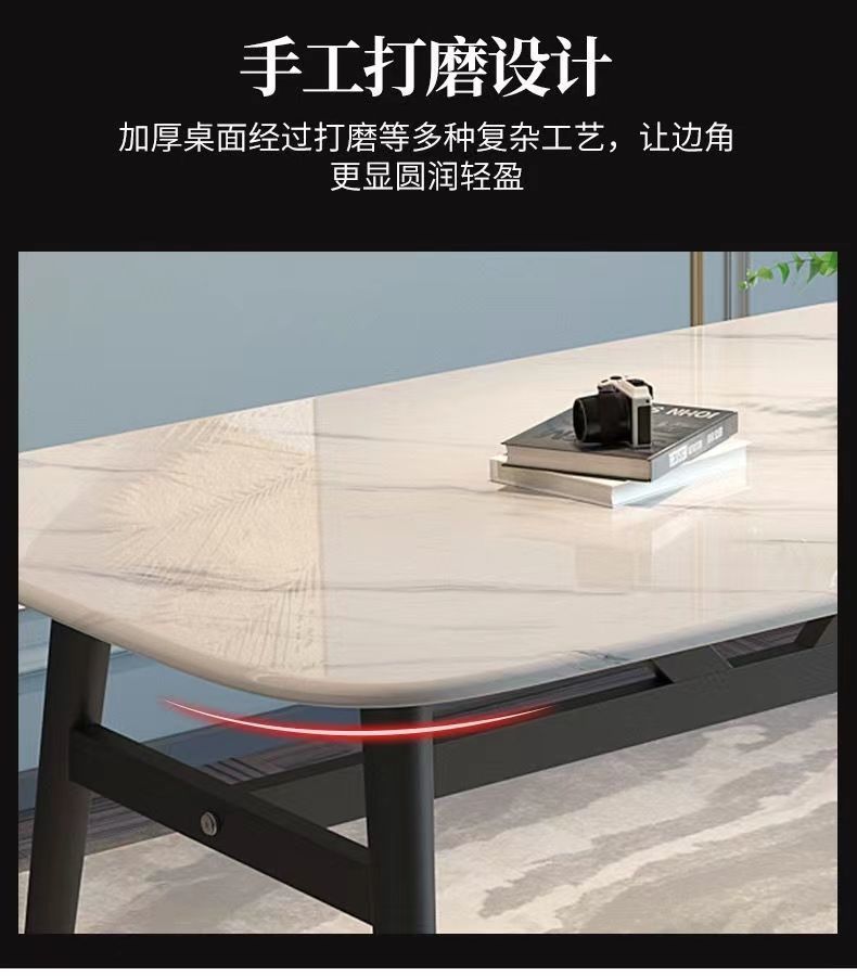 Combinación de mesa y silla de comedor de piedra de imitación de lujo ligero, mesa de comedor para el hogar, mesa de comedor rectangular de restaurante de pequeño apartamento moderno y simple