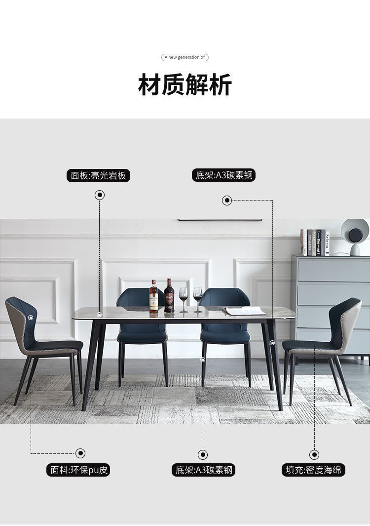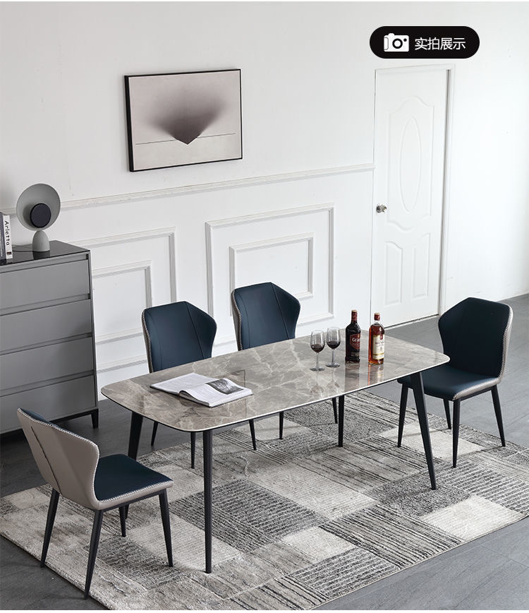 Mesa de comedor de pizarra para uso doméstico mesa de comedor de apartamento pequeño moderno simple y ligero rectángulo de lujo juego de mesa y silla de comedor brillante de alta gama