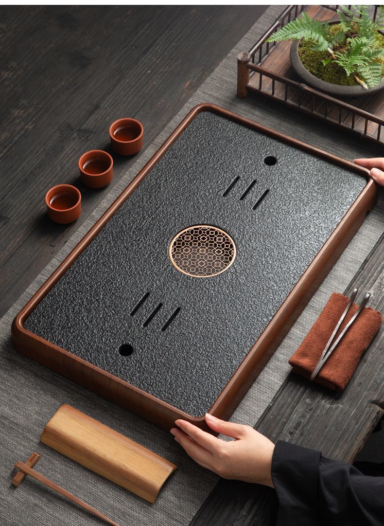 2025 nuevo estilo imitación Wujinishi bandeja de té mesa de té juego de té pequeño bandeja de drenaje mesa de burbujas secas bandeja de té para el hogar