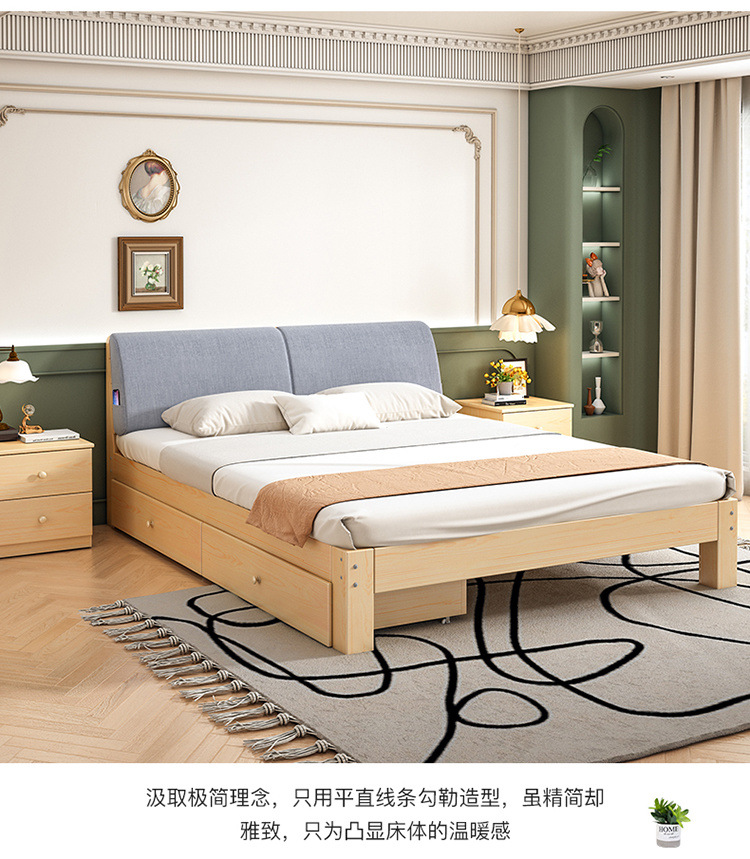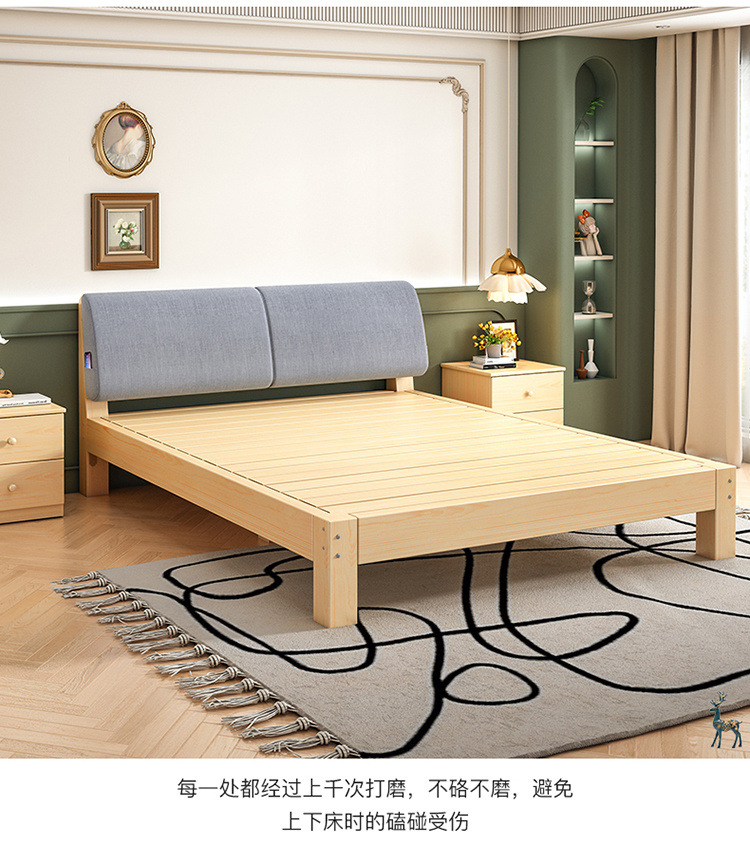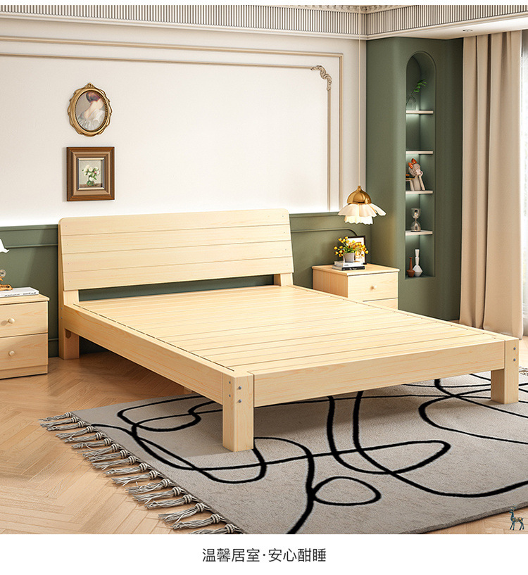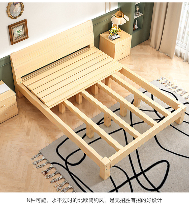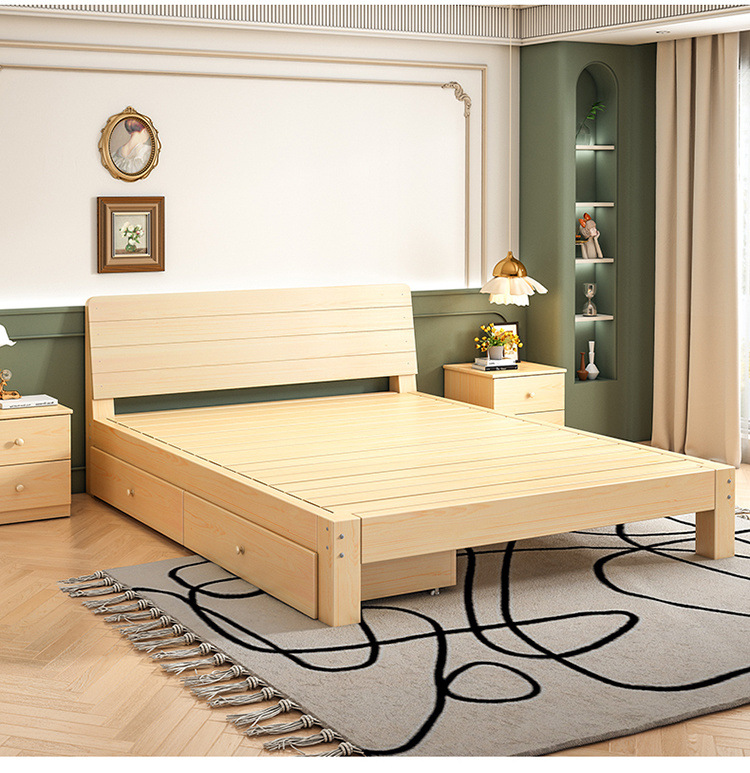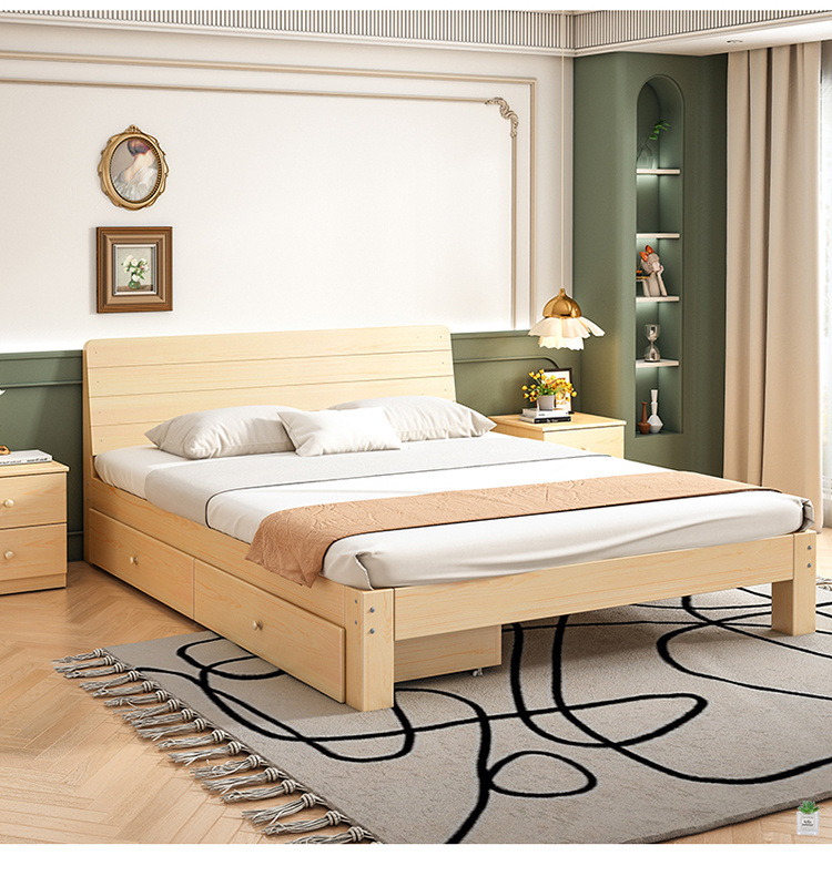 Cama de madera maciza 2m doble 1.8m cama grande cama individual 1.5m simple cama de madera doméstica 1m cama de alquiler
