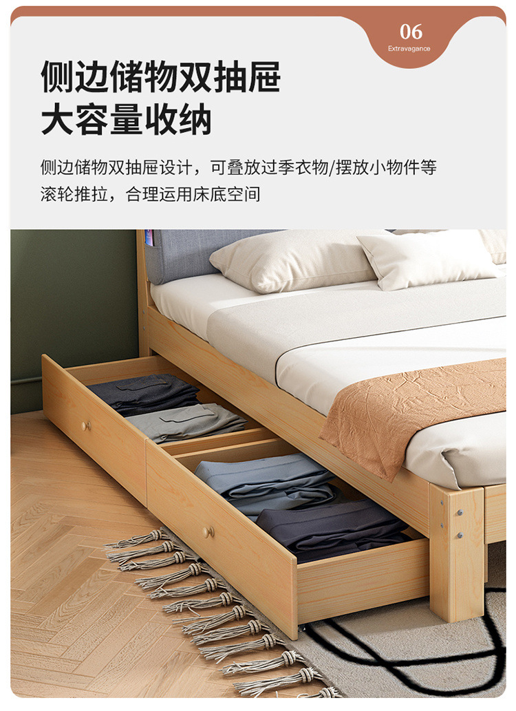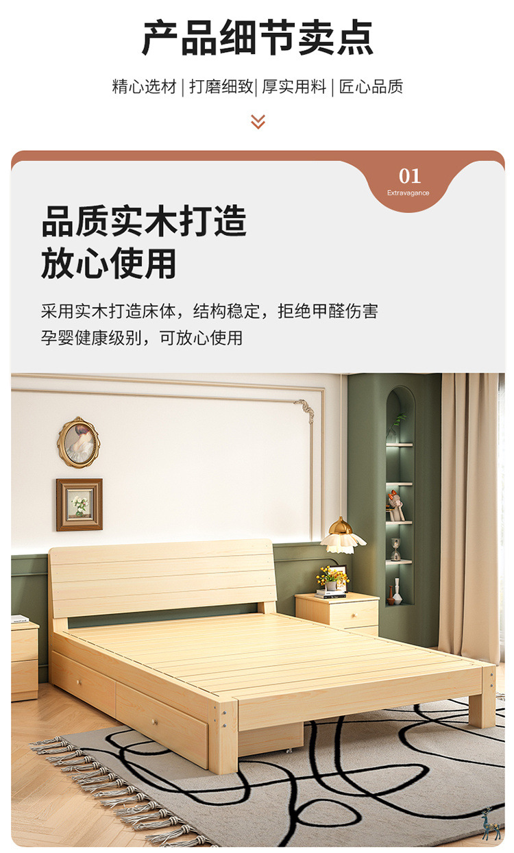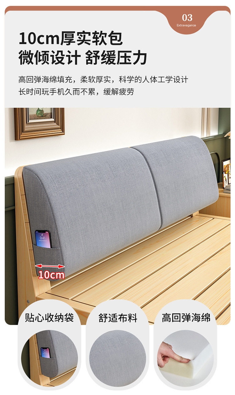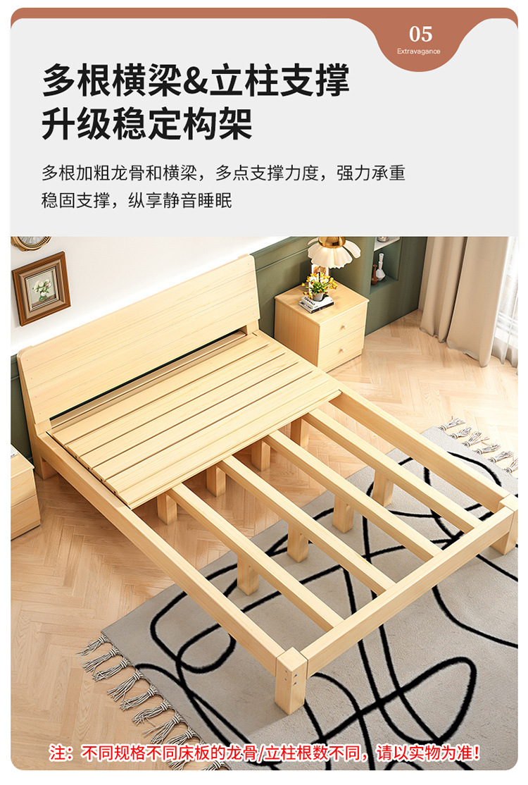 Cama de madera maciza 2m doble 1.8m cama grande cama individual 1.5m simple cama de madera doméstica 1m cama de alquiler