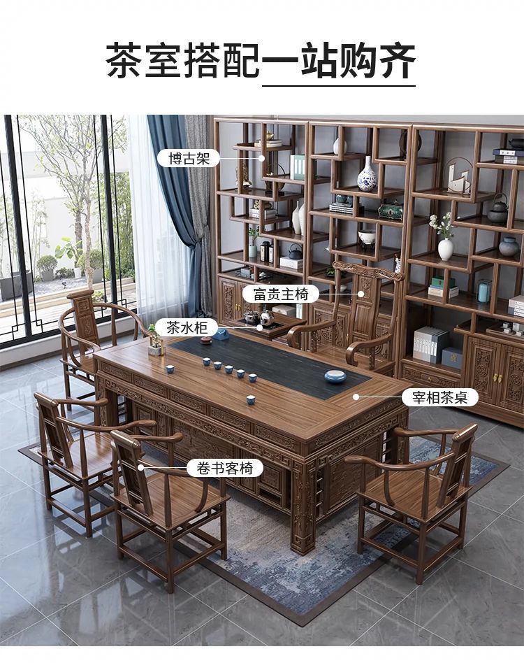Nueva mesa de té china de madera sólida combinación de alta gama jefe de oficina mesa de té doméstica un conjunto completo de mesa de té antiguo