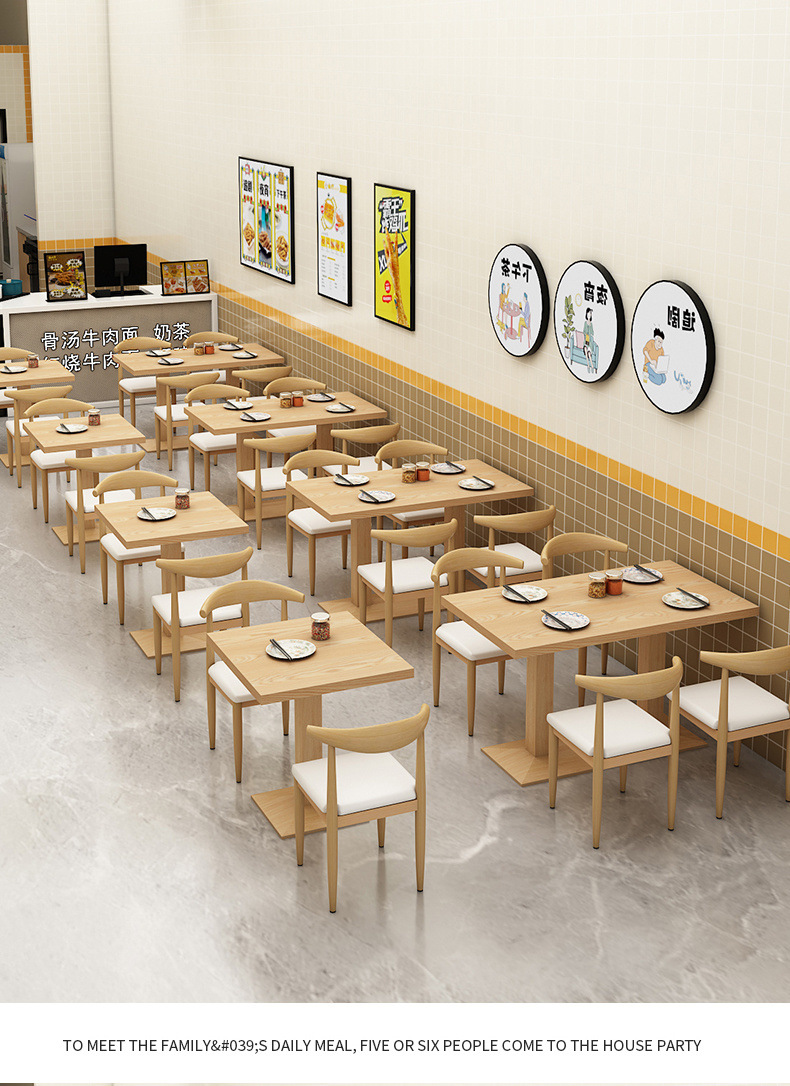 Snack bar bar barbecue desayuno comida rápida mesa y silla combinación de té de leche tienda de postres mesa de restaurante comercial económico