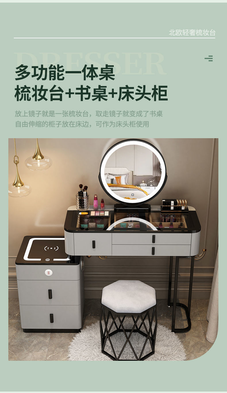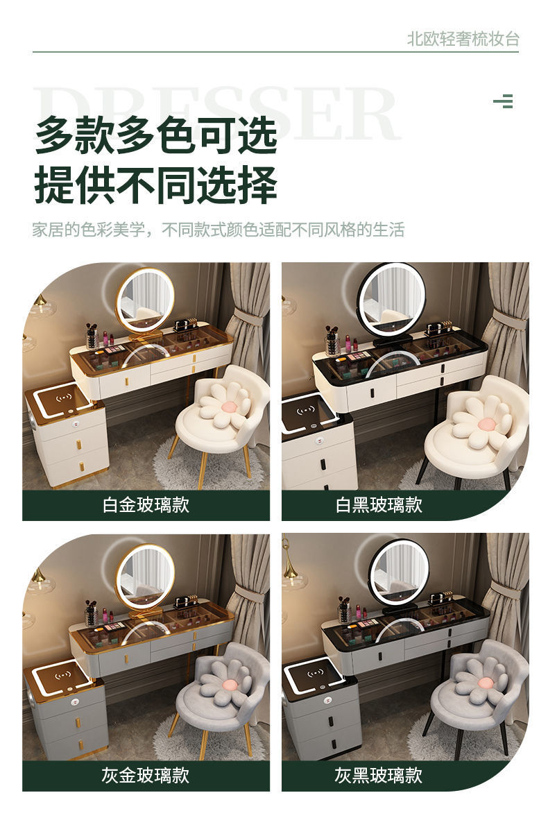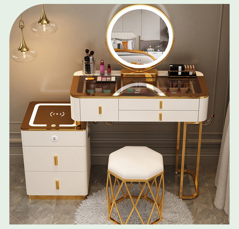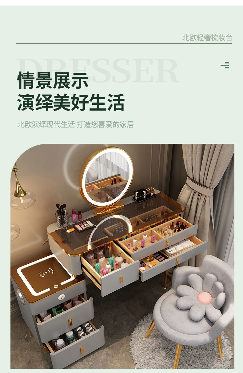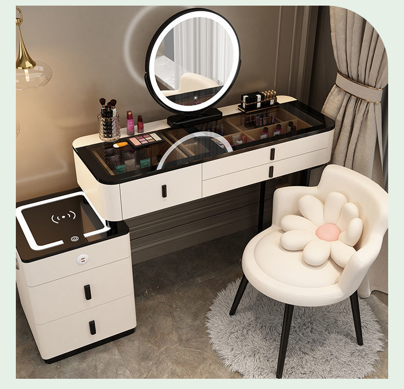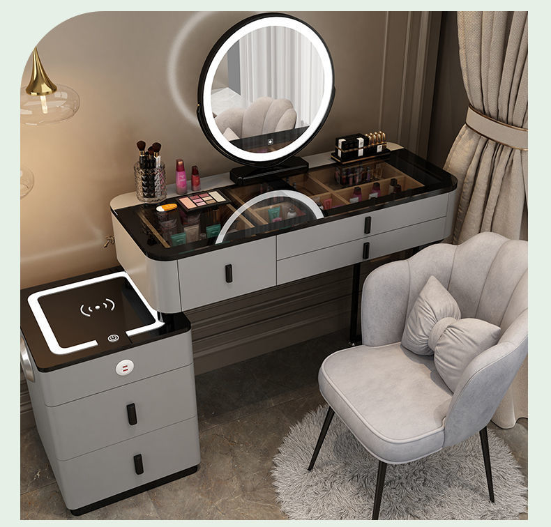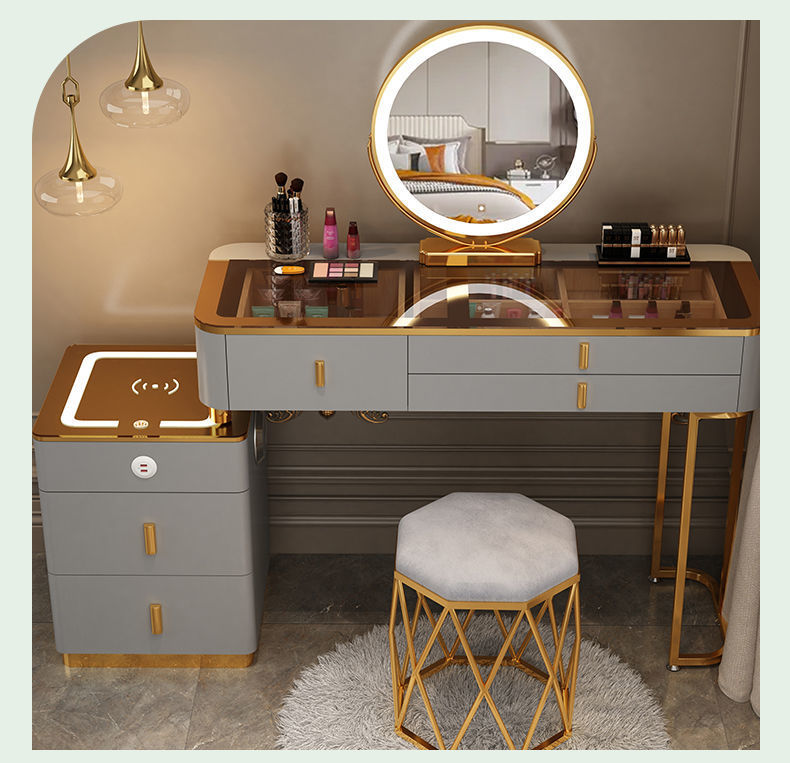 Mesa de vestuario inteligente de carga inalámbrica de lujo ligero mesa de maquillaje de dormitorio nórdica moderna simple y multifuncional mesa de maquillaje de madera maciza