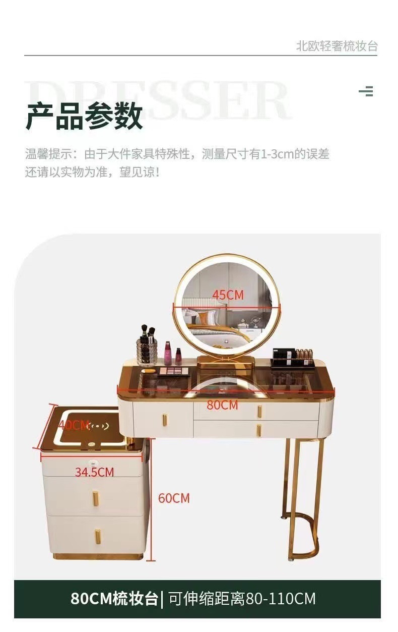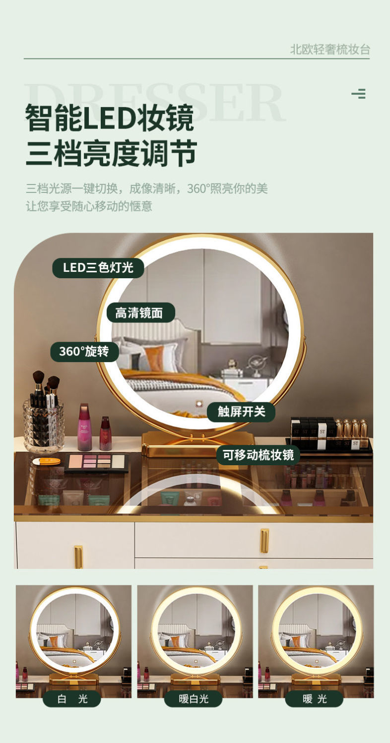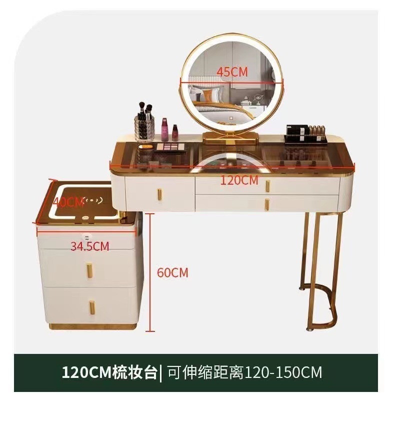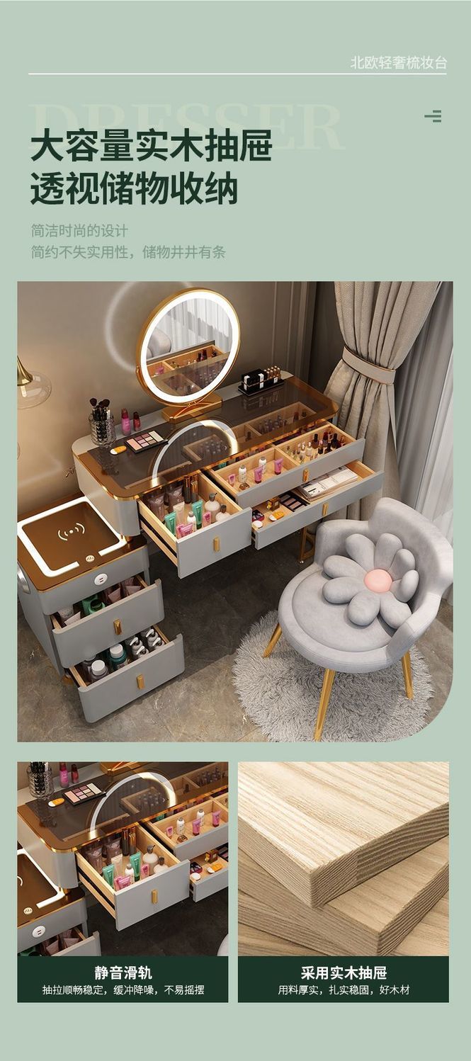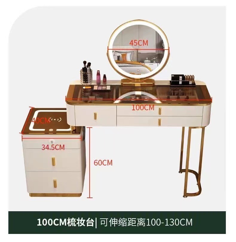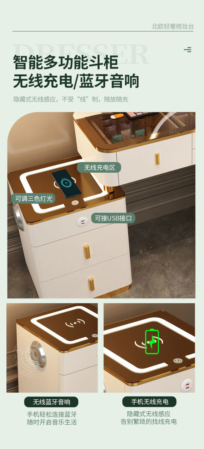 Mesa de vestuario inteligente de carga inalámbrica de lujo ligero mesa de maquillaje de dormitorio nórdica moderna simple y multifuncional mesa de maquillaje de madera maciza