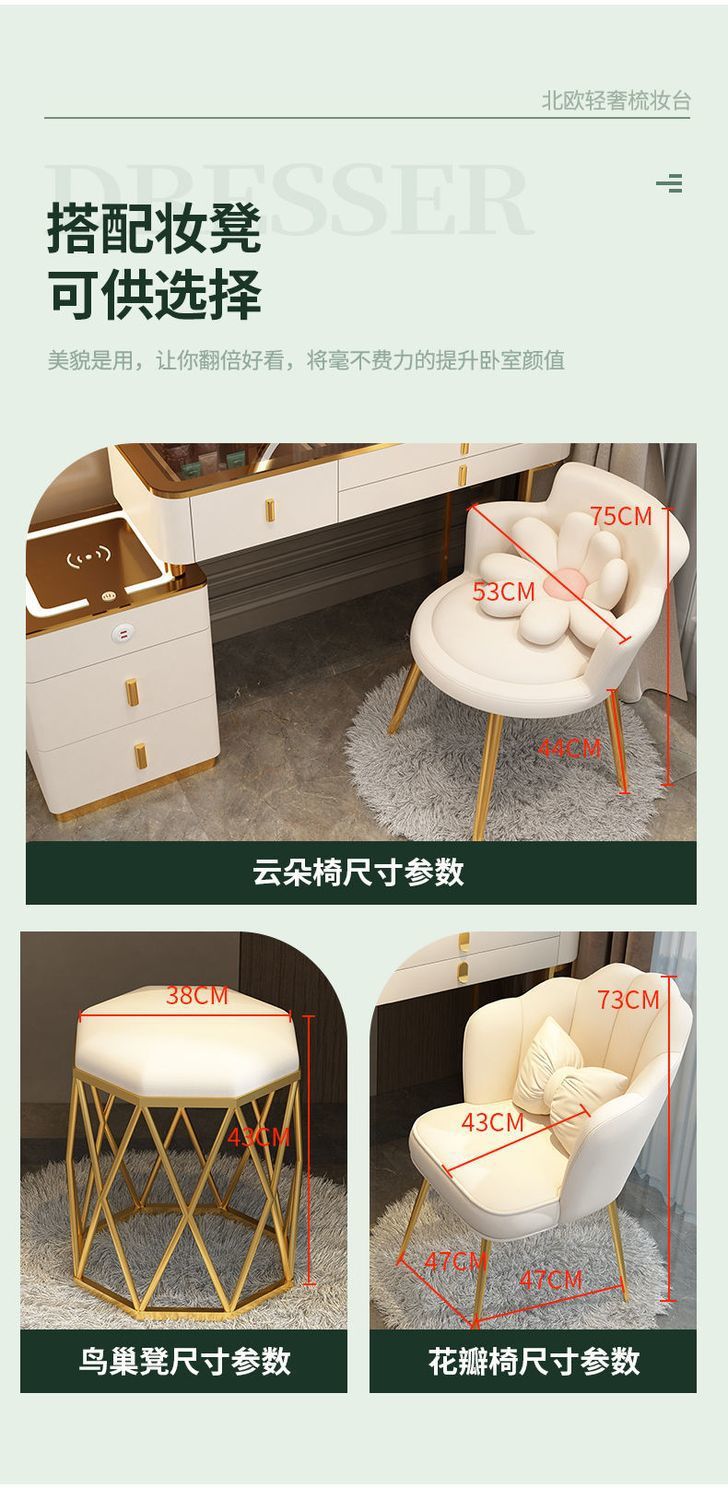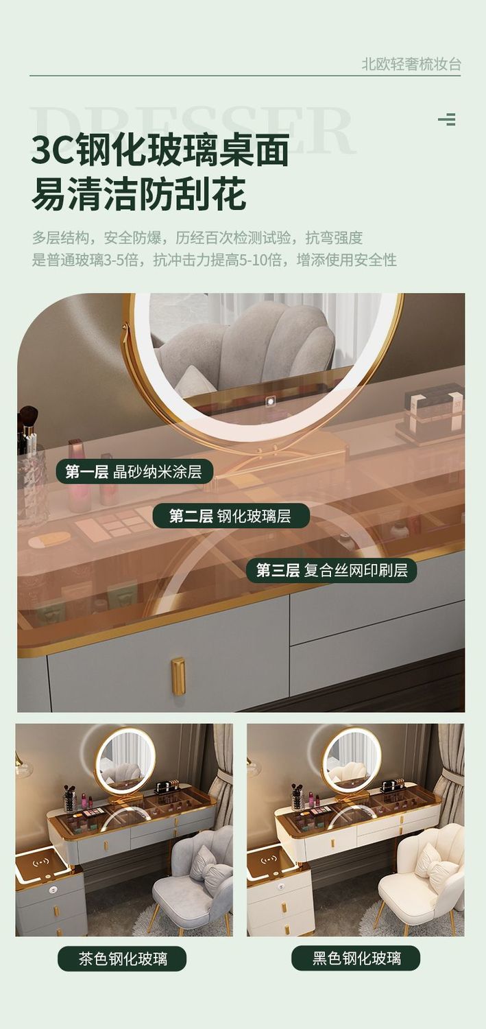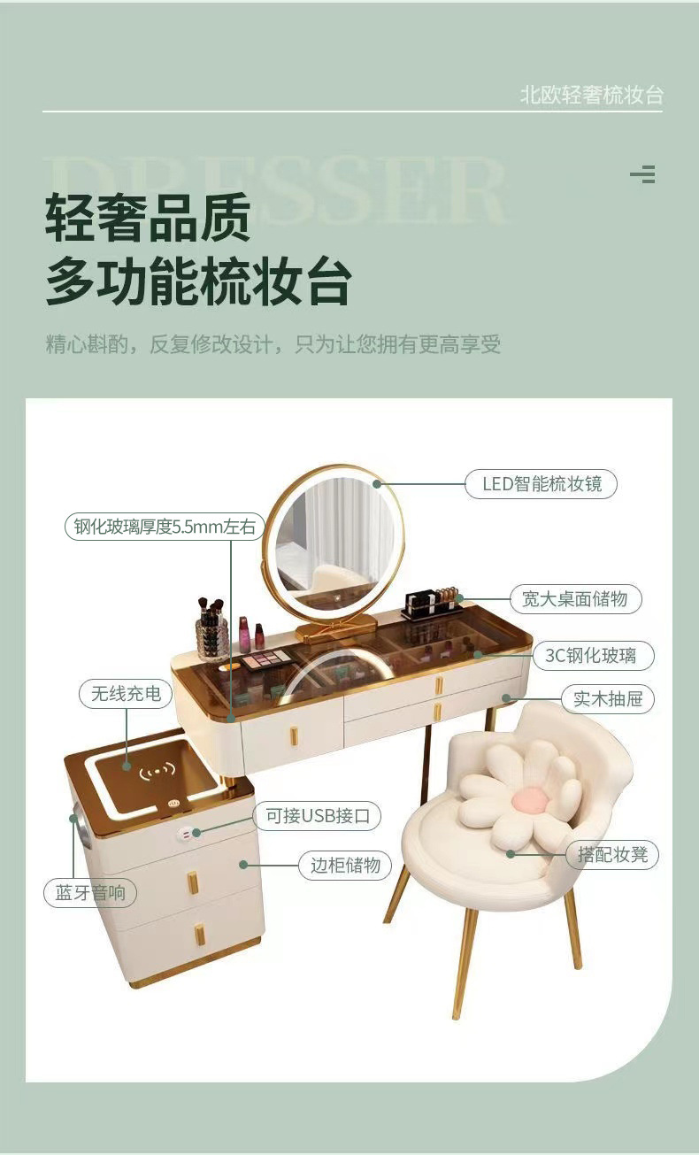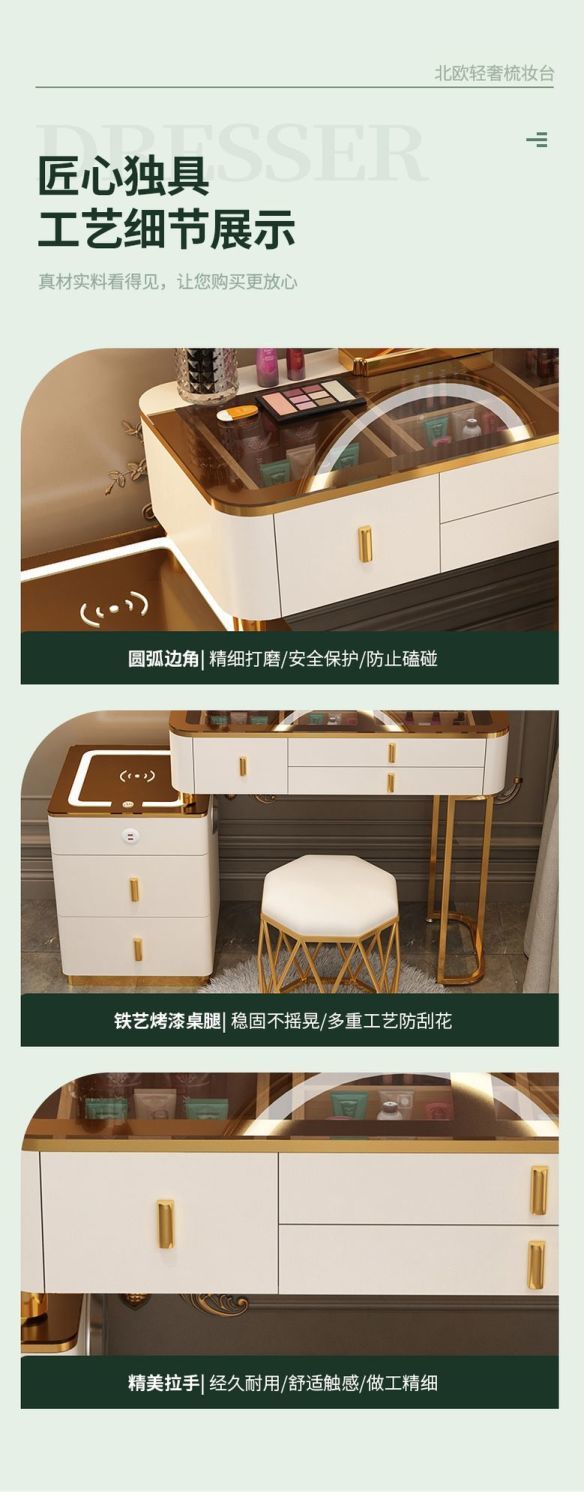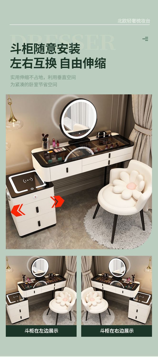 Mesa de vestuario inteligente de carga inalámbrica de lujo ligero mesa de maquillaje de dormitorio nórdica moderna simple y multifuncional mesa de maquillaje de madera maciza