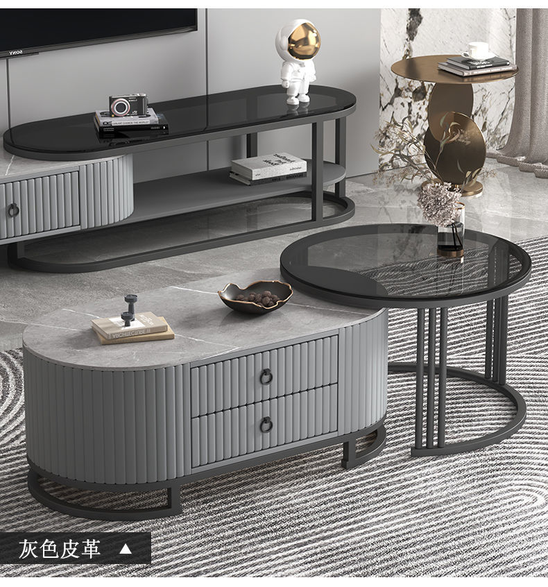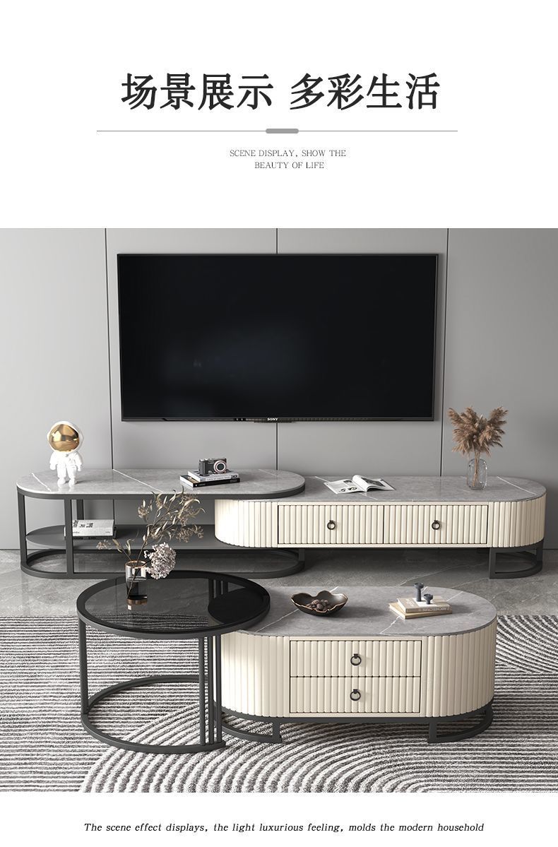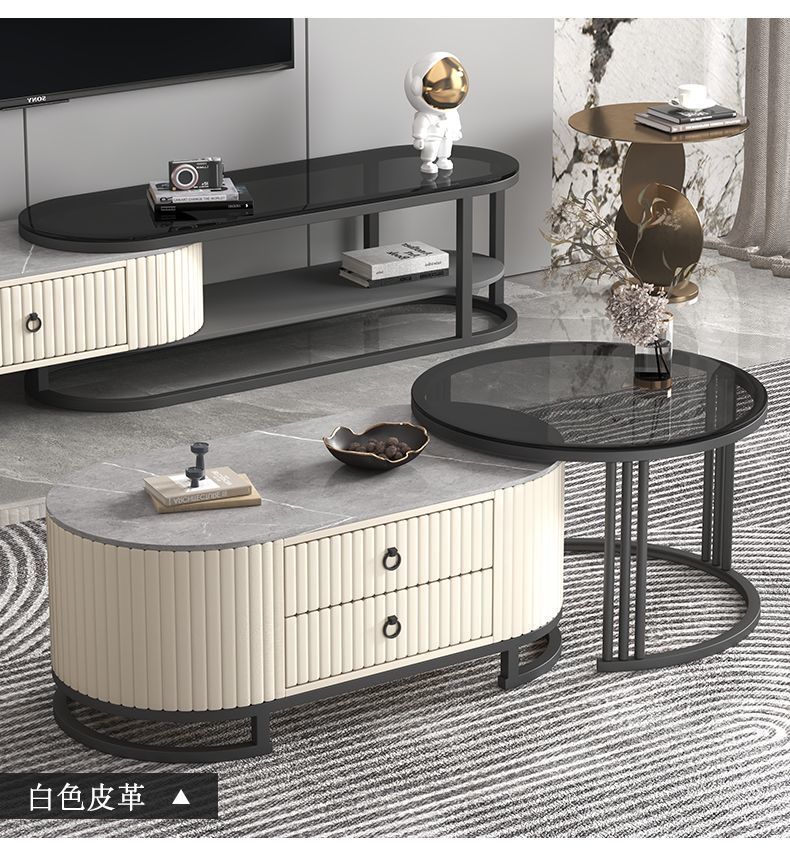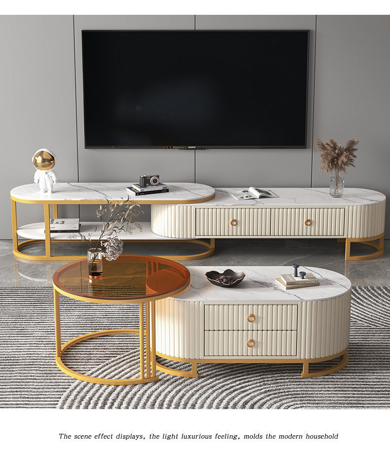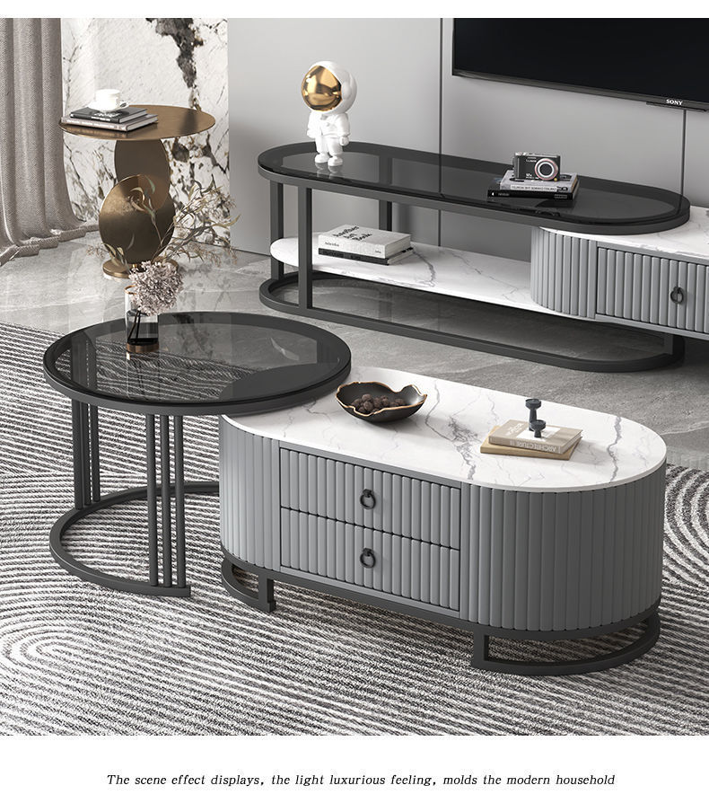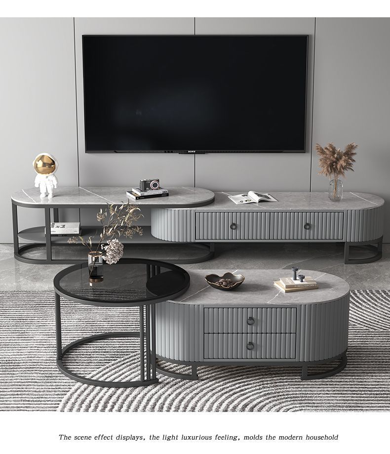 Mesa de centro de pizarra, mueble de TV, lujo ligero, sensación moderna de alta gama, sala de estar para el hogar, combinación de mesa de centro telescópica ovalada, mesa lateral