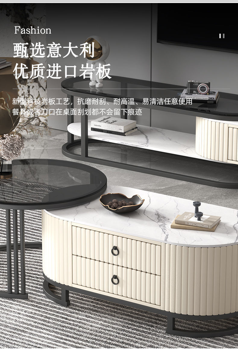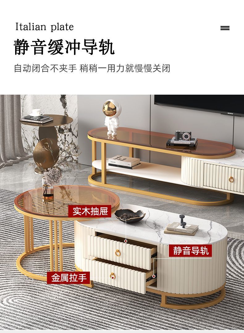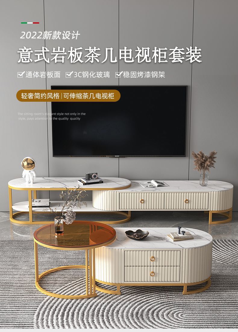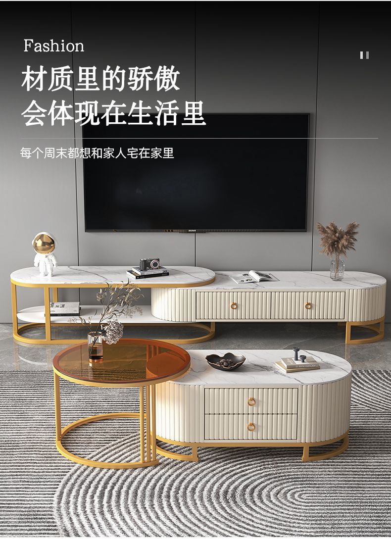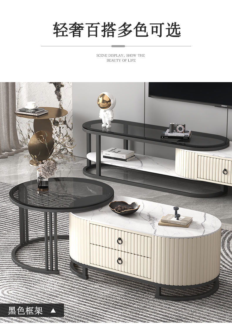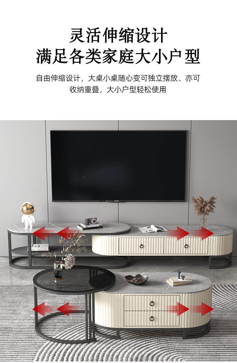 Mesa de centro de pizarra, mueble de TV, lujo ligero, sensación moderna de alta gama, sala de estar para el hogar, combinación de mesa de centro telescópica ovalada, mesa lateral