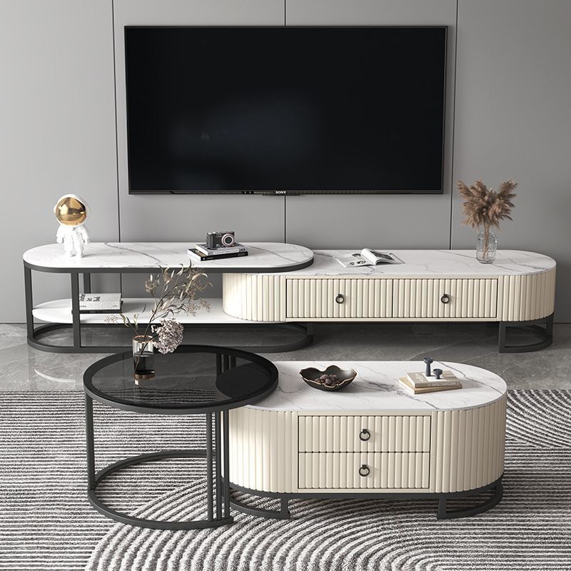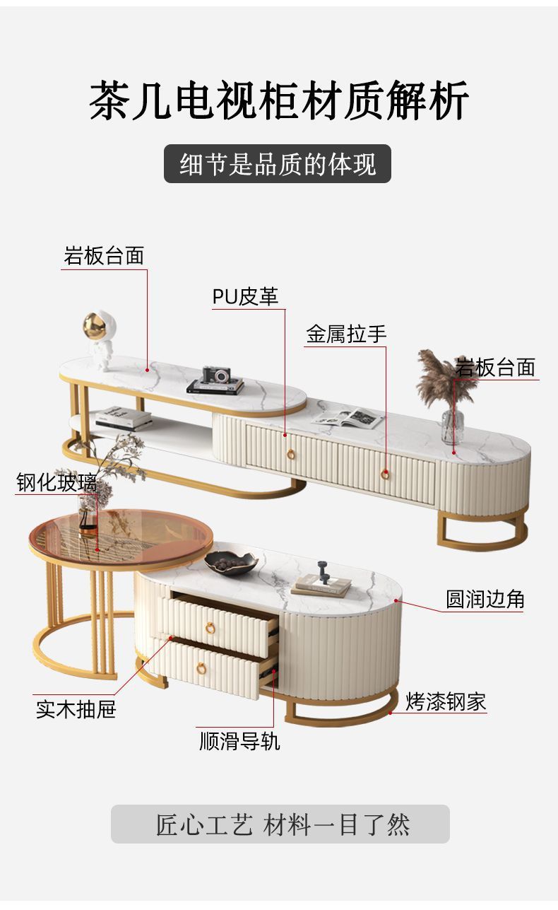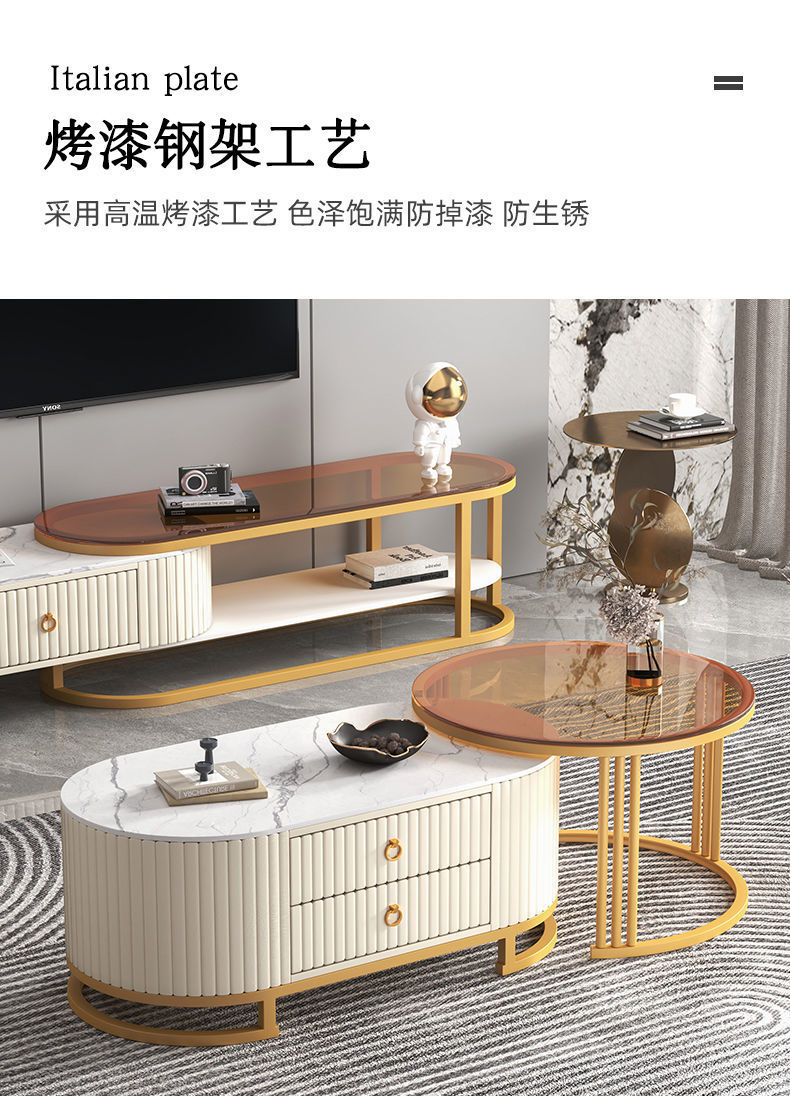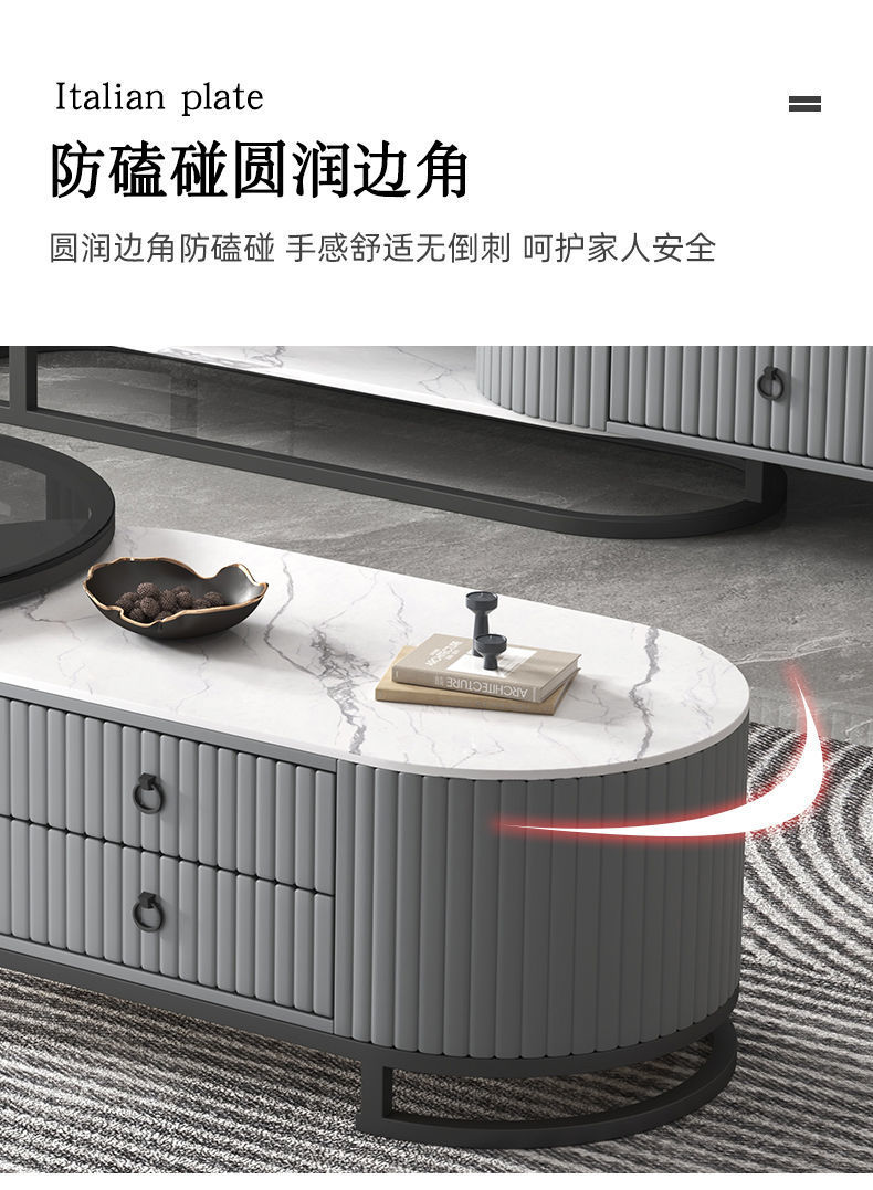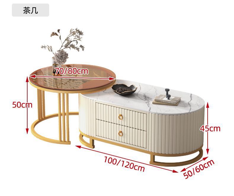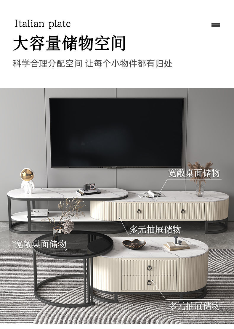 Mesa de centro de pizarra, mueble de TV, lujo ligero, sensación moderna de alta gama, sala de estar para el hogar, combinación de mesa de centro telescópica ovalada, mesa lateral
