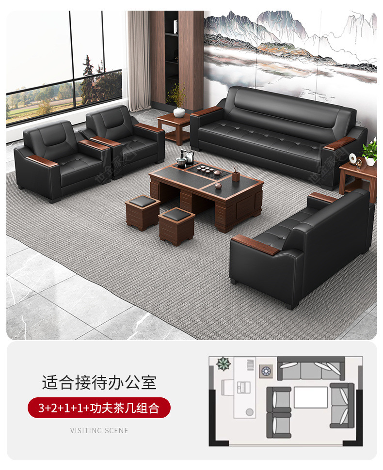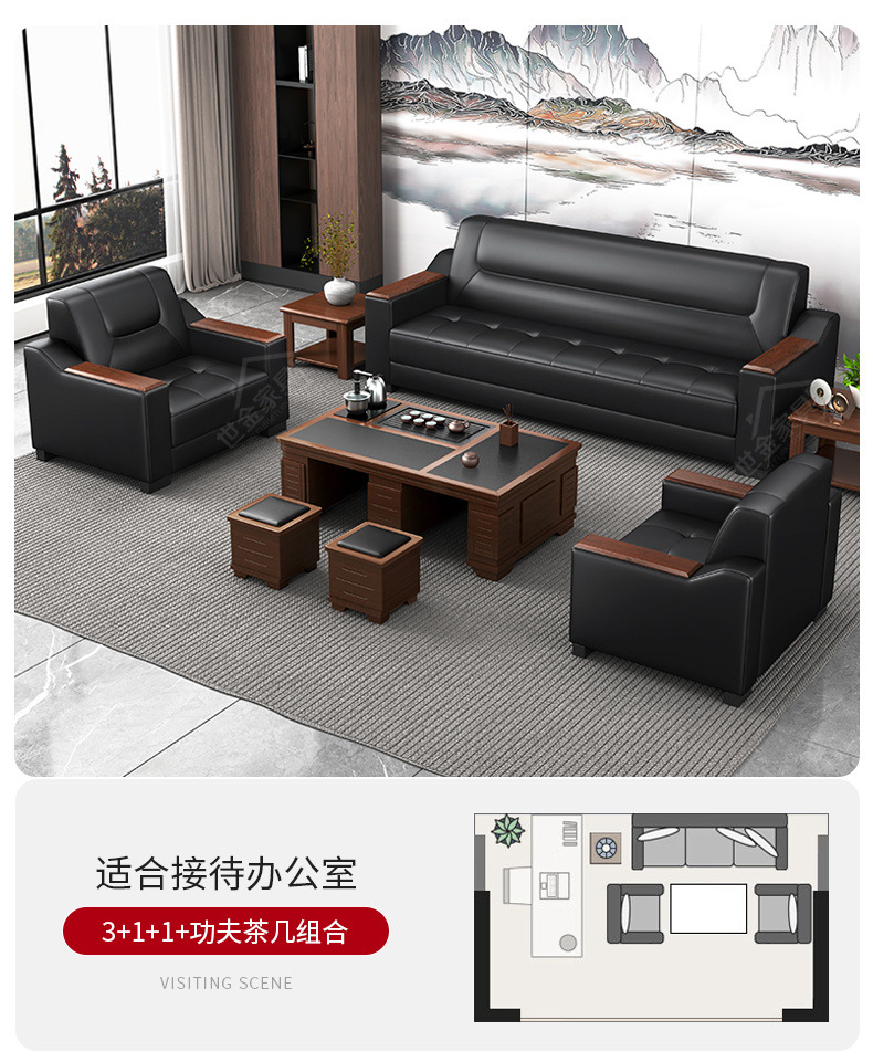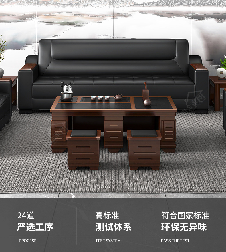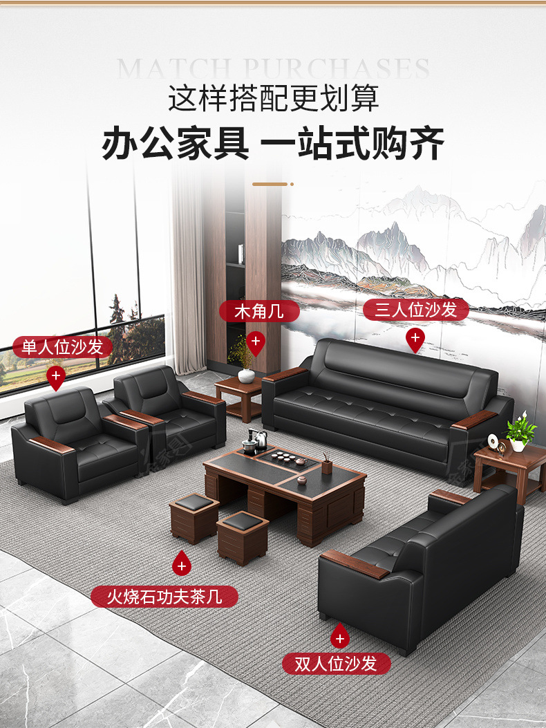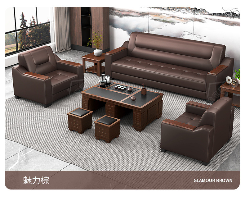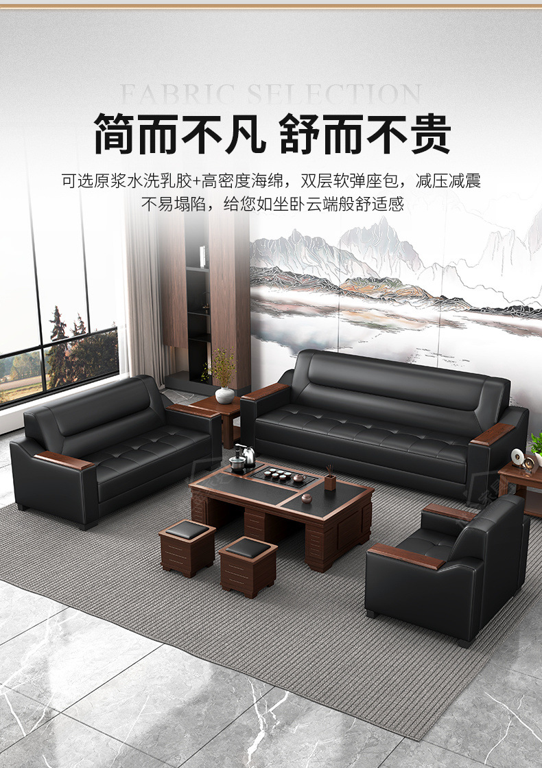 Sofá de oficina de cuero simple y moderno reunión de negocios recepción ocio mesa de centro para tres personas juego de combinación arte de cuero