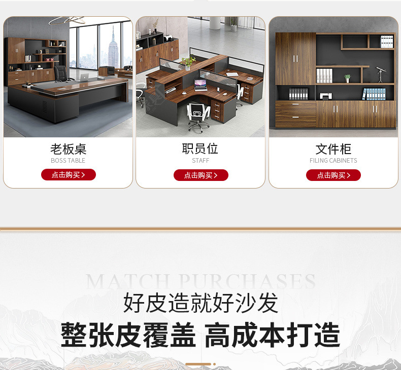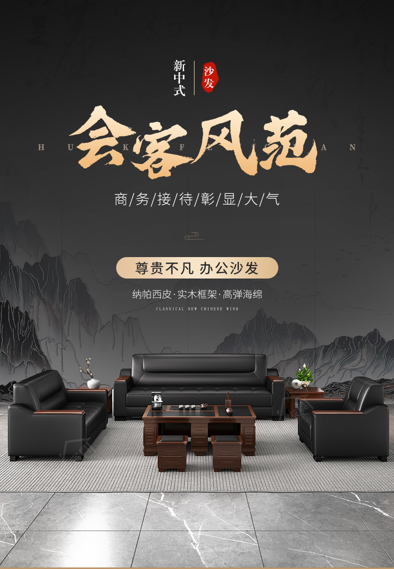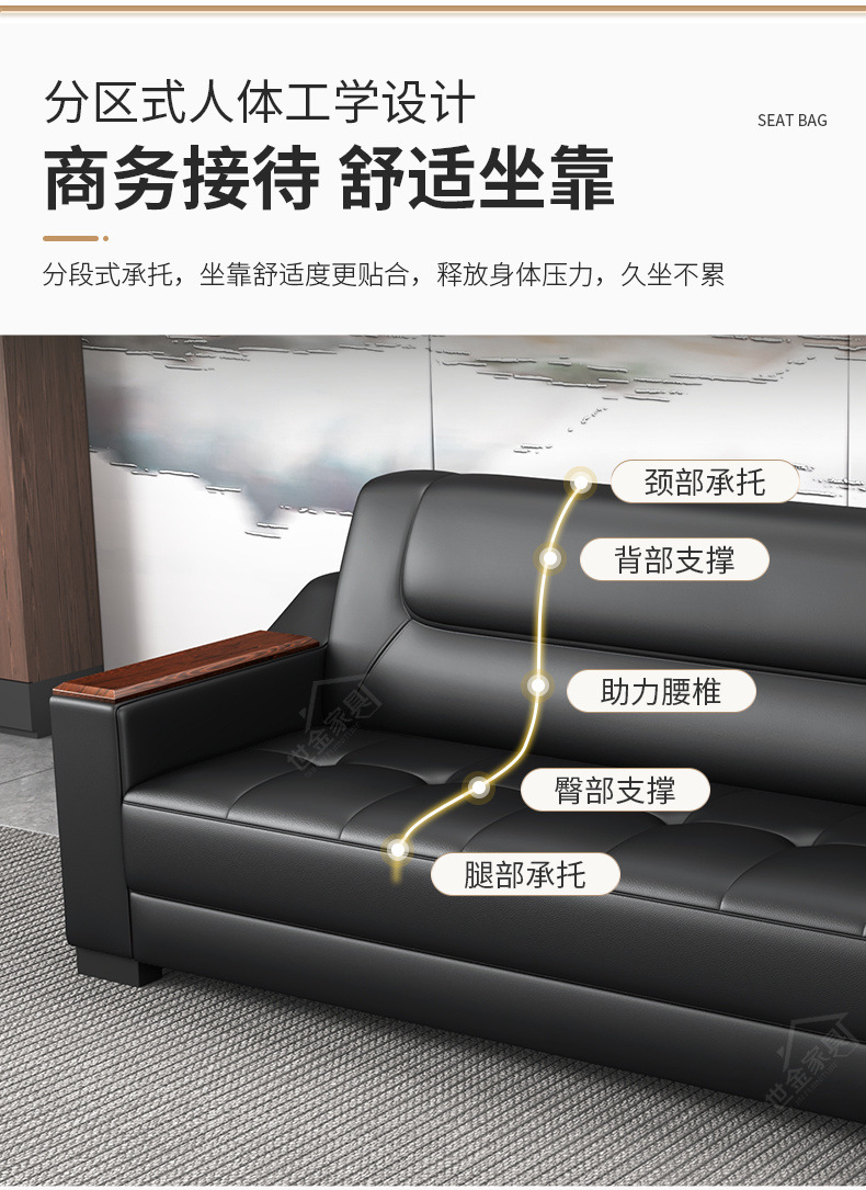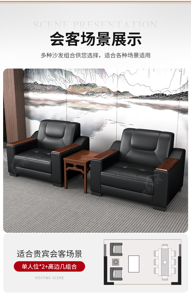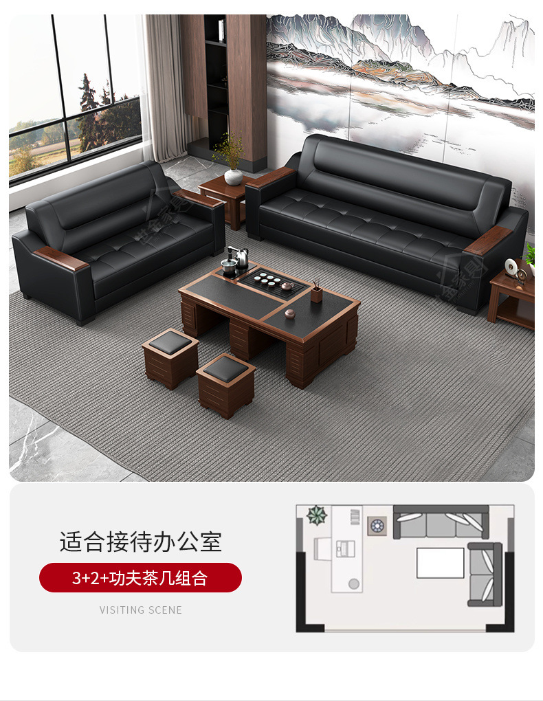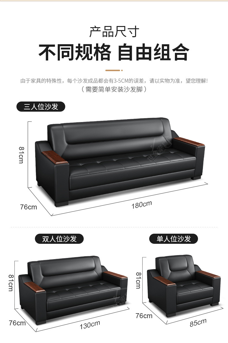 Sofá de oficina de cuero simple y moderno reunión de negocios recepción ocio mesa de centro para tres personas juego de combinación arte de cuero