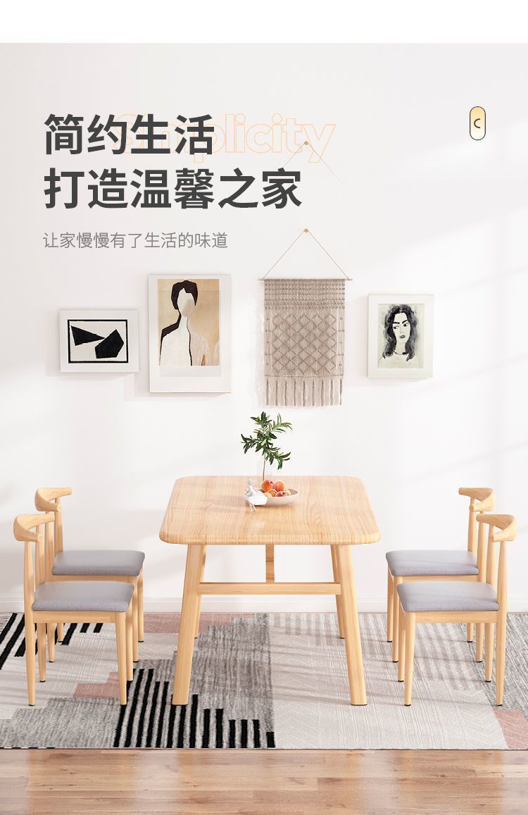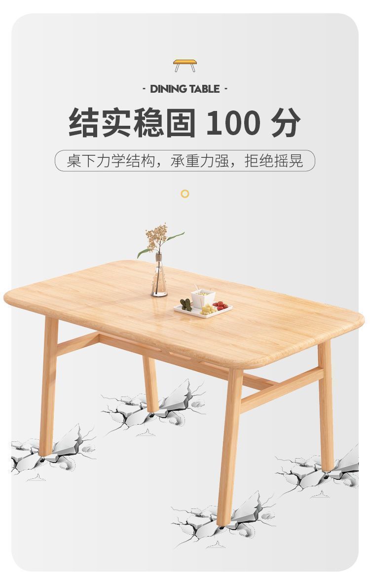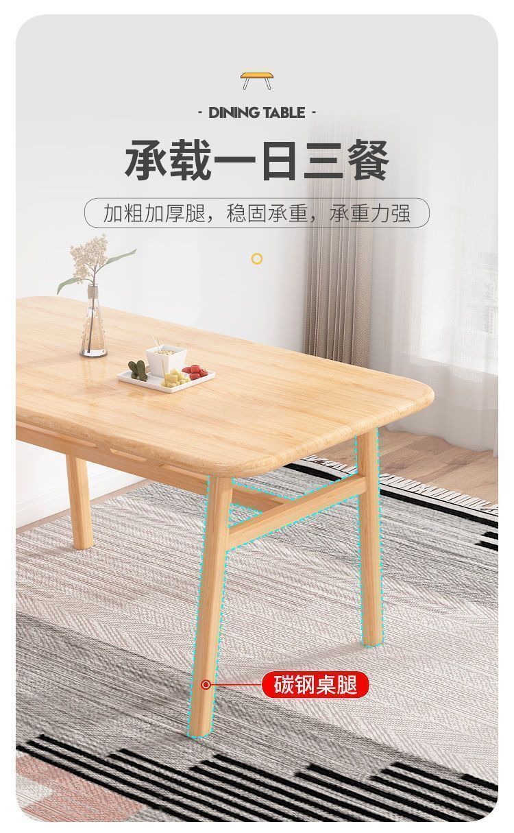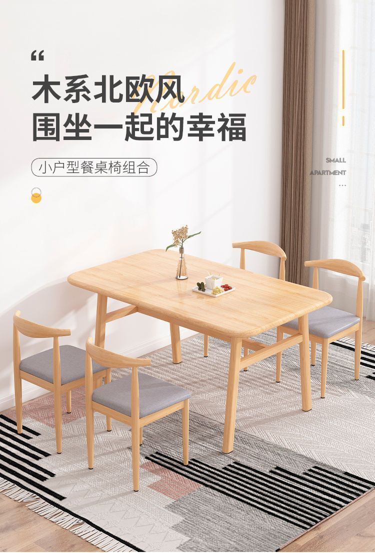 Mesa de comedor nórdica para hogares pequeños, mesa de comedor simple, mesa de comedor de lujo ligera y silla combinada, mesa de comedor de madera maciza, rectangular