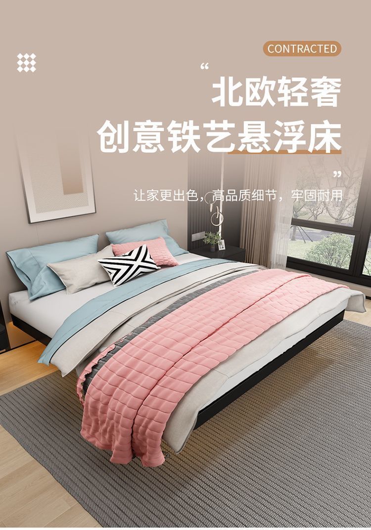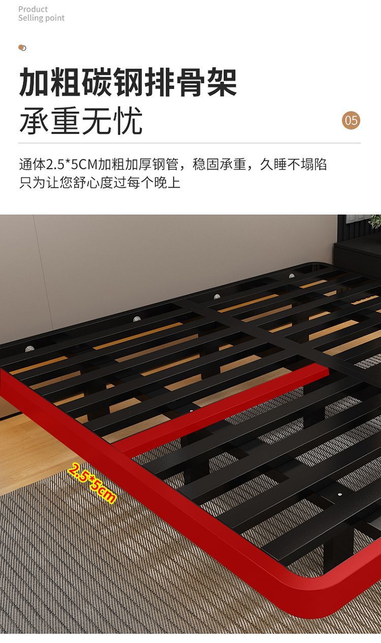 Cama de suspensión simple hierro forjado costilla cama de acero colgante cama de lujo ligera cama de marco de hierro doble cama de marco de hierro cama de hierro forjado