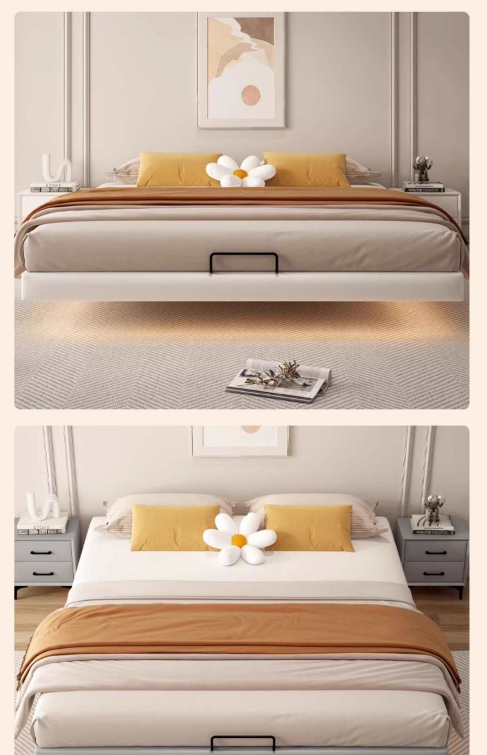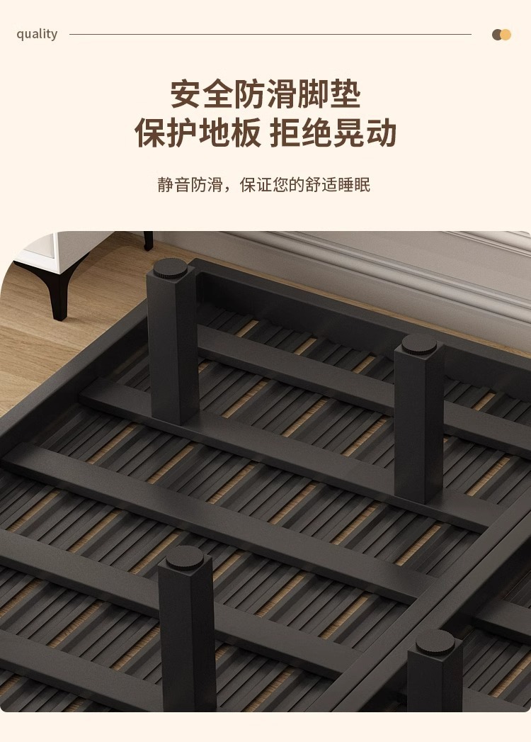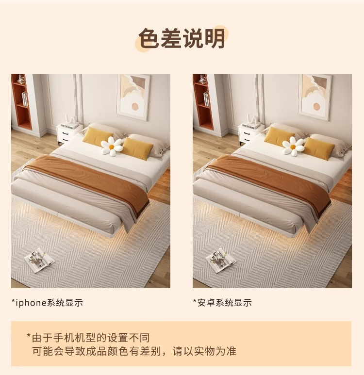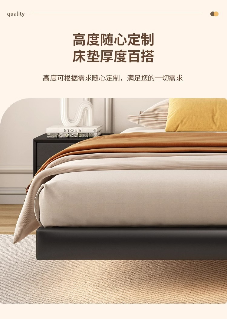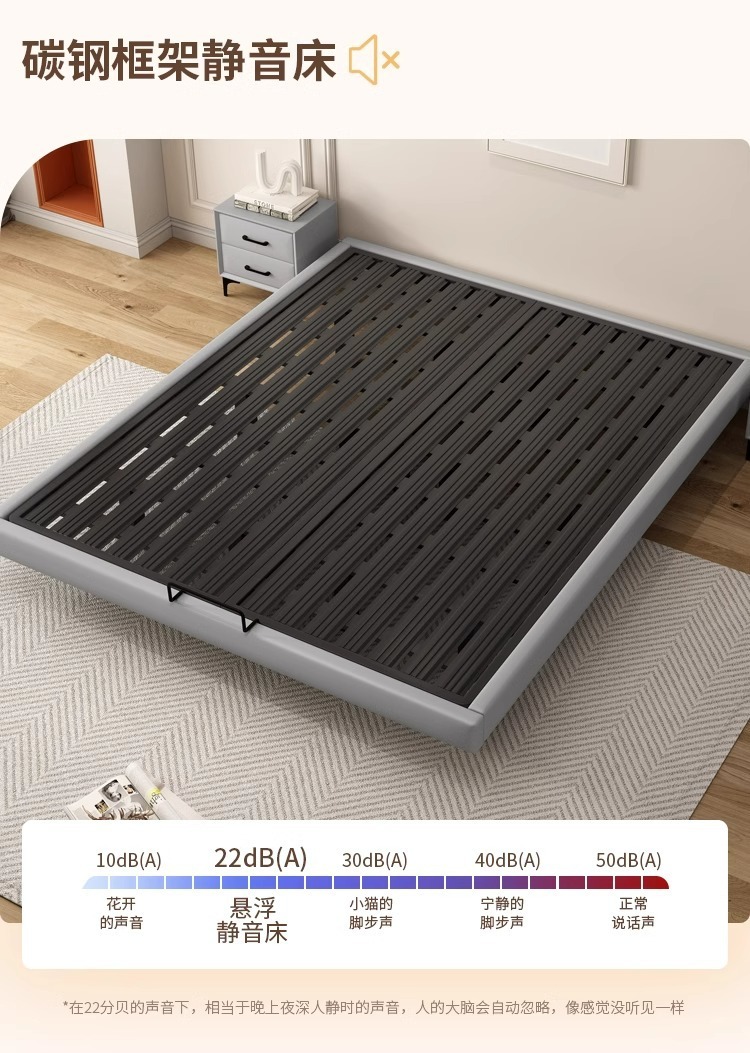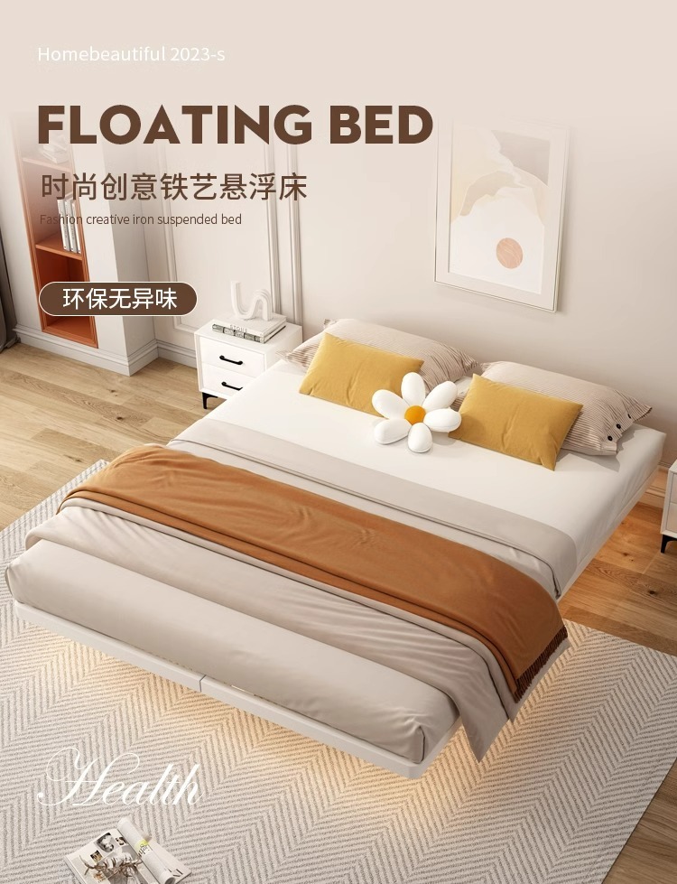 Cama flotante moderna y simple sin marco de hierro de cabeza de cama de acero forjado cama doble principal tela de tatami cama colgante