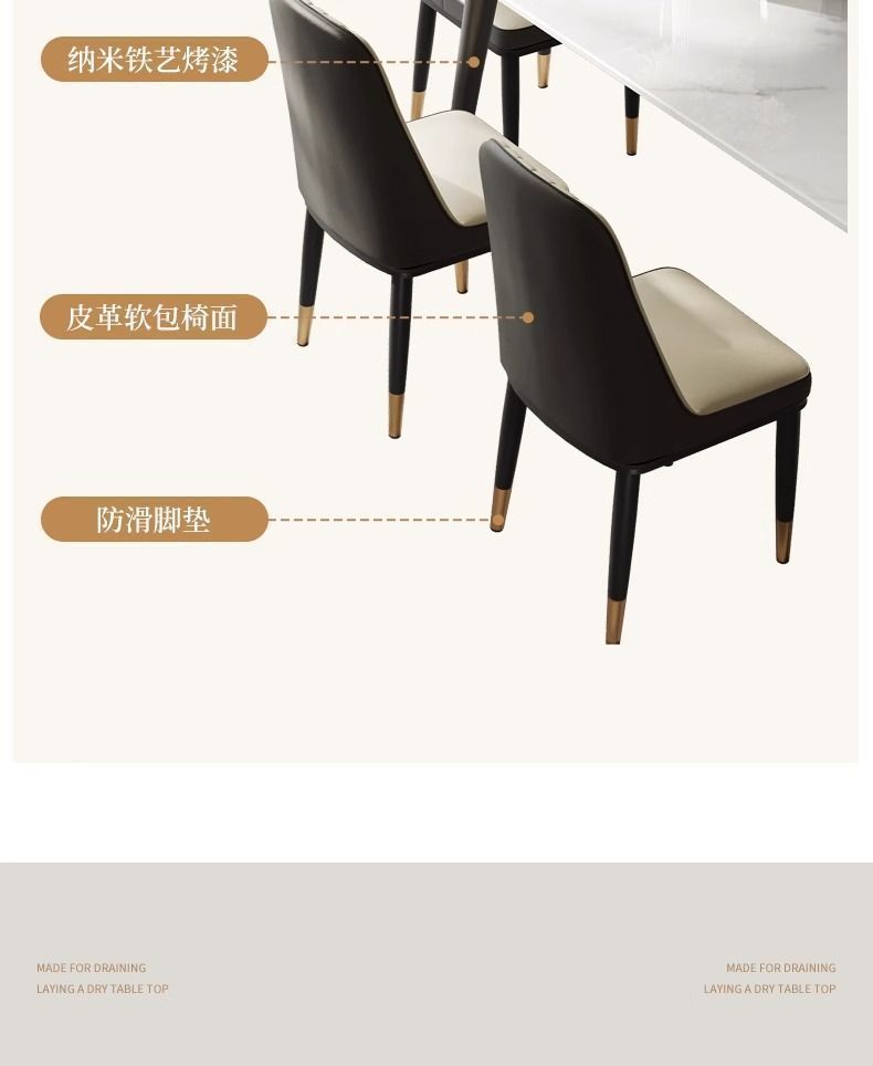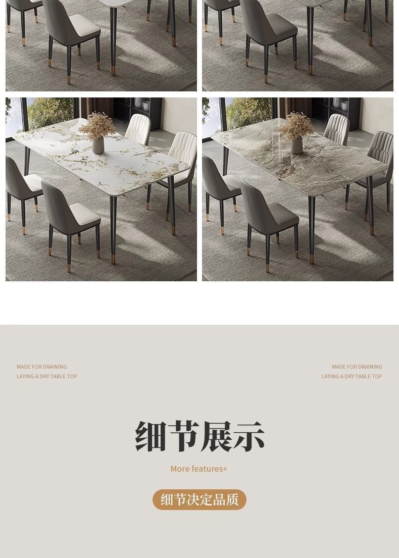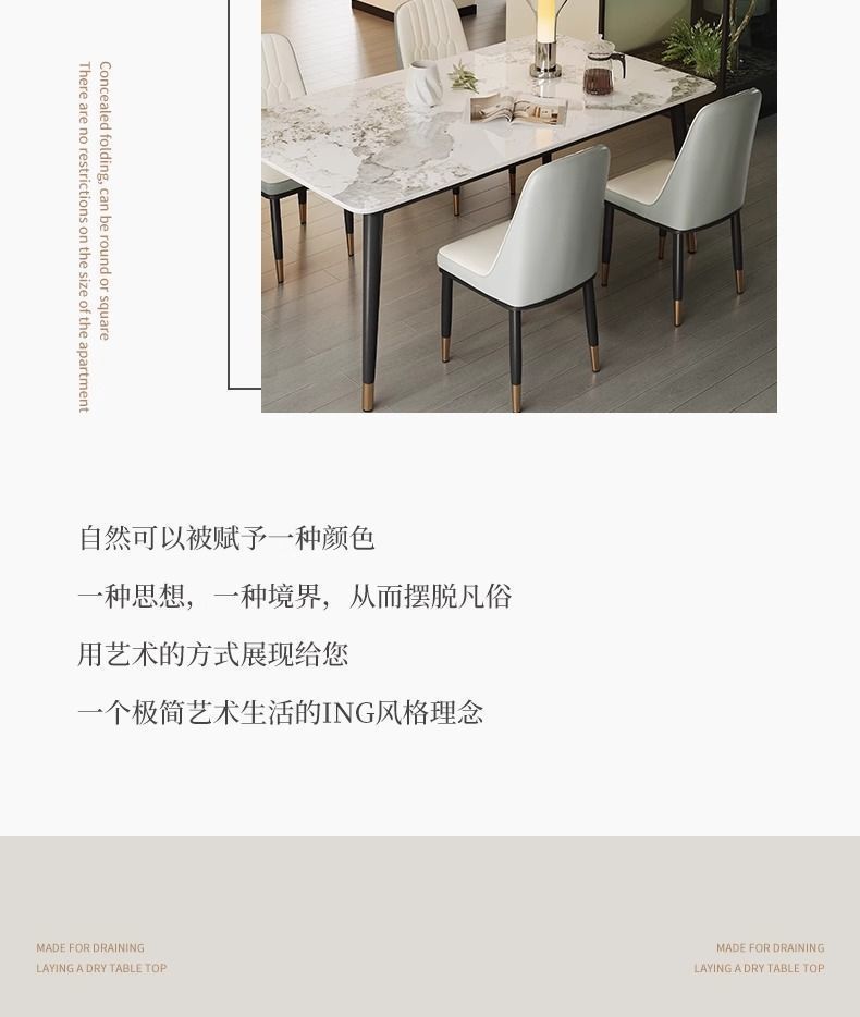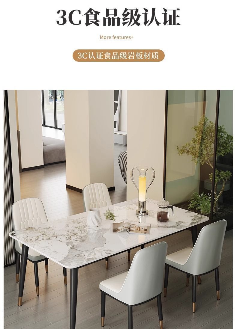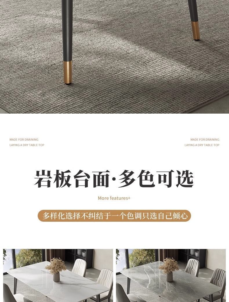 Mesa de comedor de tabla de roca brillante italiana, mesa de comedor de lujo ligera, mesa de comedor moderna y simple, combinación de mesas y sillas minimalistas para hogares pequeños.