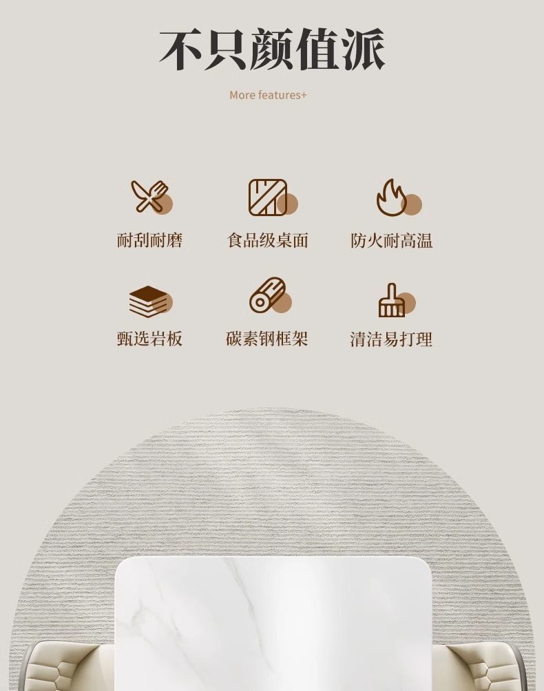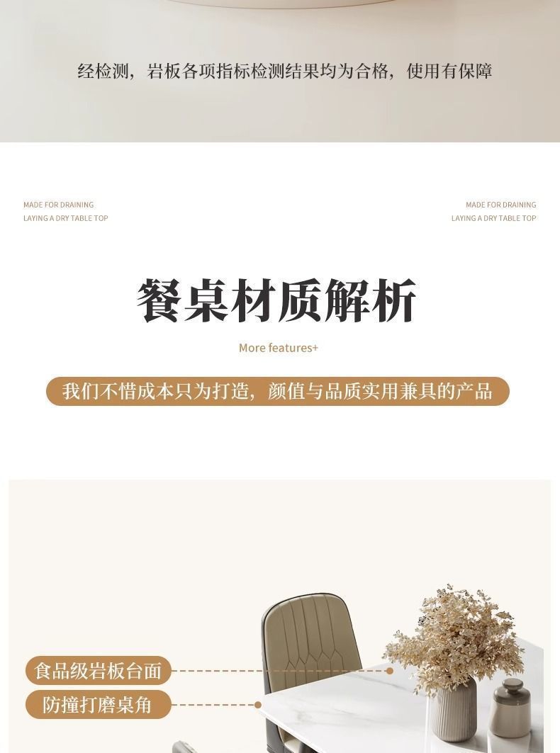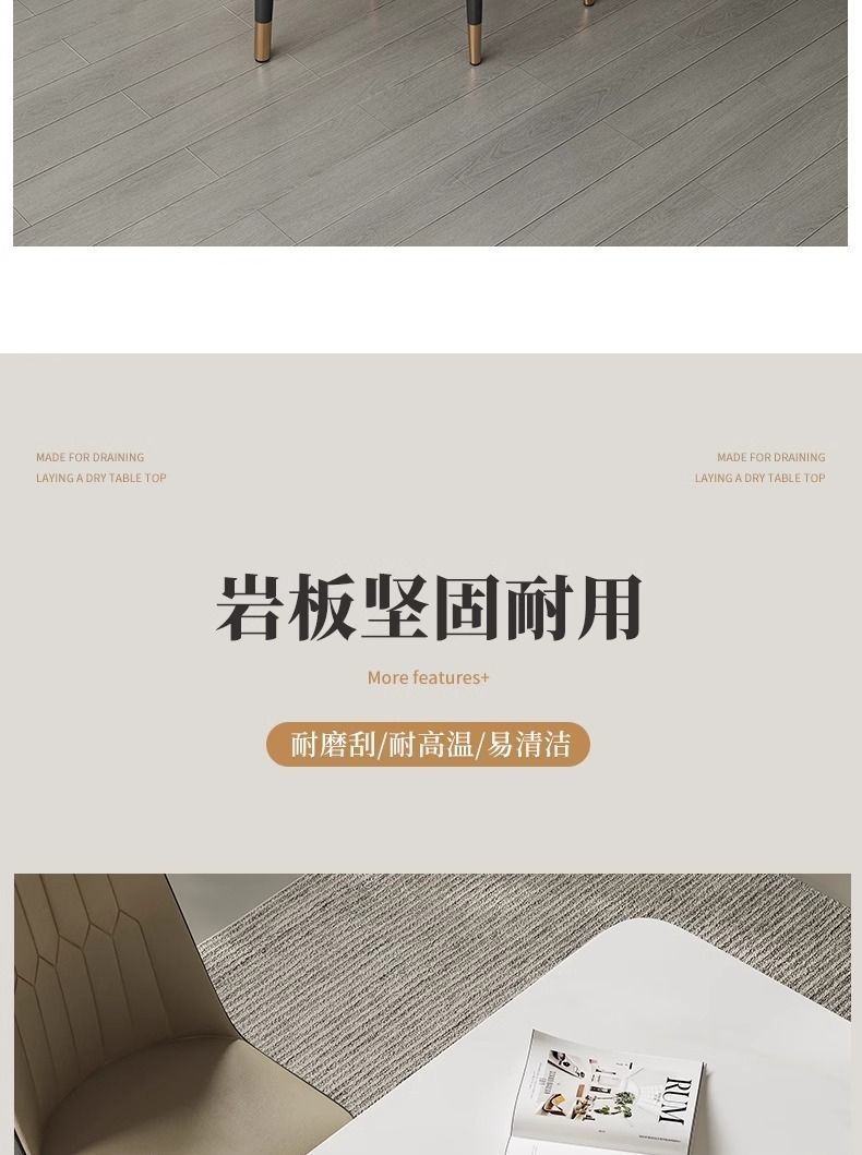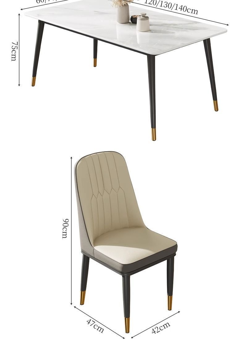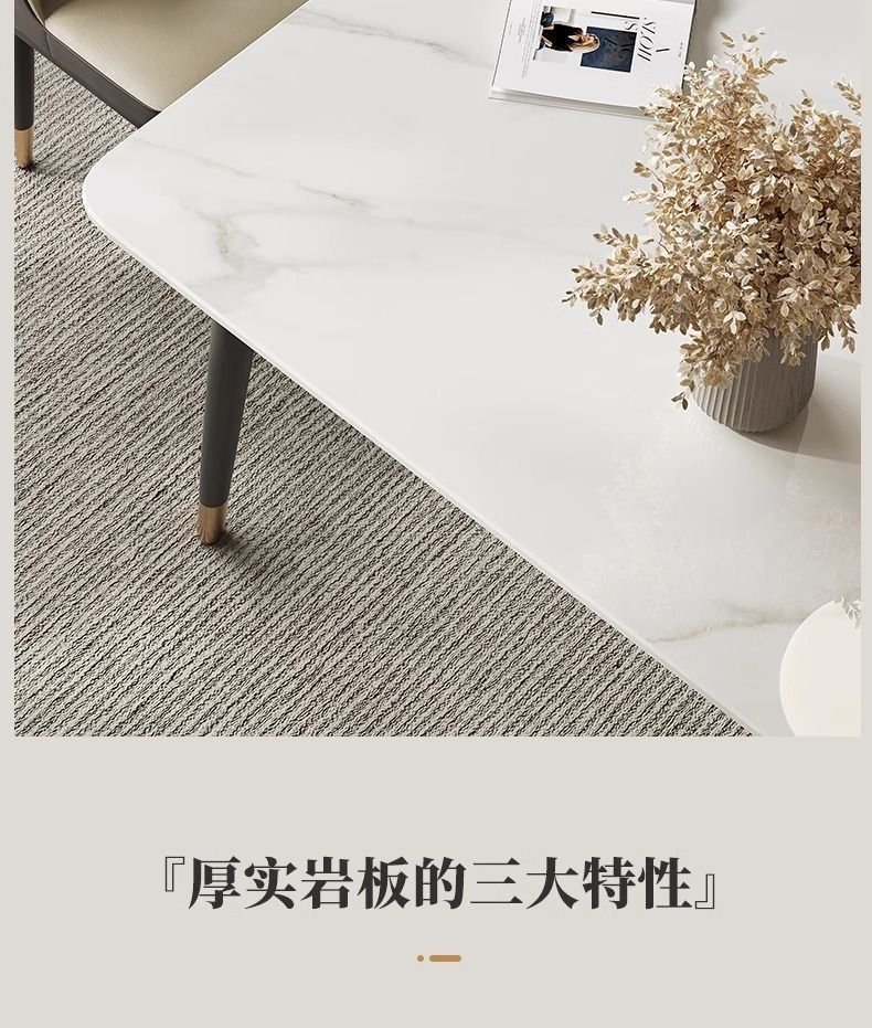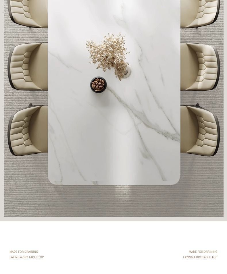 Mesa de comedor de tabla de roca brillante italiana, mesa de comedor de lujo ligera, mesa de comedor moderna y simple, combinación de mesas y sillas minimalistas para hogares pequeños.