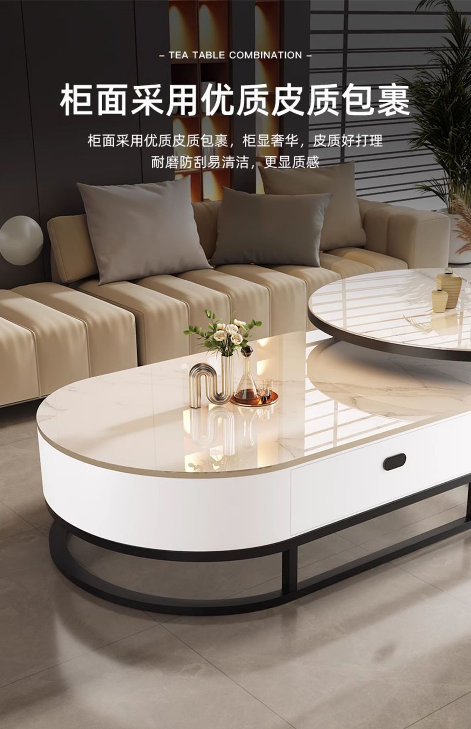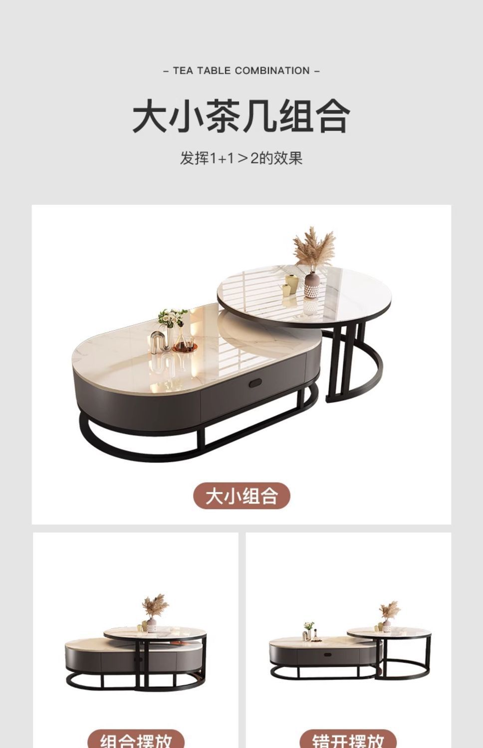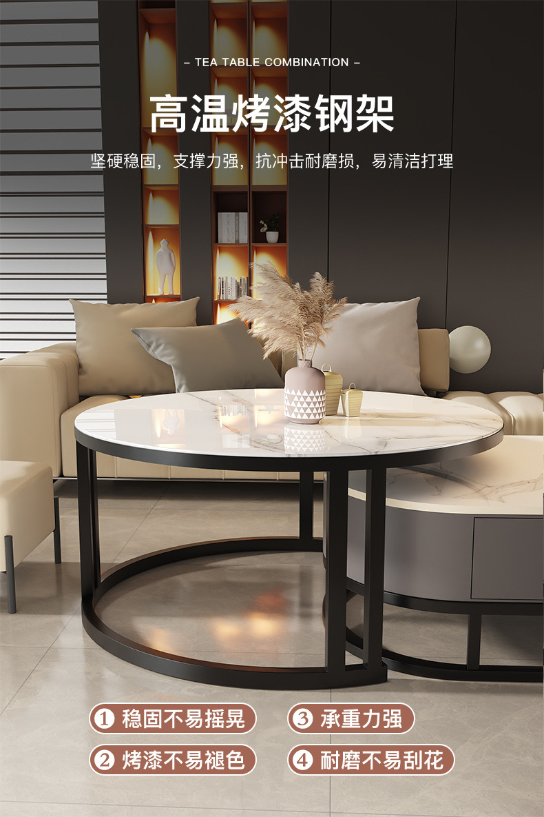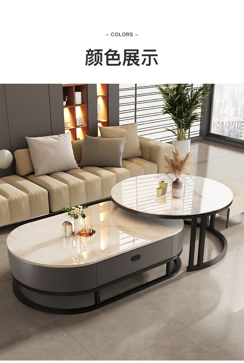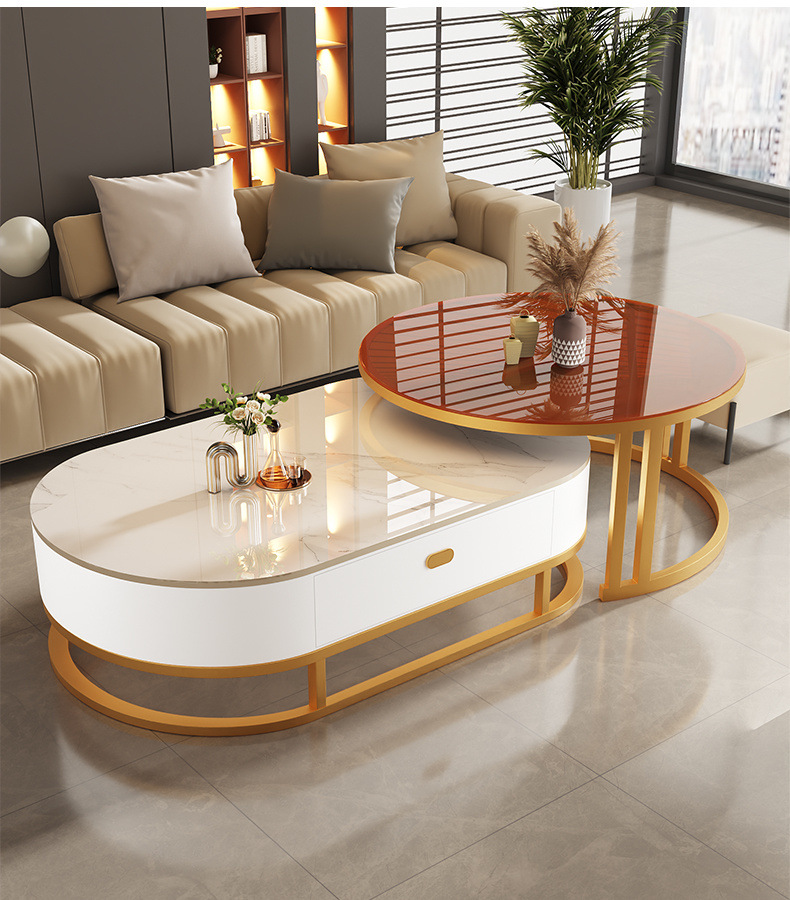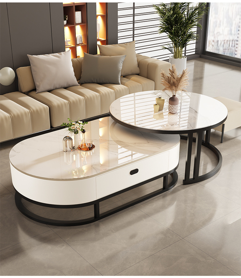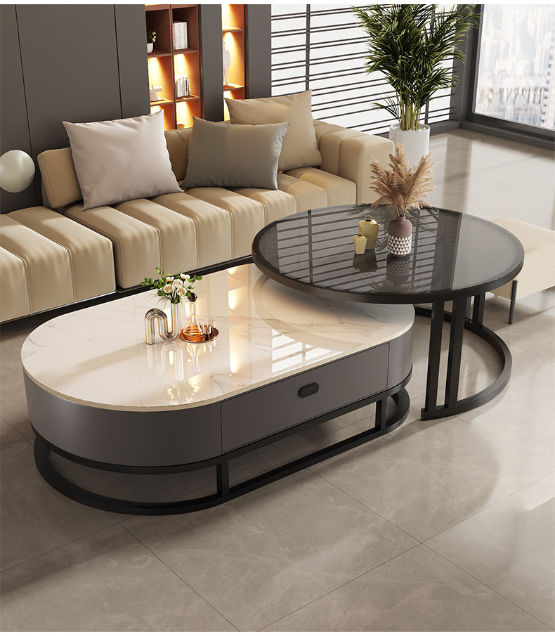 Mesa de té de tabla de roca, sala de estar doméstica de lujo ligero y moderno 2025, nueva combinación de mesa de té ovalada simple de tipo pequeño
