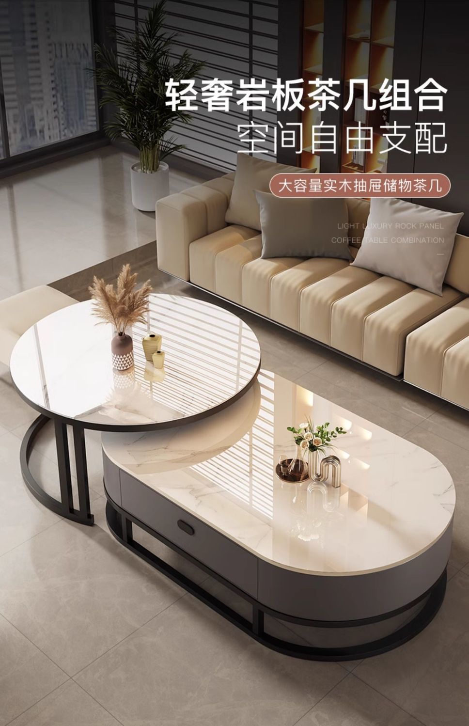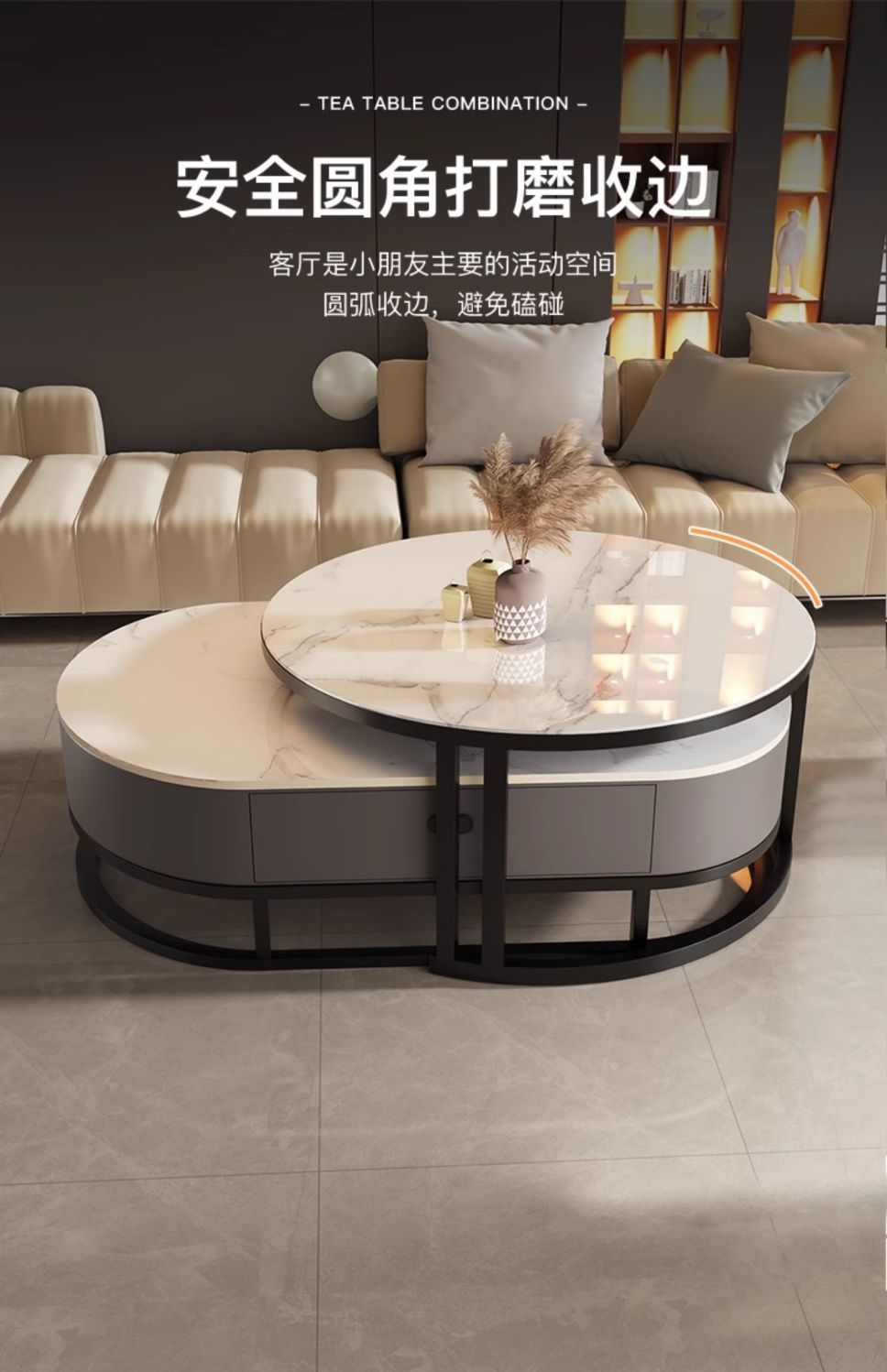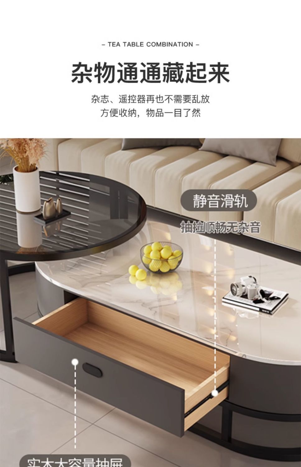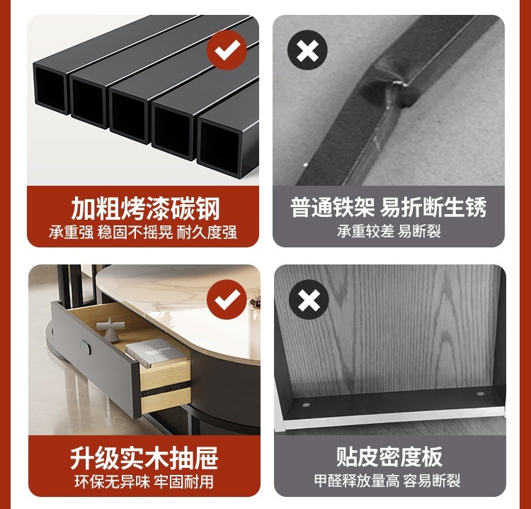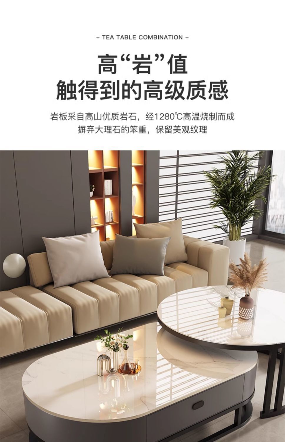 Mesa de té de tabla de roca, sala de estar doméstica de lujo ligero y moderno 2025, nueva combinación de mesa de té ovalada simple de tipo pequeño