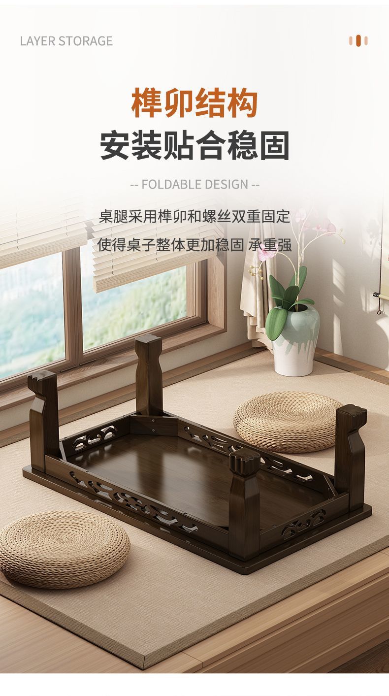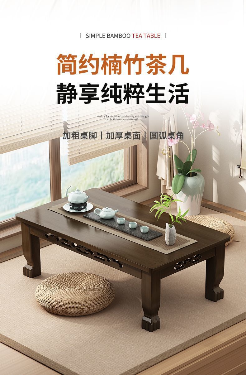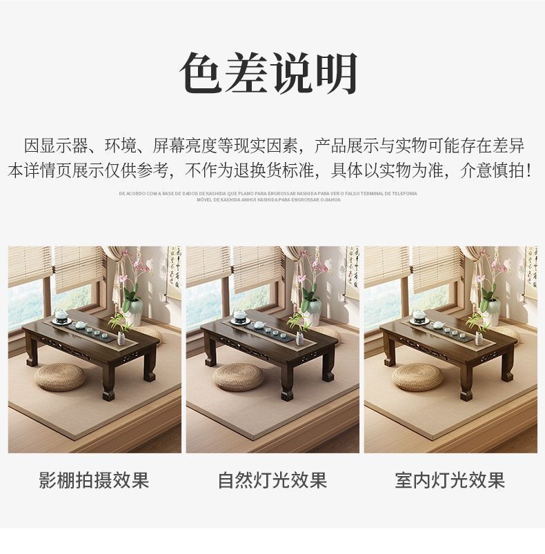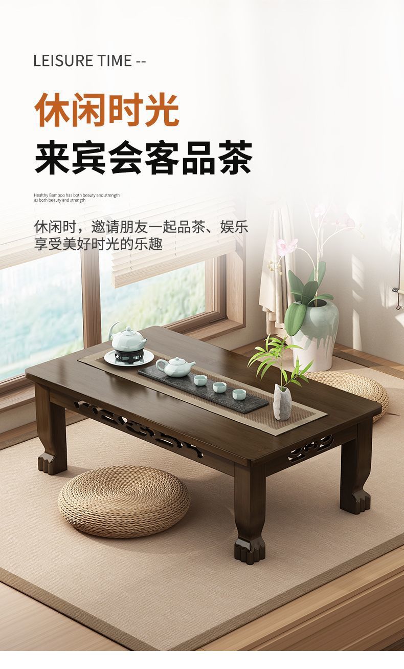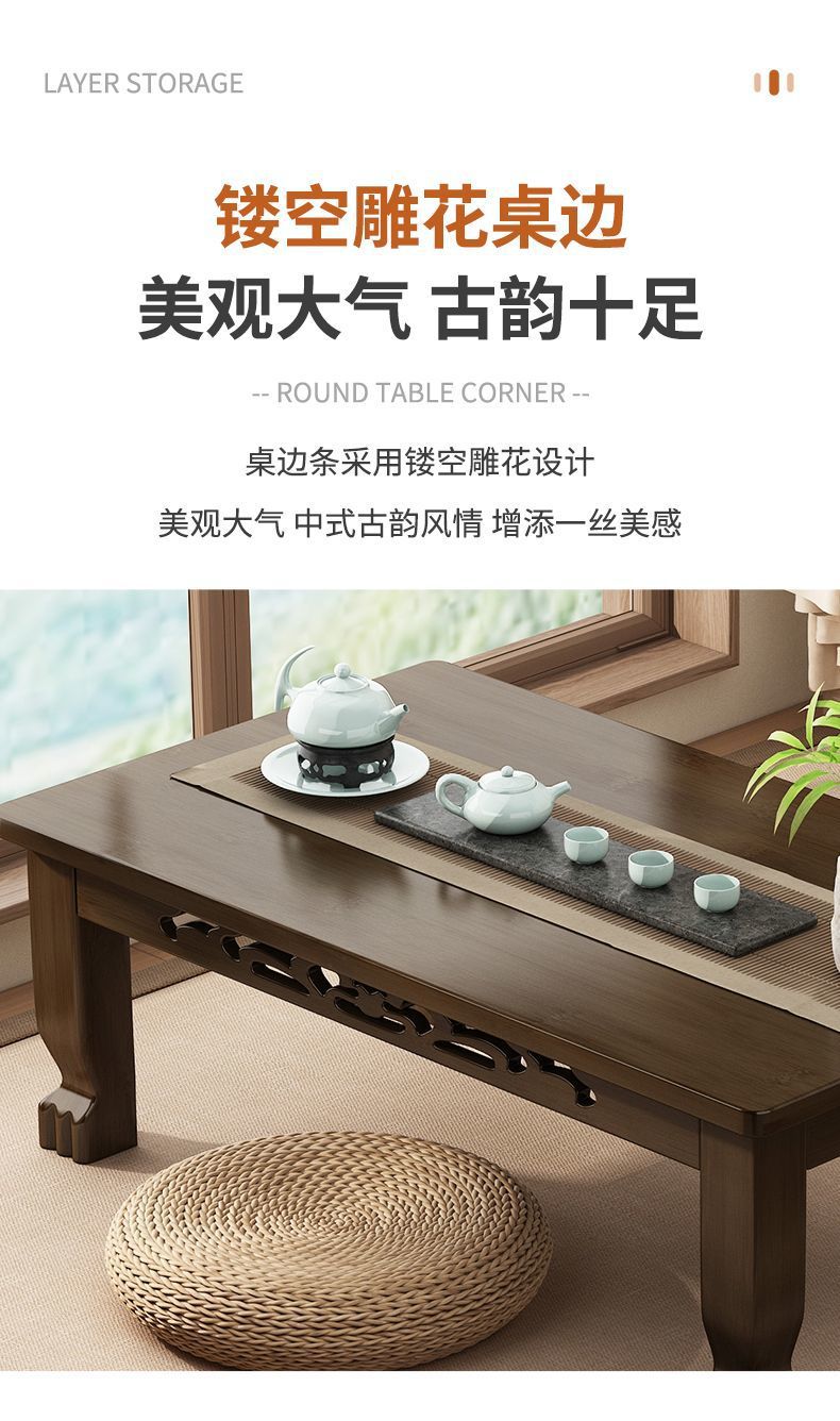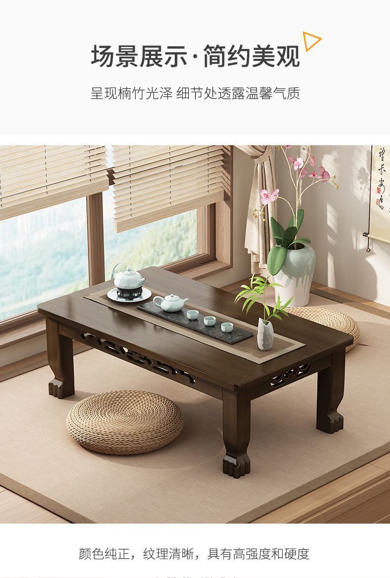 Mesa de té de tatami ventana flotante mesa de té de madera no sólida mesa de té para el hogar mesa baja para aprender a comer en la cama